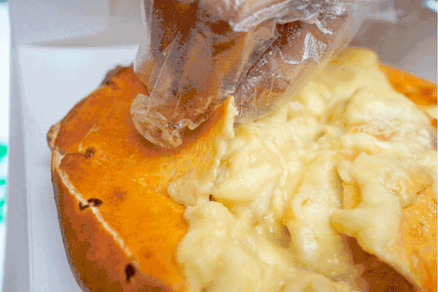 带着脆脆的皮和热fufu的内陷,一刀怼下去立马爆浆,满满的馅料呼之欲出,诱惑力MAX!