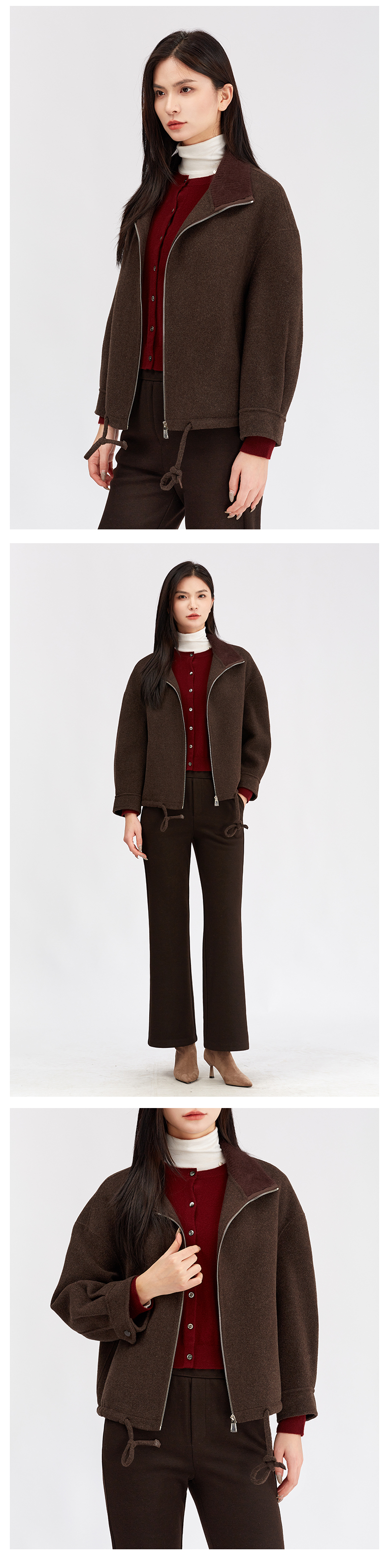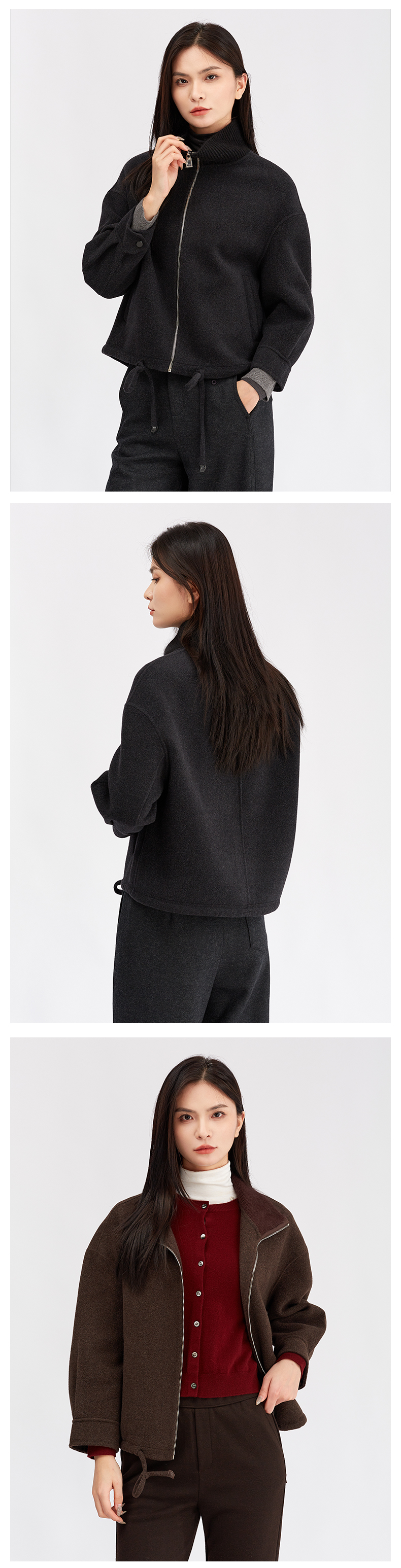 【商场同款】阿菁娜休闲立领山羊绒双面呢外套A30D511108