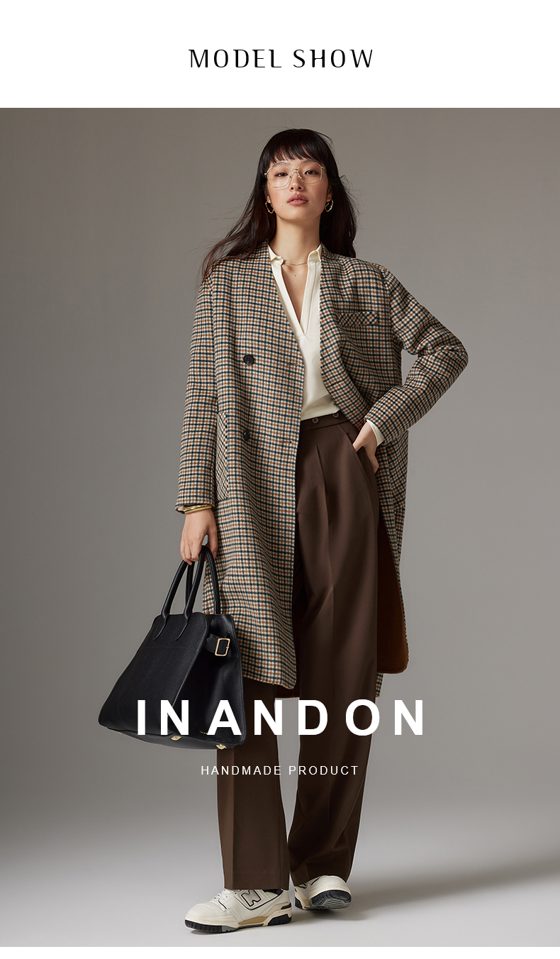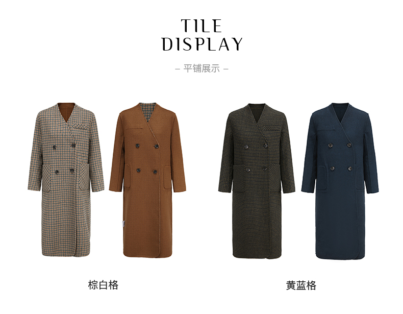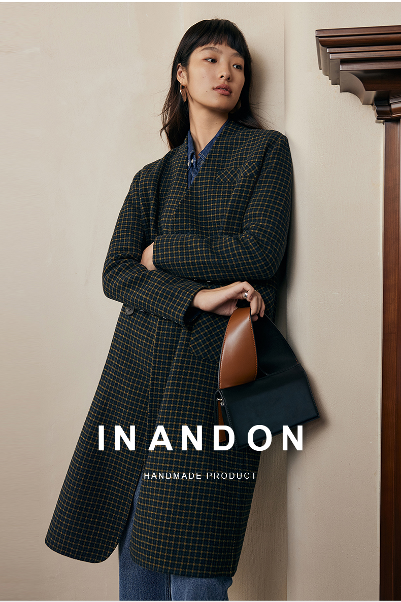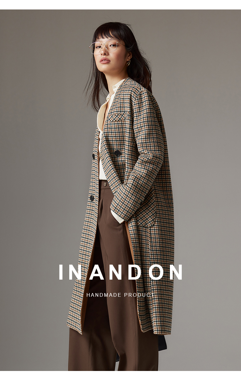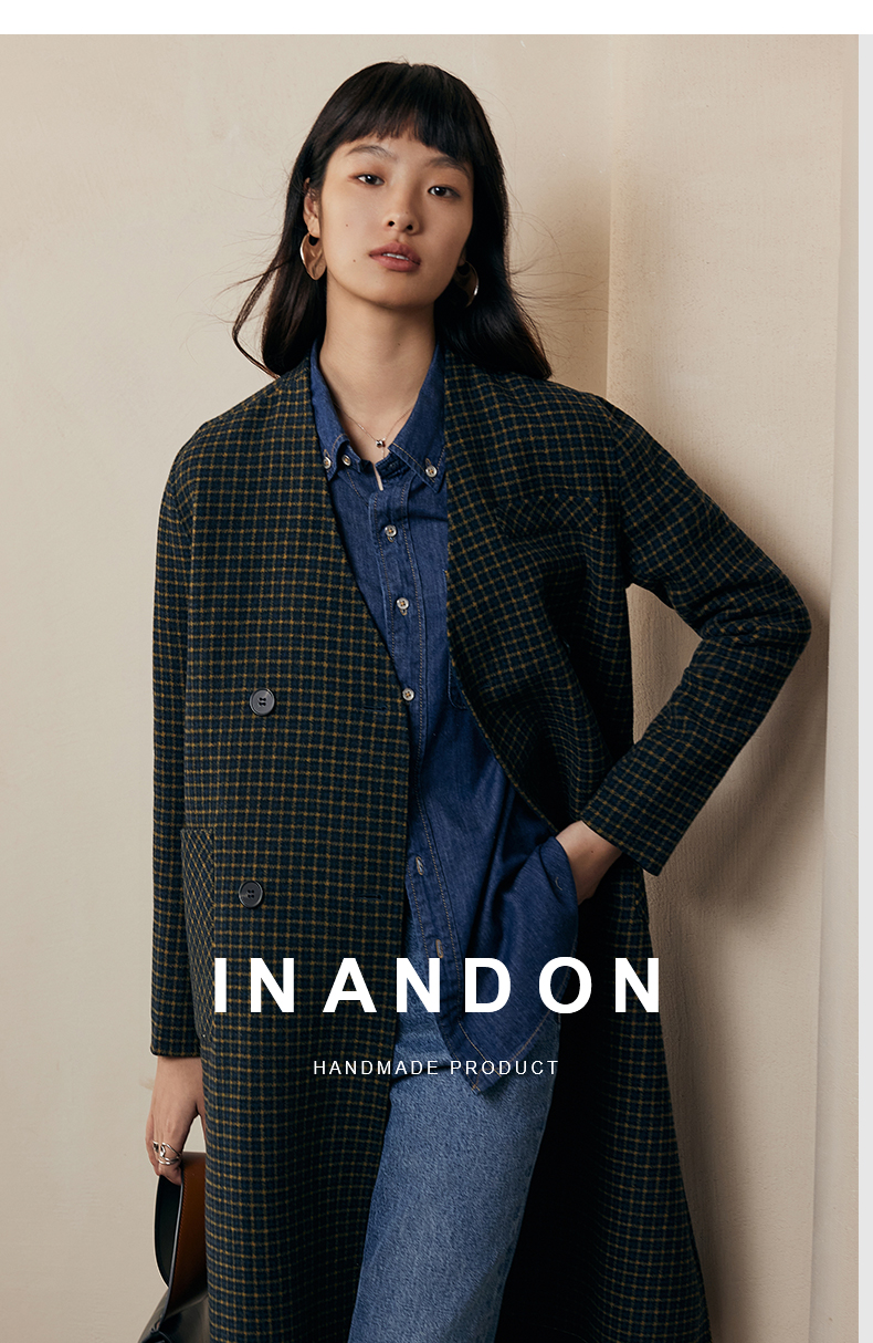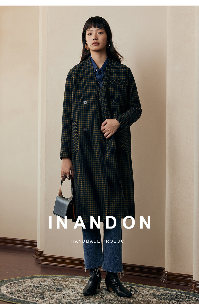 【品牌优选】IN AND ON 新款羊毛两面穿格纹双面呢大衣时尚中长款外套