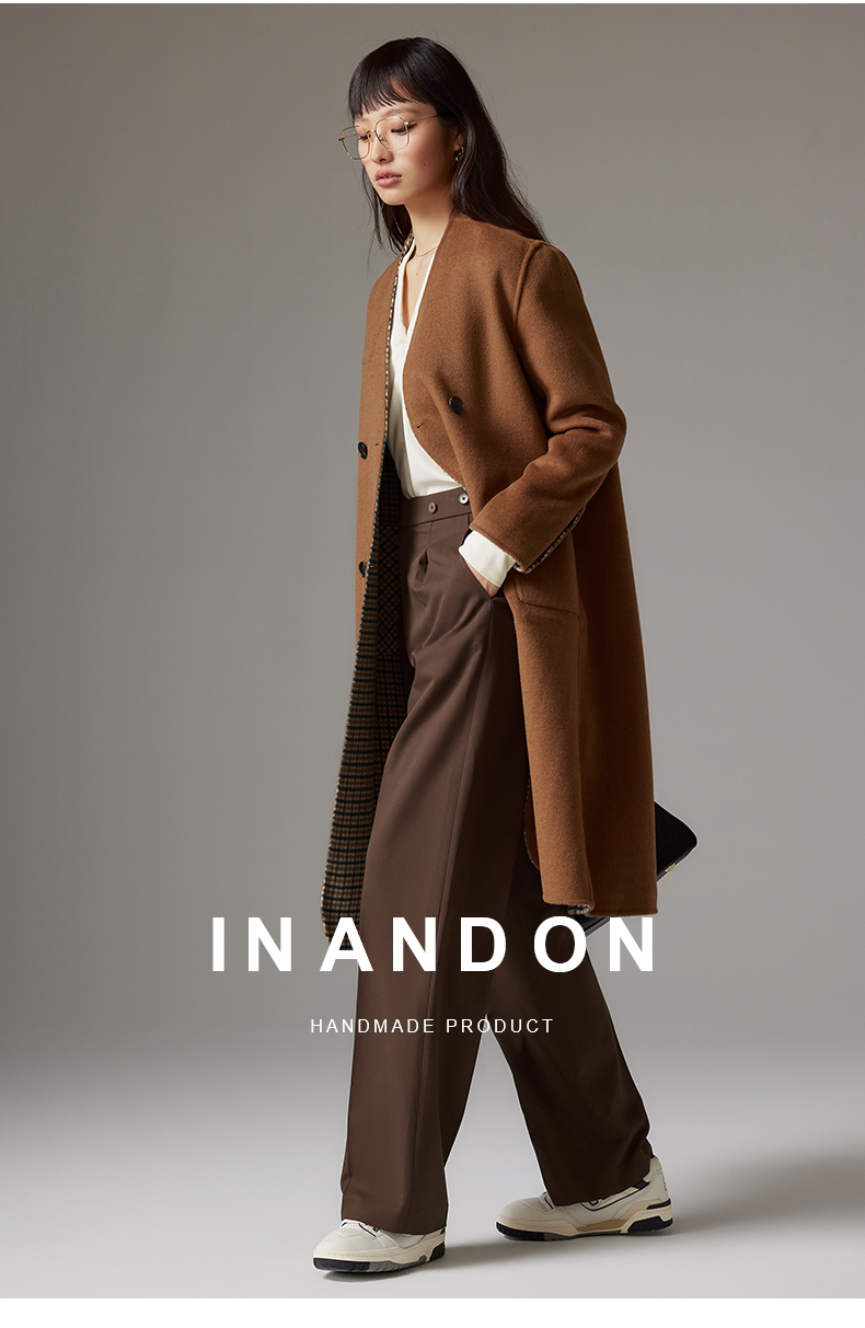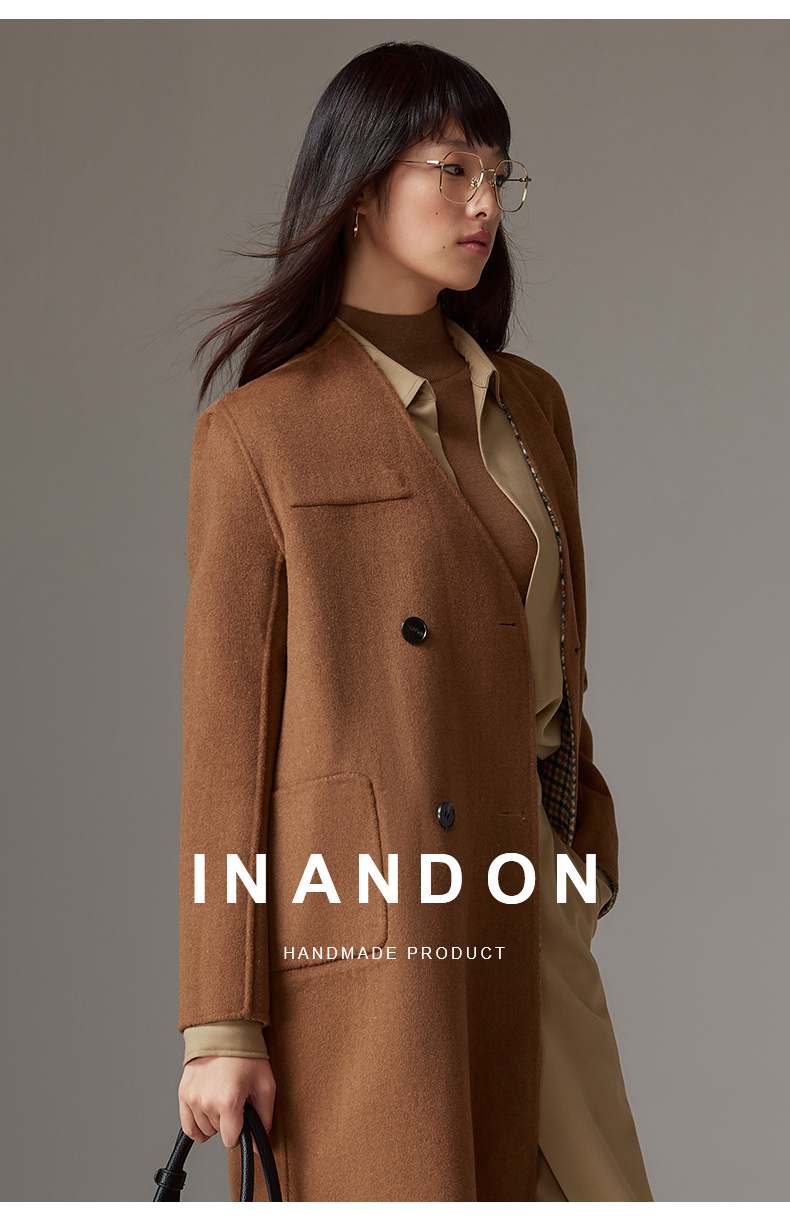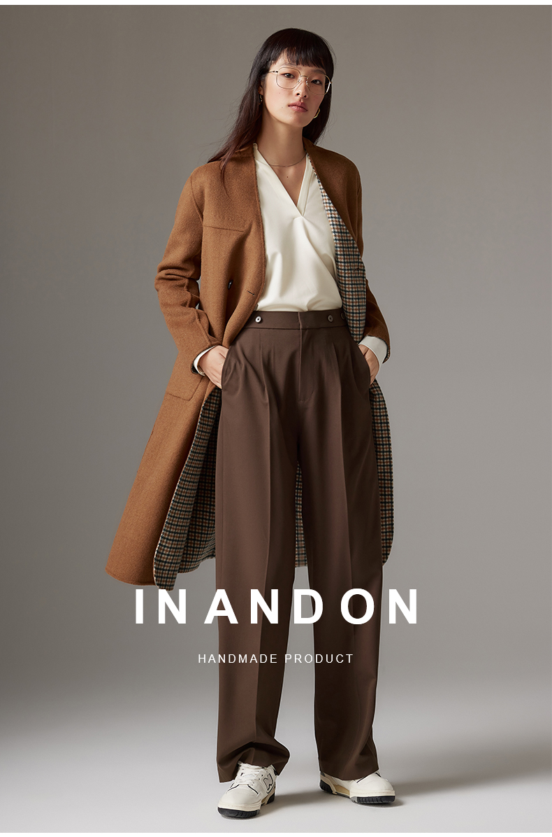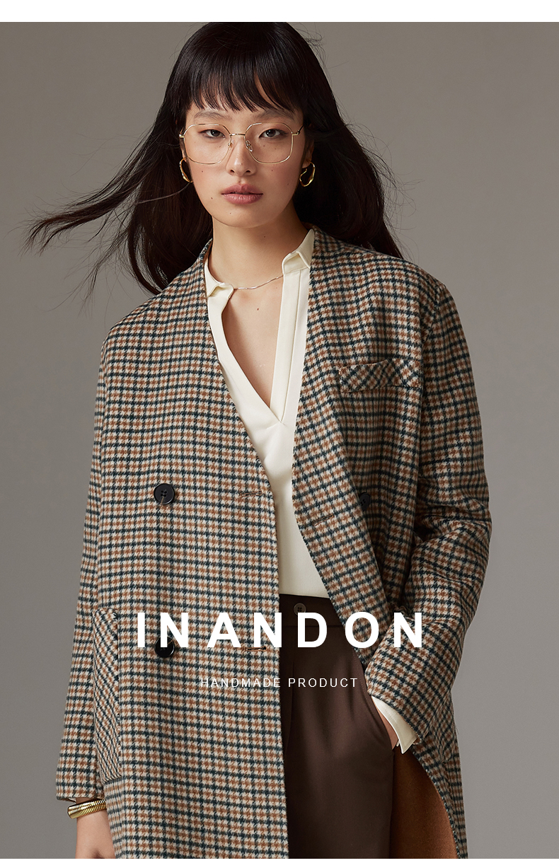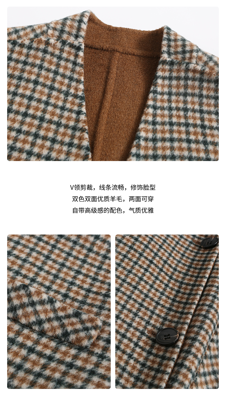 【品牌优选】IN AND ON 新款羊毛两面穿格纹双面呢大衣时尚中长款外套