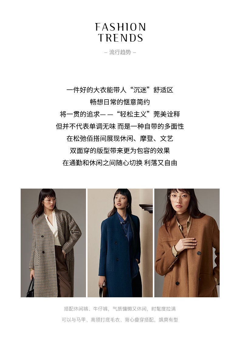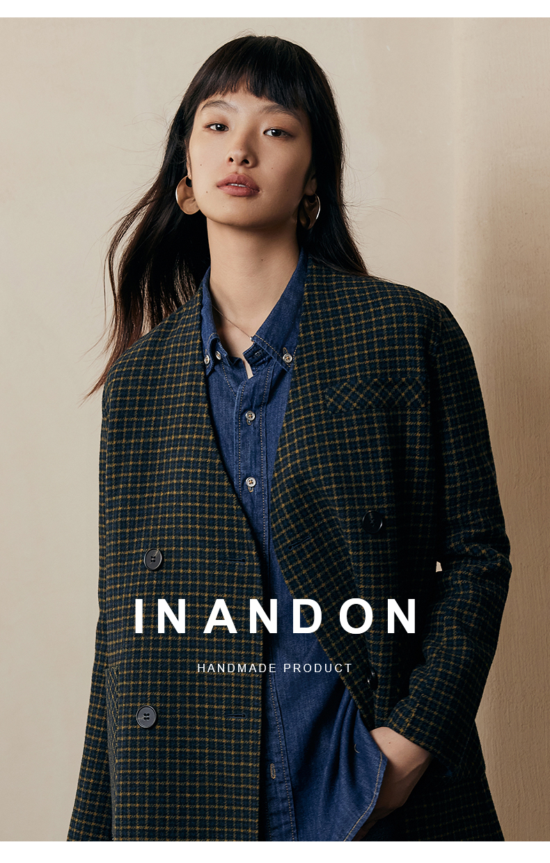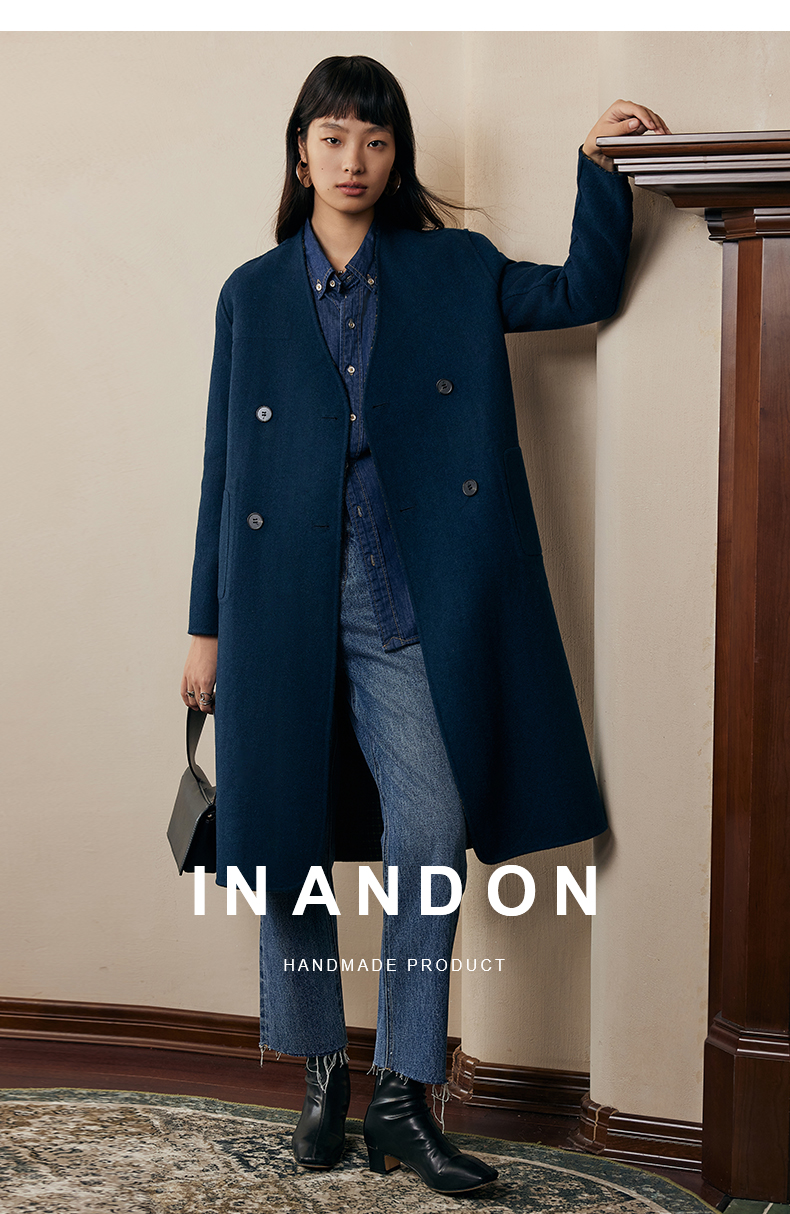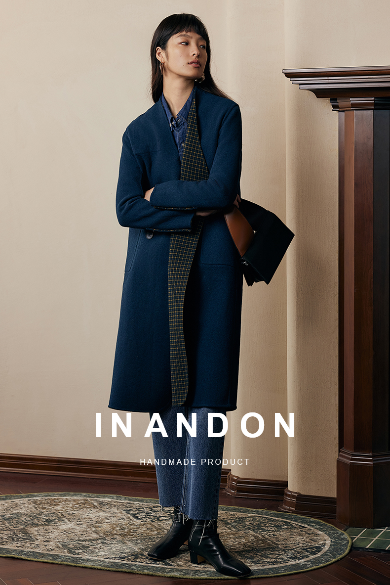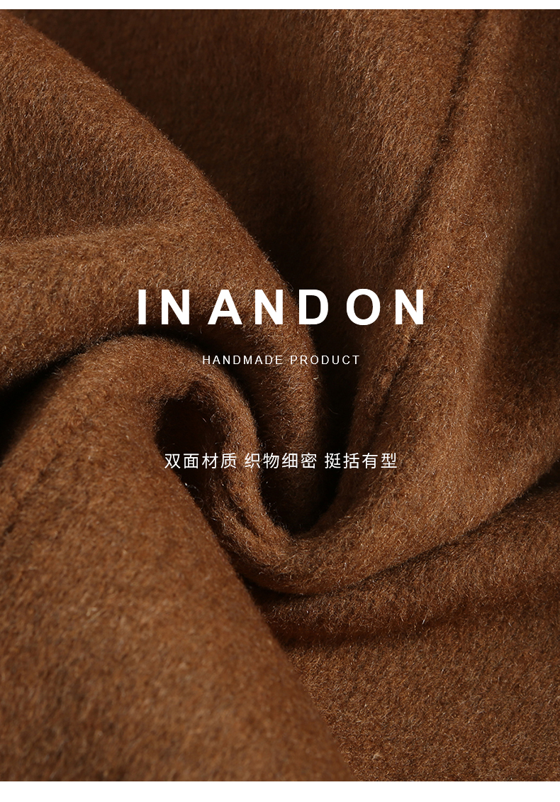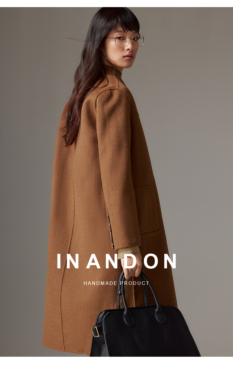 【品牌优选】IN AND ON 新款羊毛两面穿格纹双面呢大衣时尚中长款外套