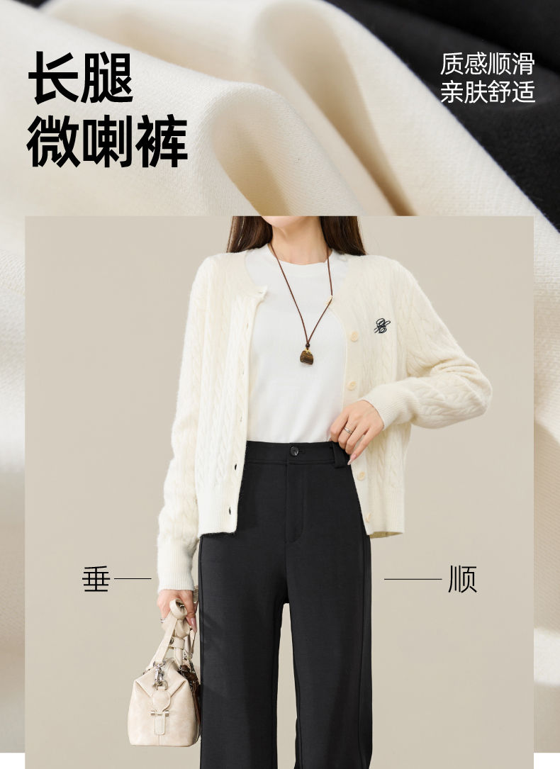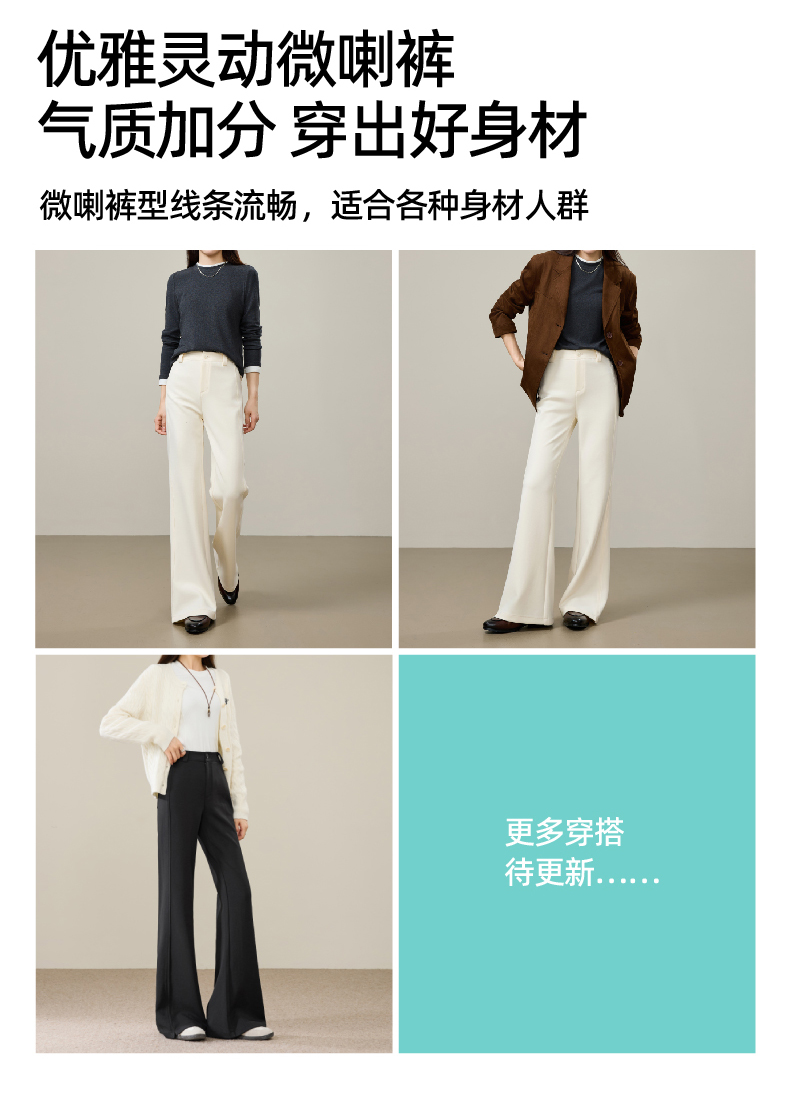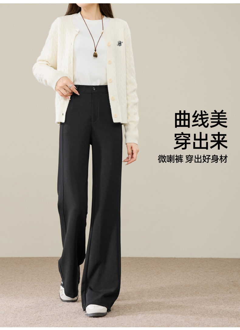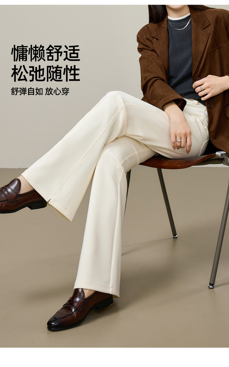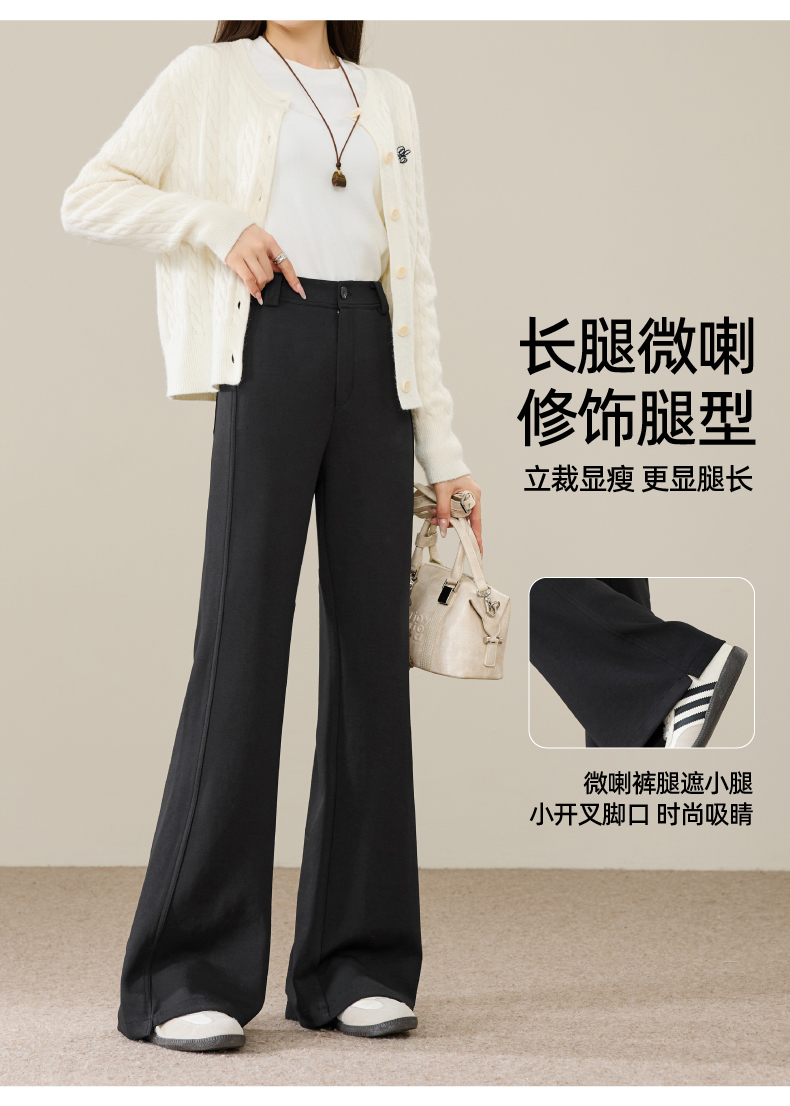 【莫代尔棉-喇叭裤】逸阳秋新品弹力松弛感休闲垂感显瘦微喇裤8052