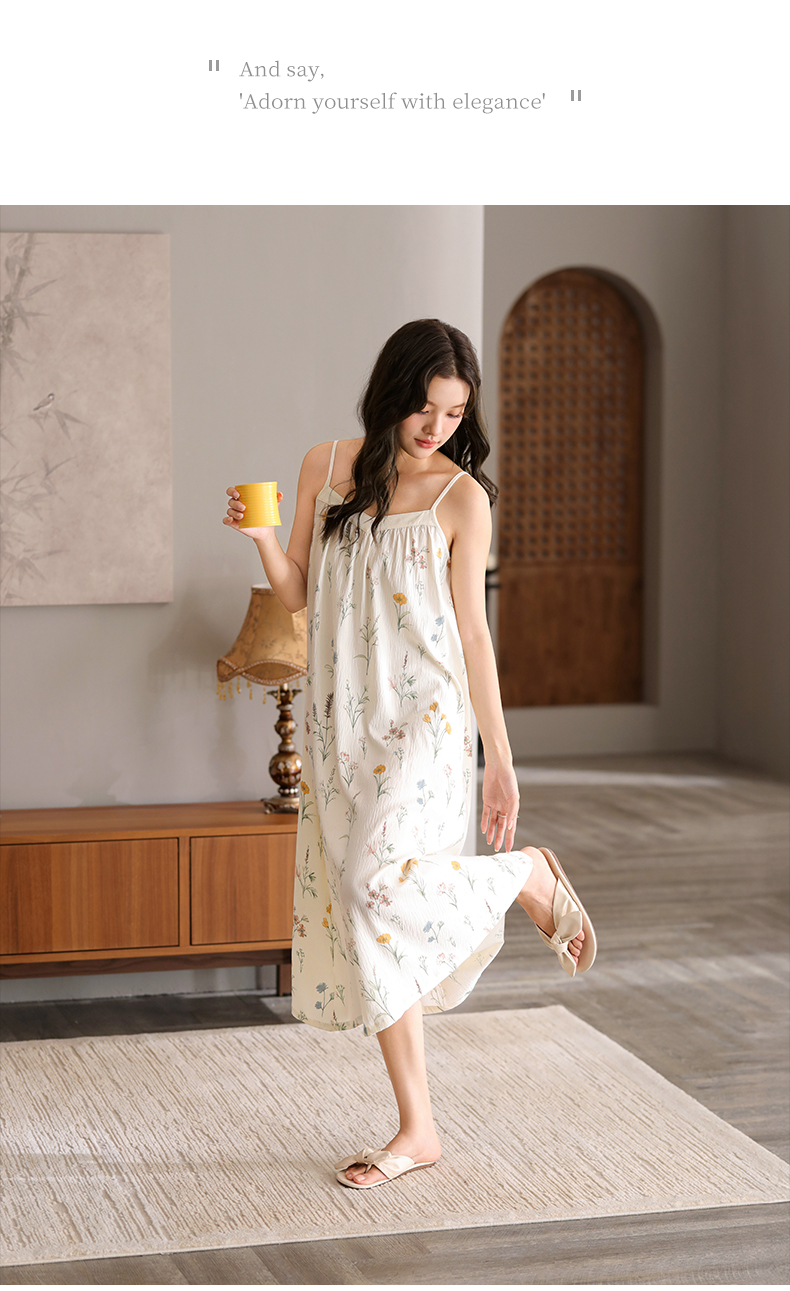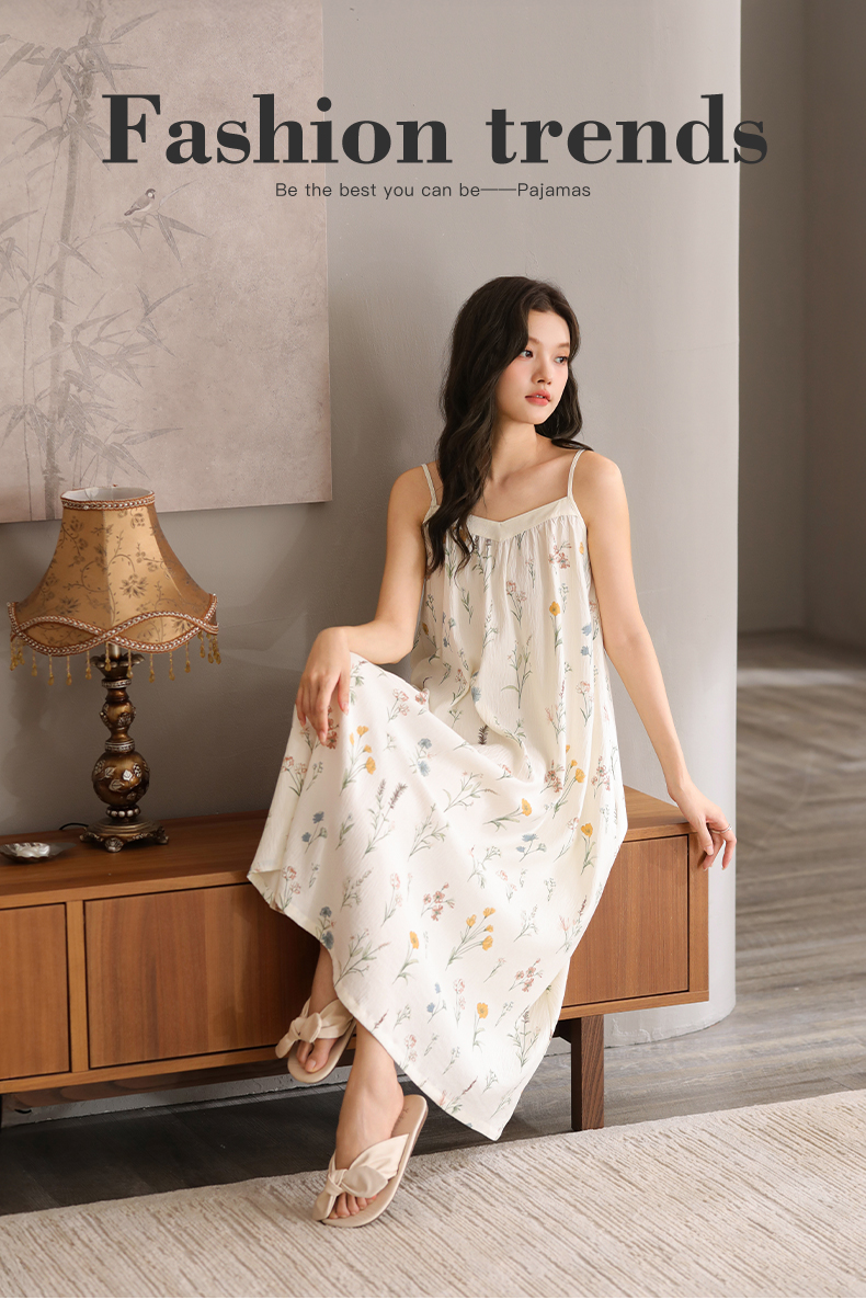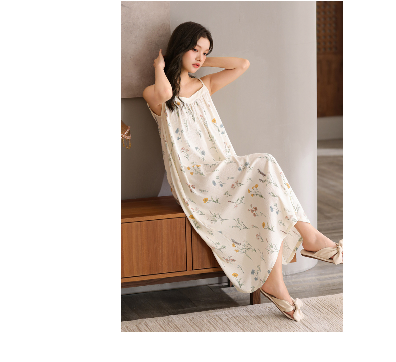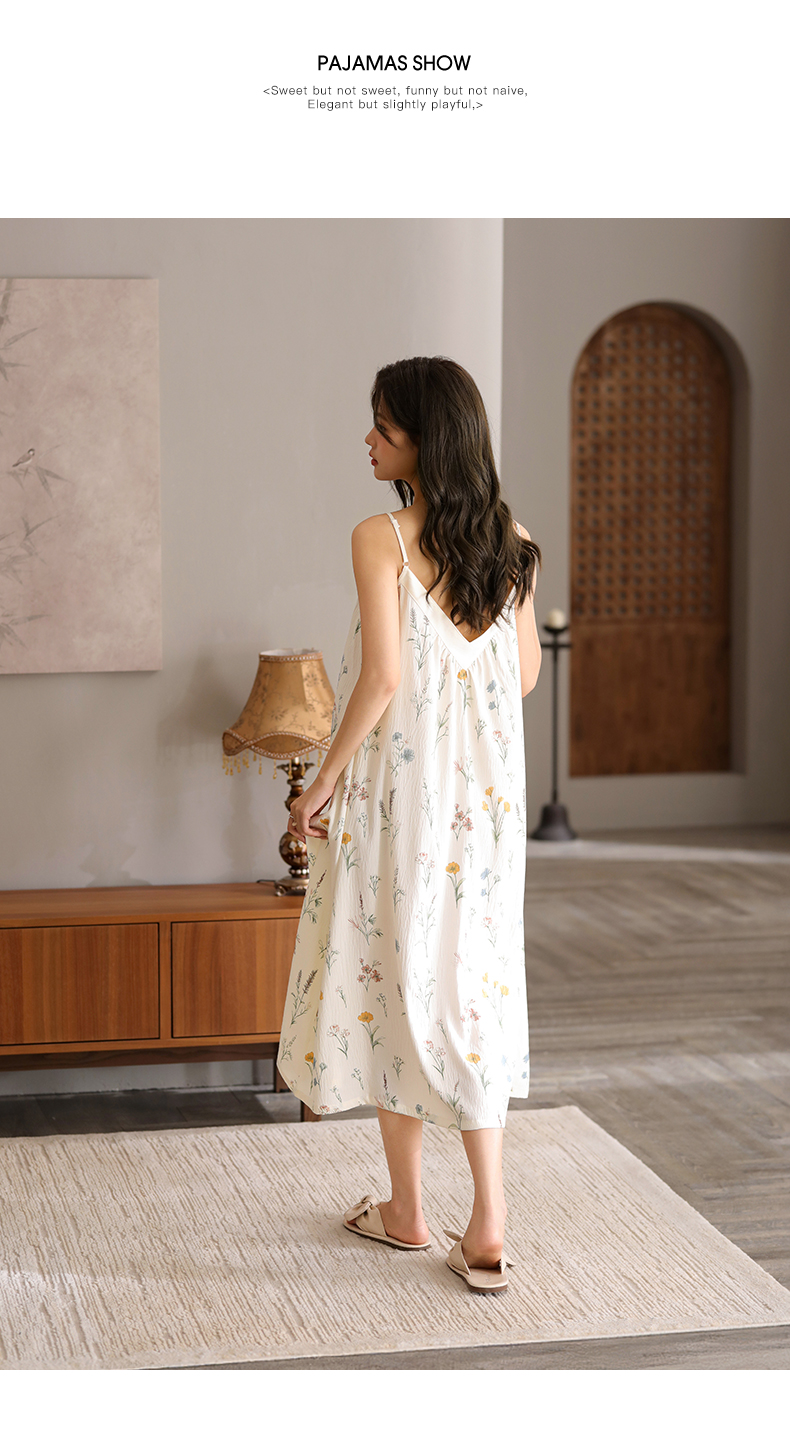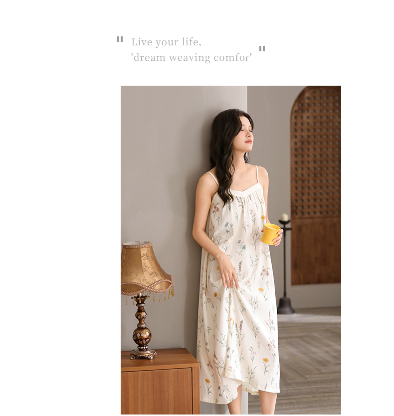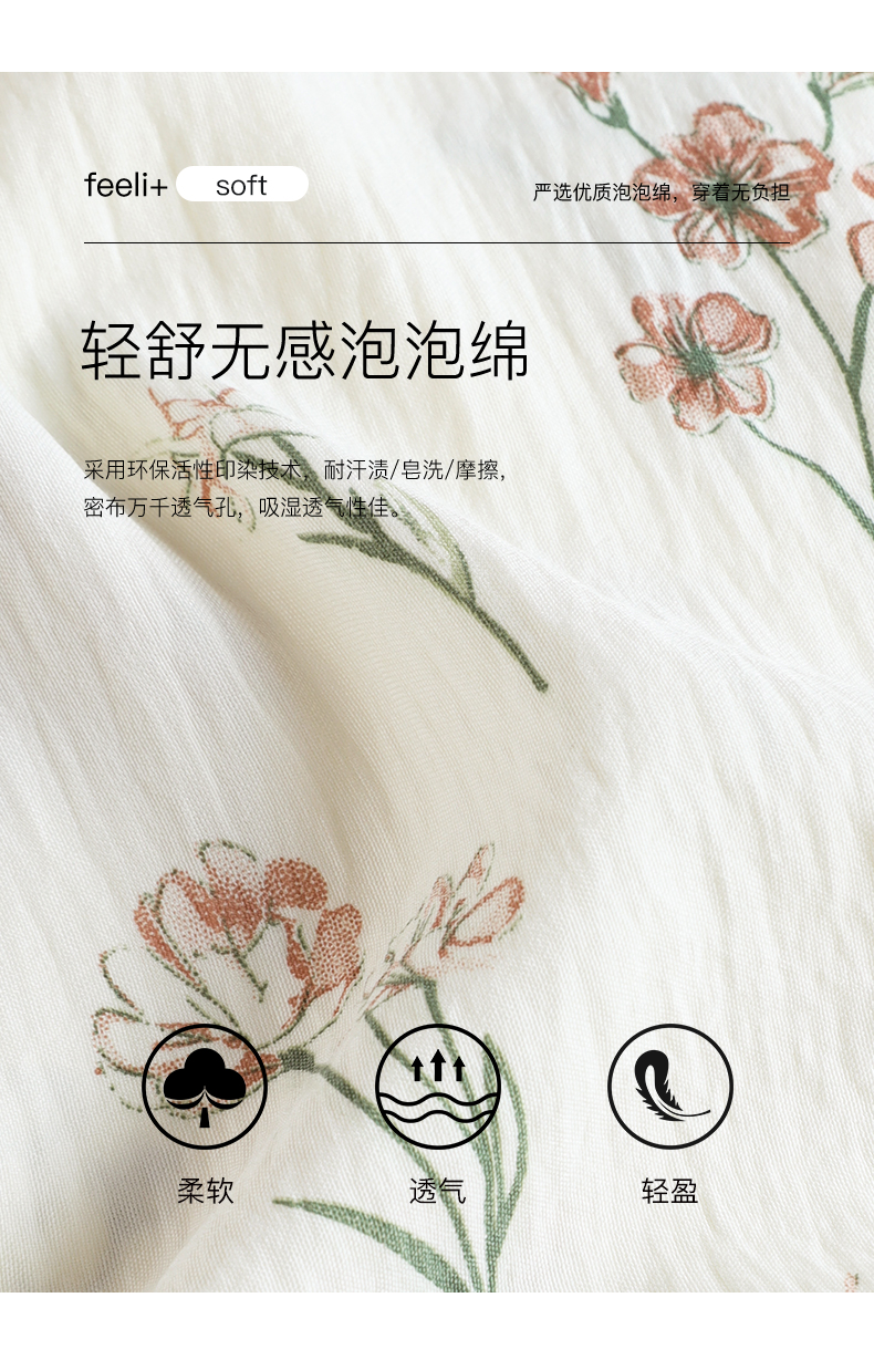 可人儿小众设计师新款泡泡绵女士睡衣夏季少女睡裙可外穿家居服