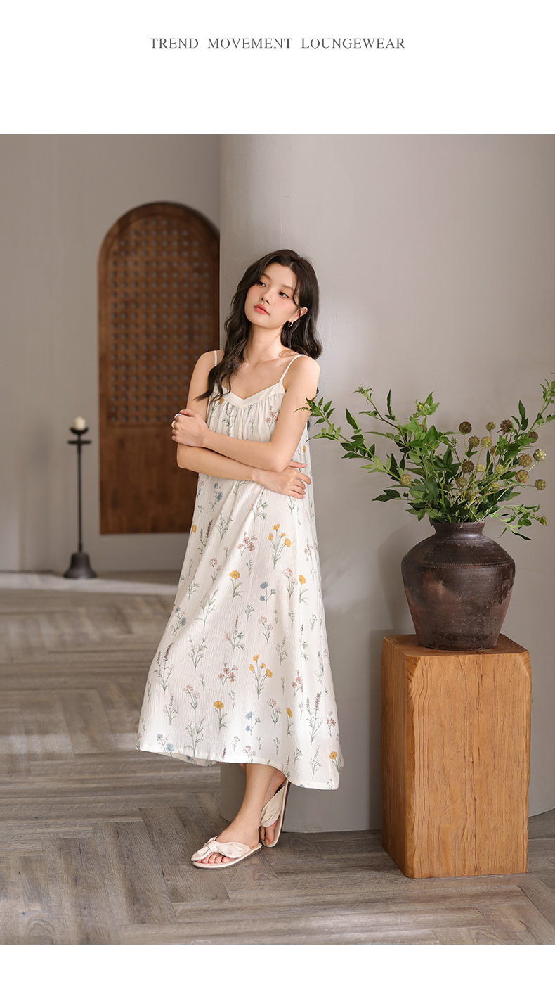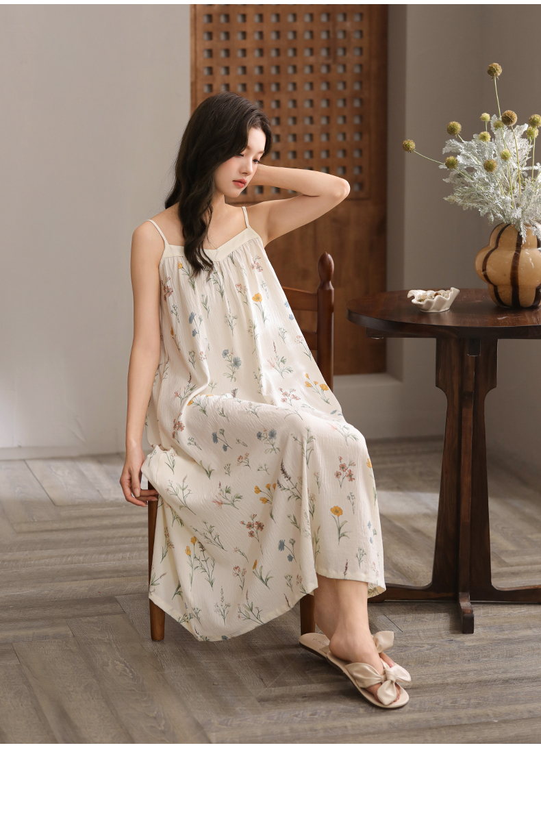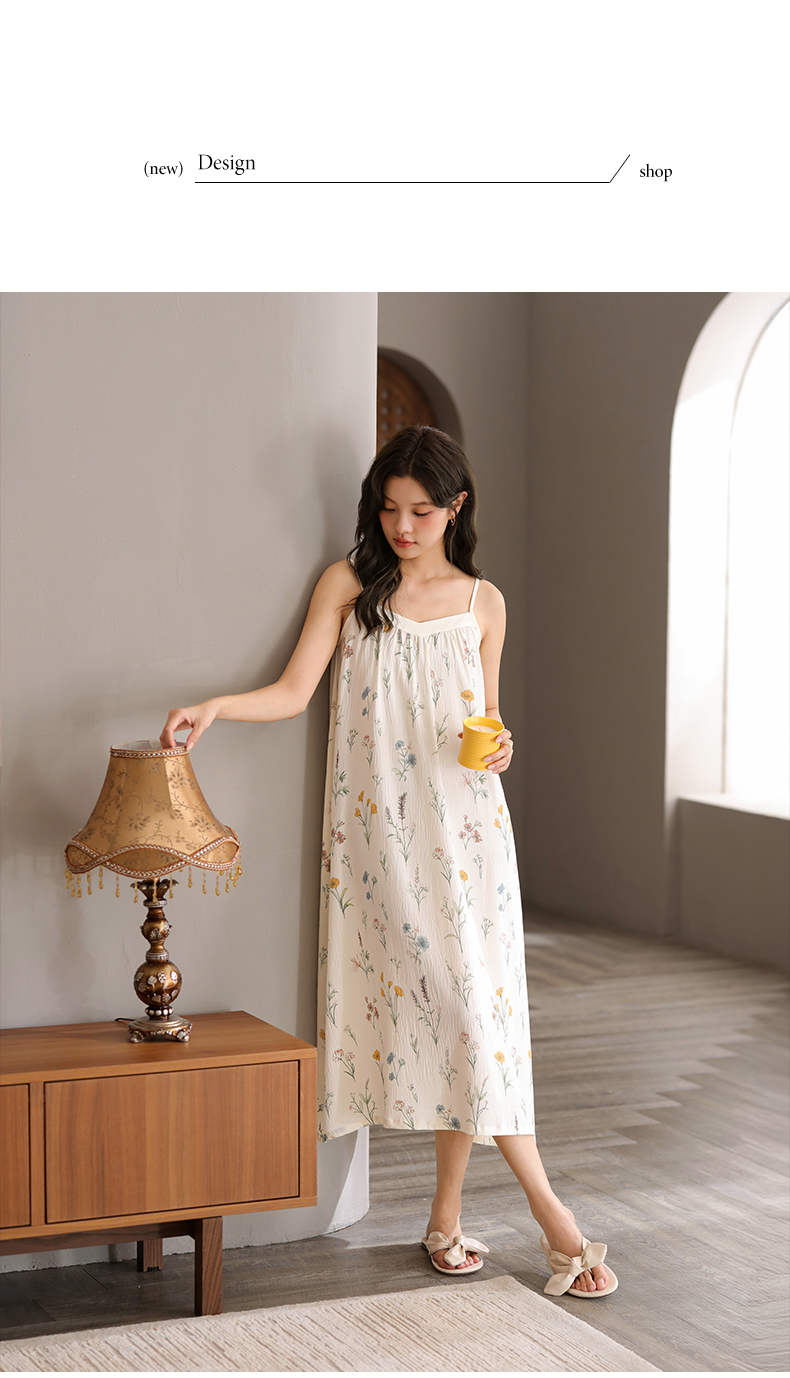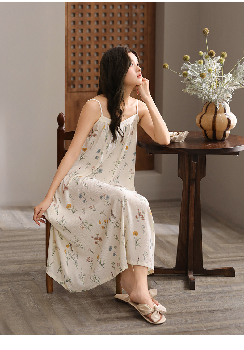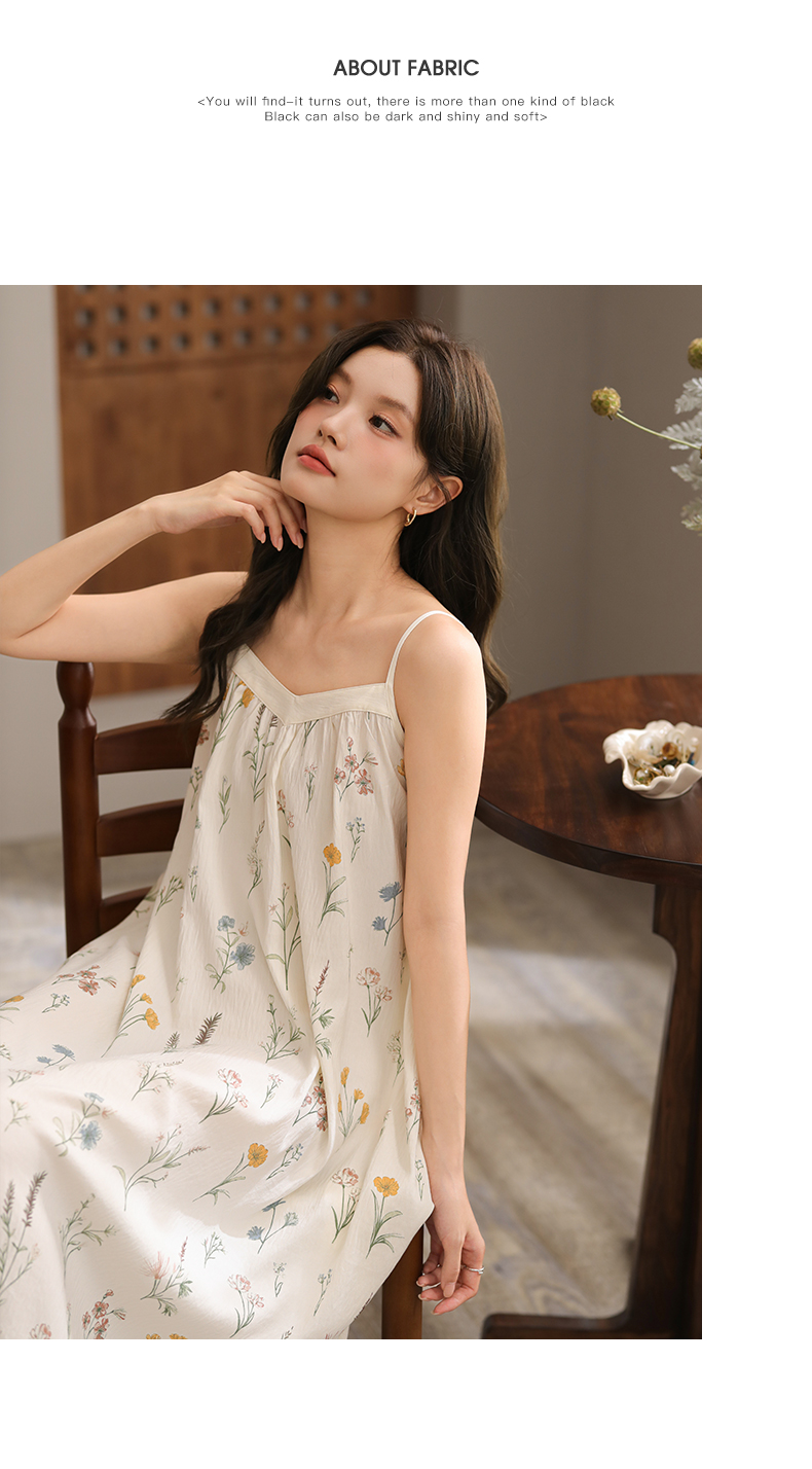 可人儿小众设计师新款泡泡绵女士睡衣夏季少女睡裙可外穿家居服