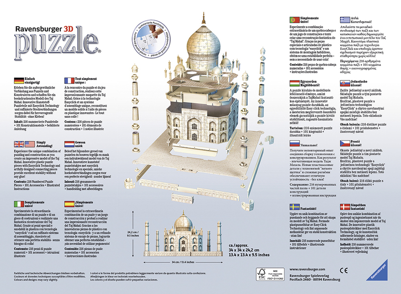 Ravensburger拼图 睿思3D建筑拼图印度泰姬陵 RAVC125647