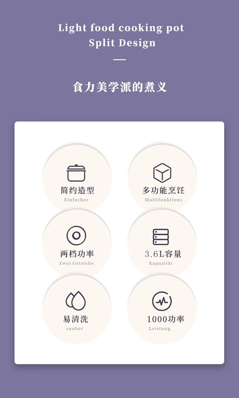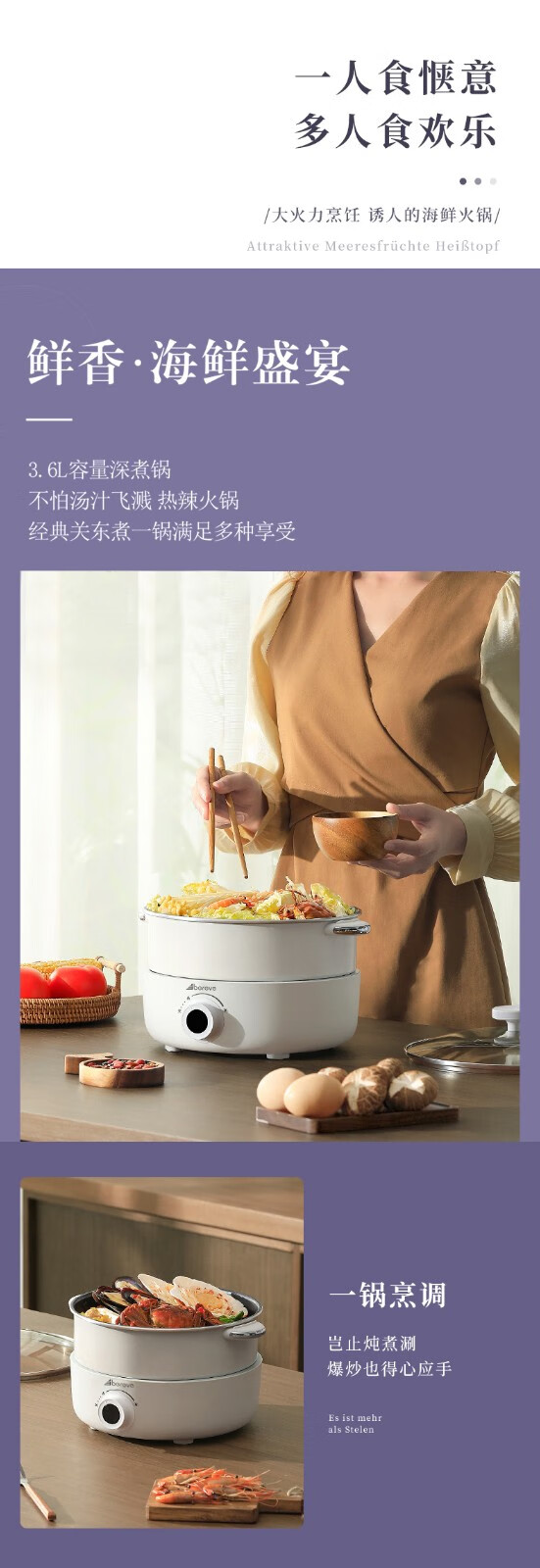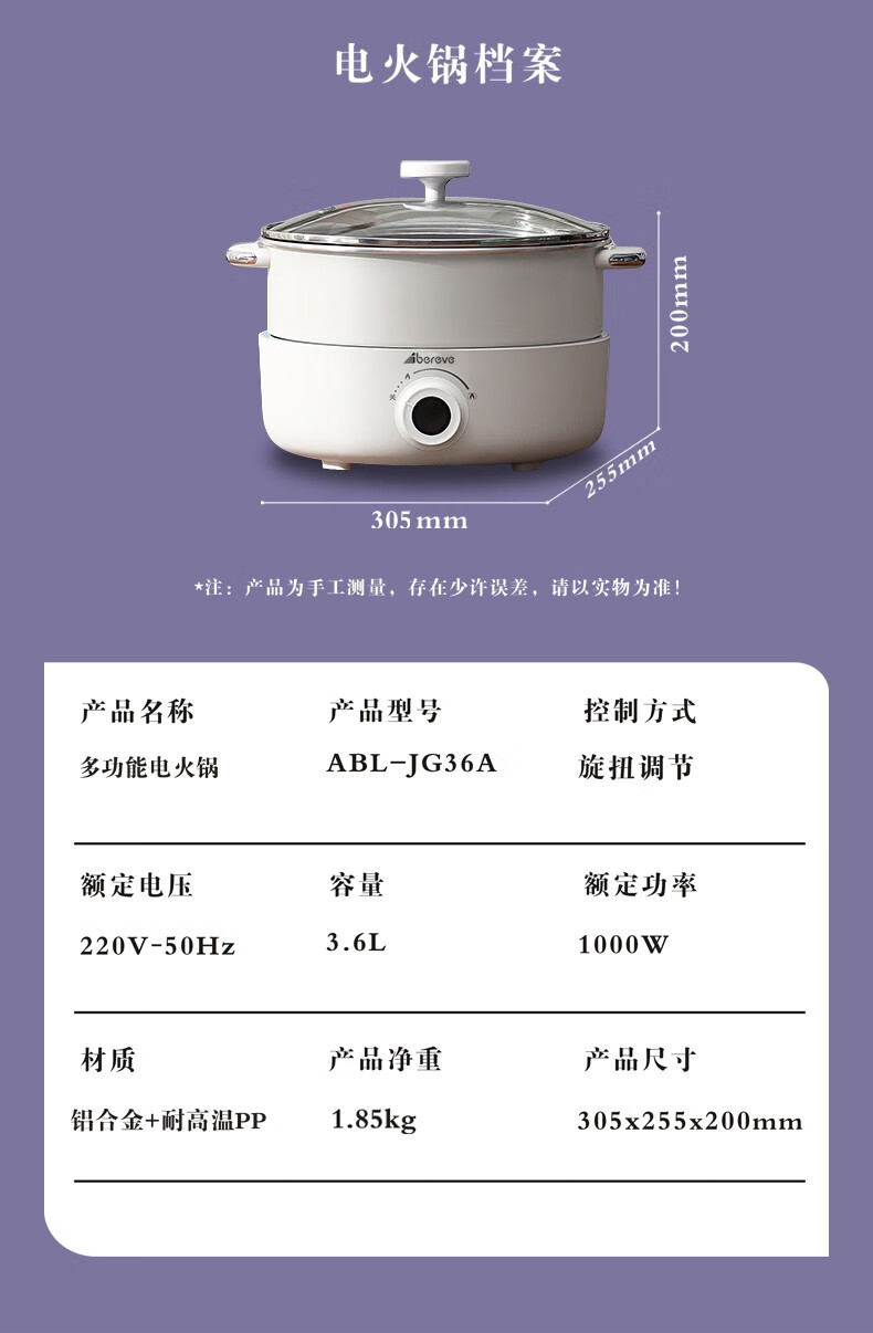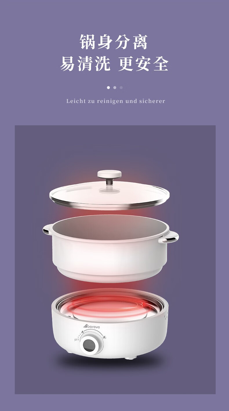 Abereve分体式多功能电火锅ABL-JG36A 白色