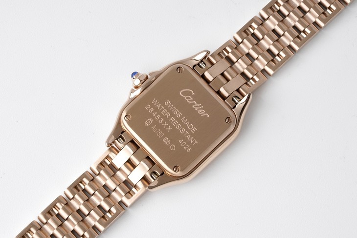相比背透设计,密底工艺可以保障腕表机芯安全性。1表盖上,镌刻卡地亚英文标识的下方,WATER RESISTANT 更是对腕表防水性能的保障。灵活自如的链节表链是腕表另一大亮点,处处都散发着曜目而饱满的光芒,从上到下都充满着独特的优雅奢华气质。