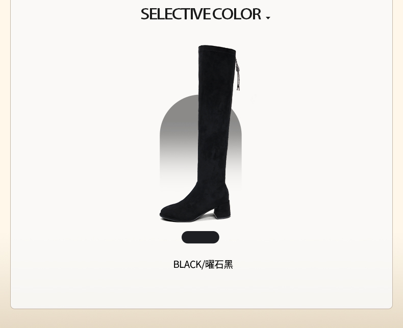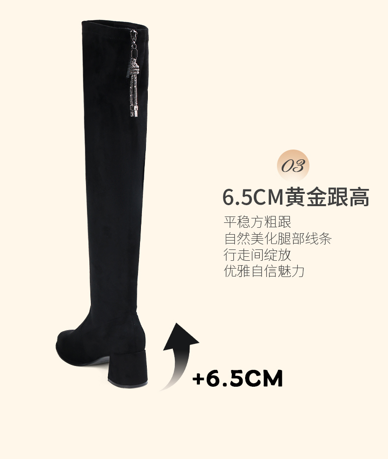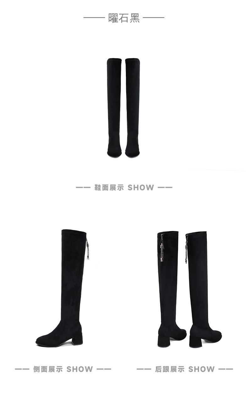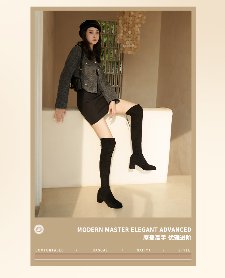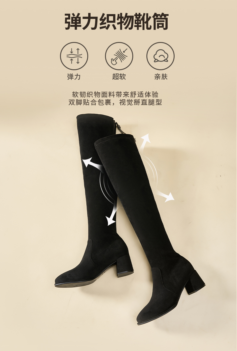 预售10天发|Safiya/索菲娅2024秋冬显瘦圆头百搭弹力高跟加绒过膝长靴 SF44117096/SF44119096
