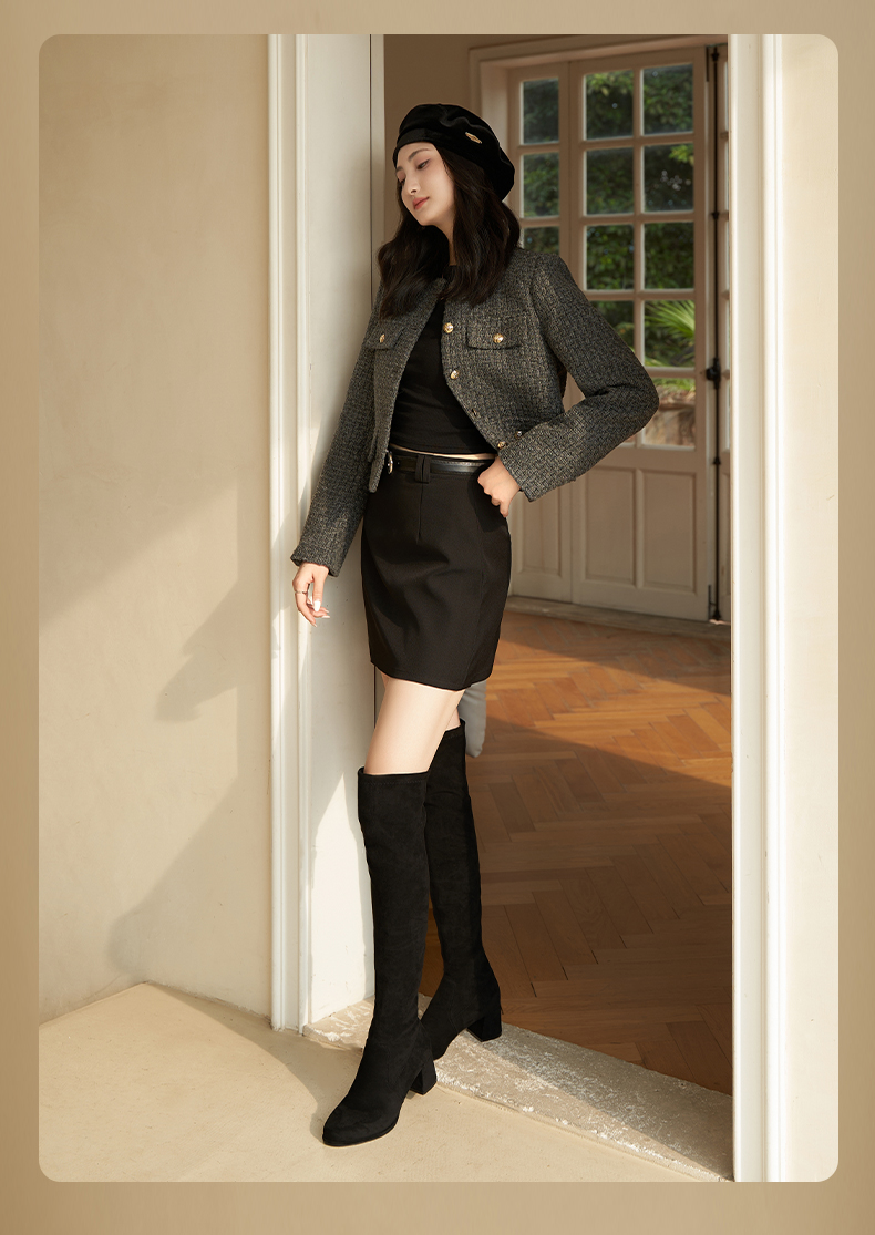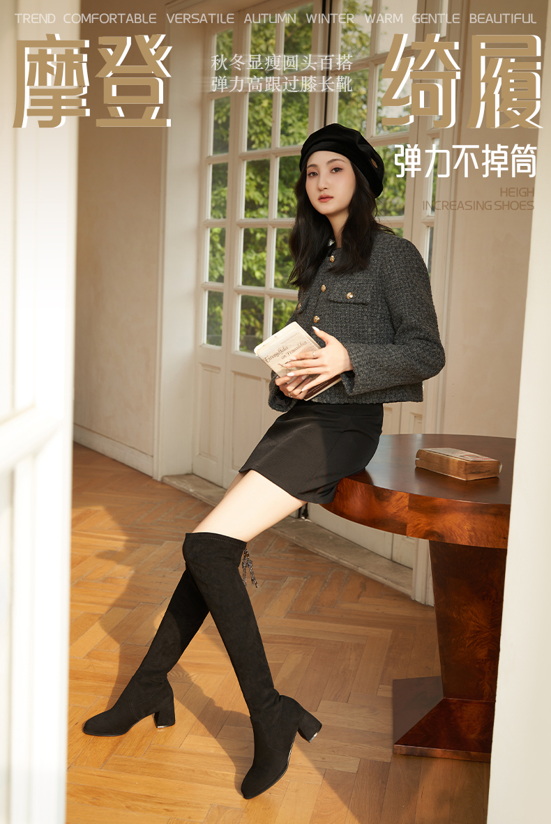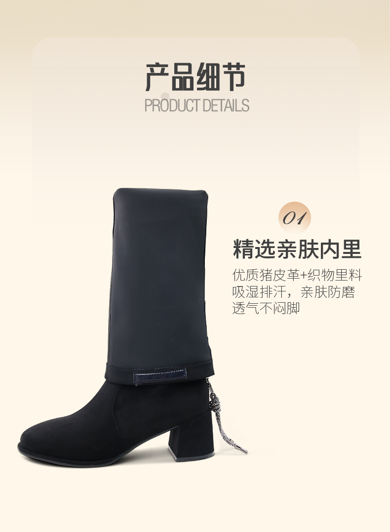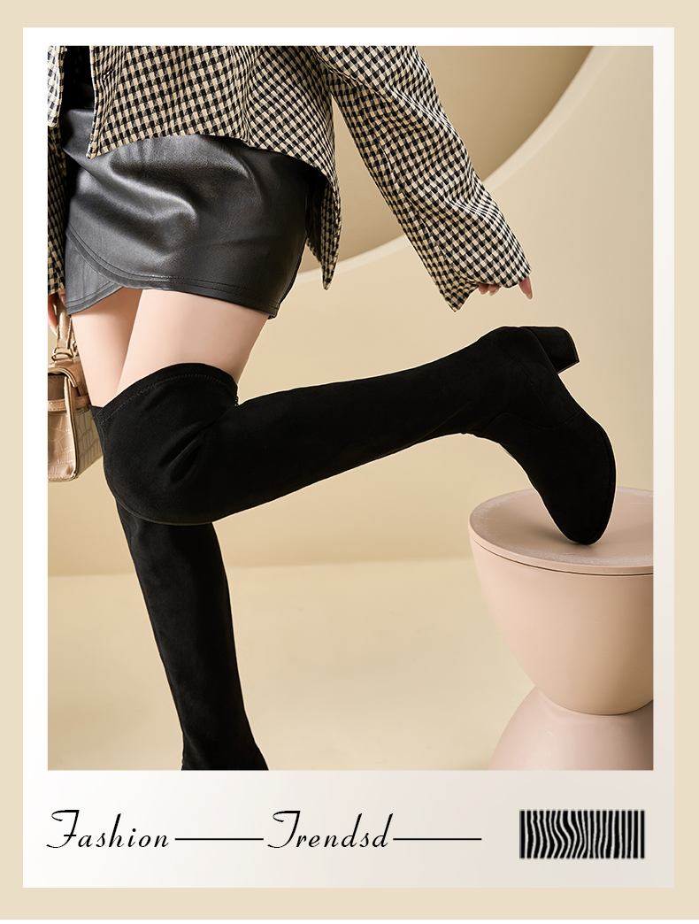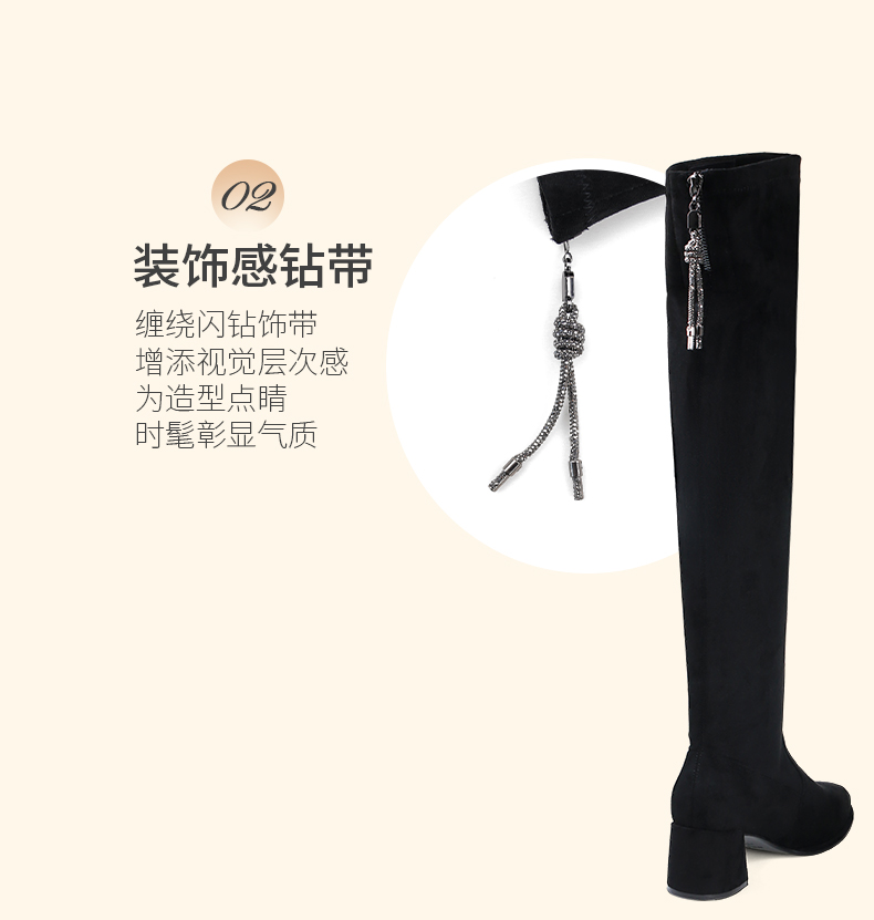 预售10天发|Safiya/索菲娅2024秋冬显瘦圆头百搭弹力高跟加绒过膝长靴 SF44117096/SF44119096