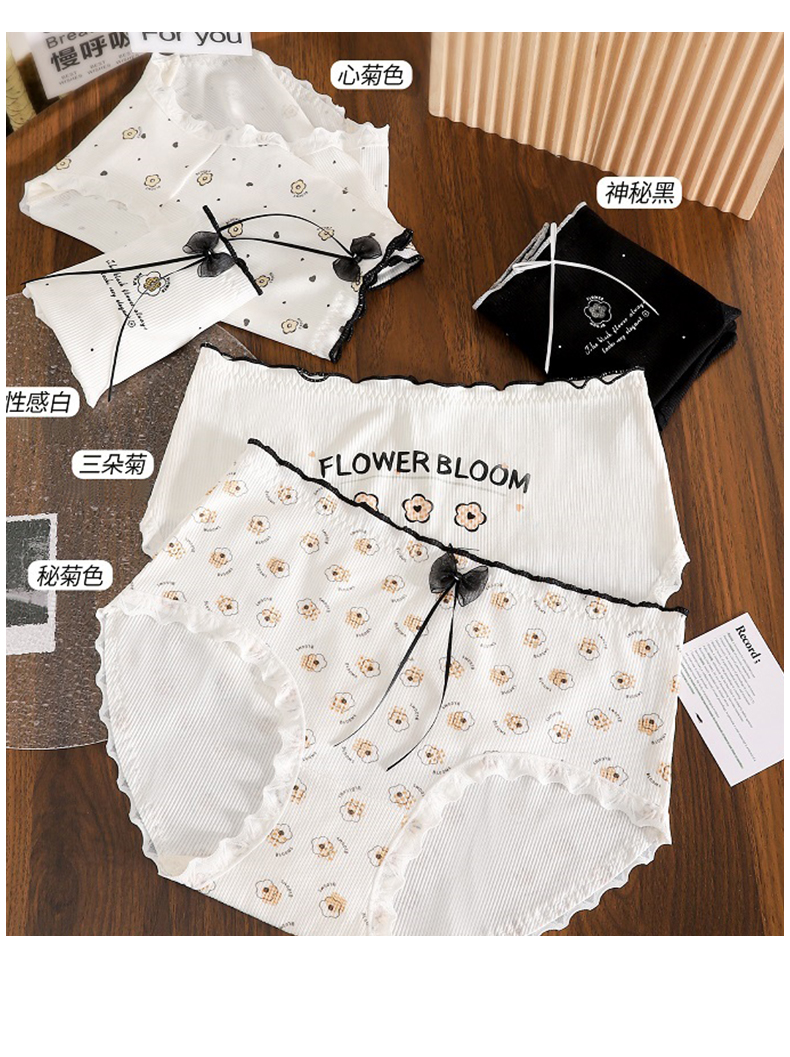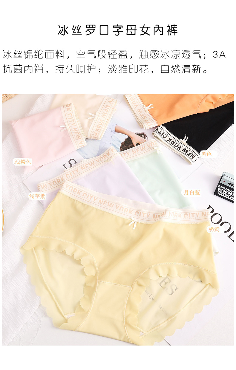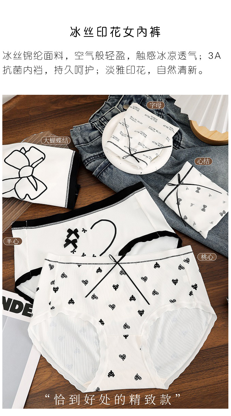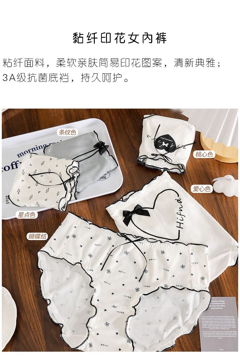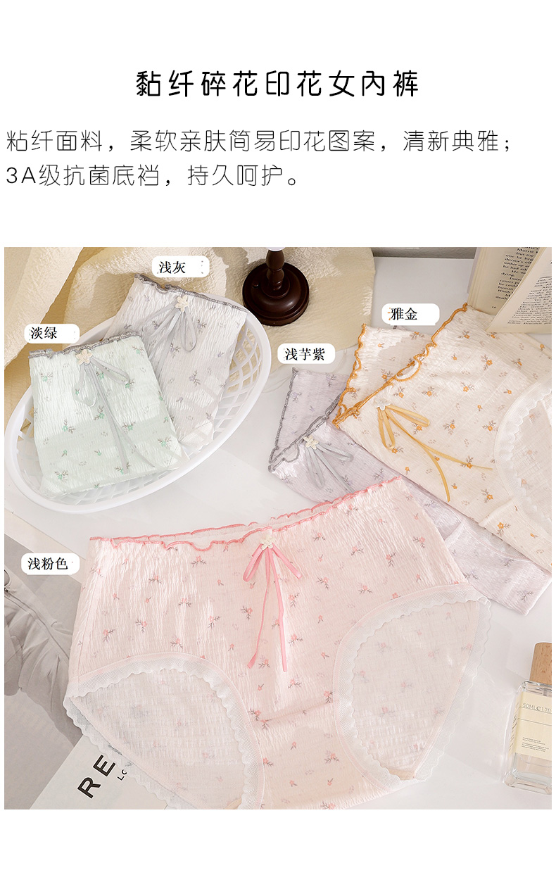 【5件99元】冰丝粘纤柔软亲肤淡雅印花自然清新3A抗菌内裆持久呵护女士内裤