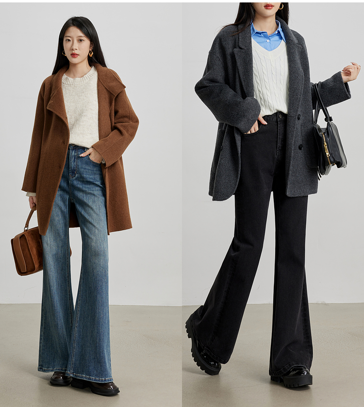 【周末秒杀】熙世界「漫画腿」微喇牛仔裤女2025秋季新款高腰显瘦修身喇叭裤子