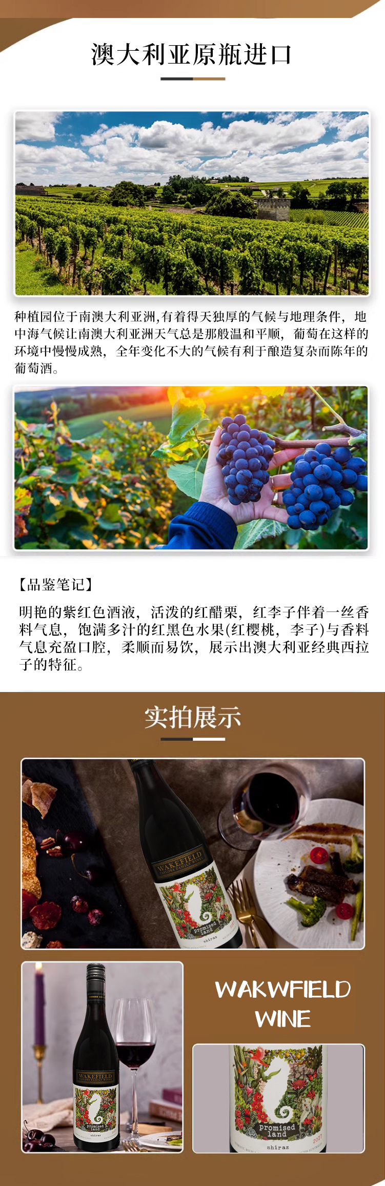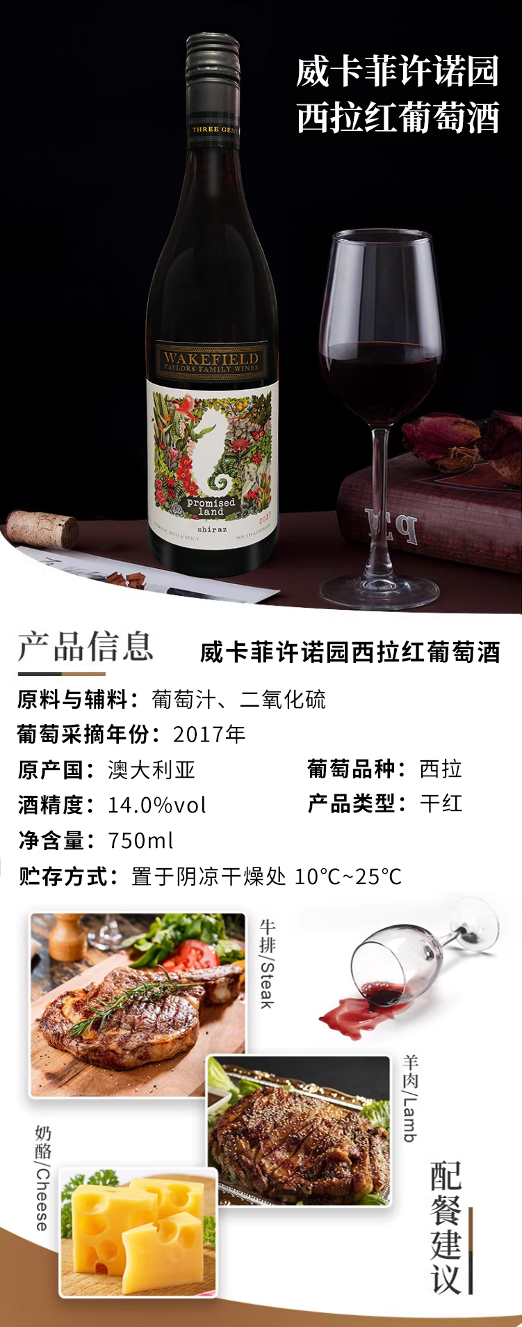 澳大利亚进口威卡菲许诺园西拉红葡萄酒750ml