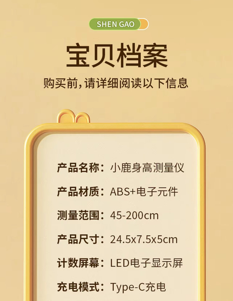 【小鹿身高测量仪】一键测量 语音播超好用四报!再也不要费墙上贴纸!尺子不稳不准的麻烦事了!全家老小都能使用!