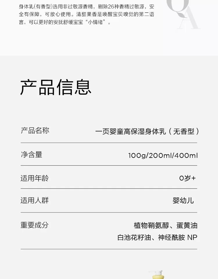 一页婴童高保湿身体乳套组(无香)500ml无香身体乳+100g无香身体乳*2