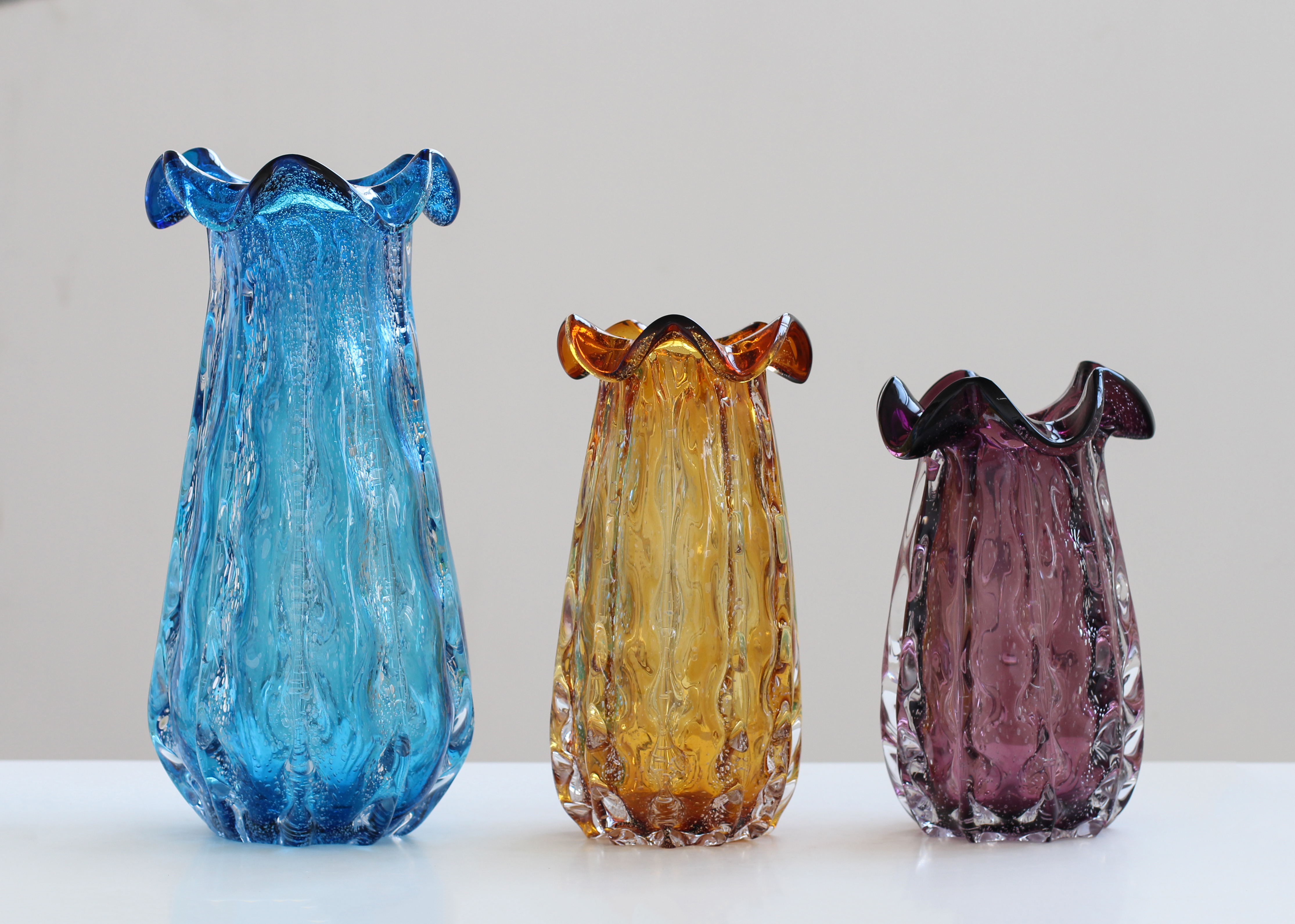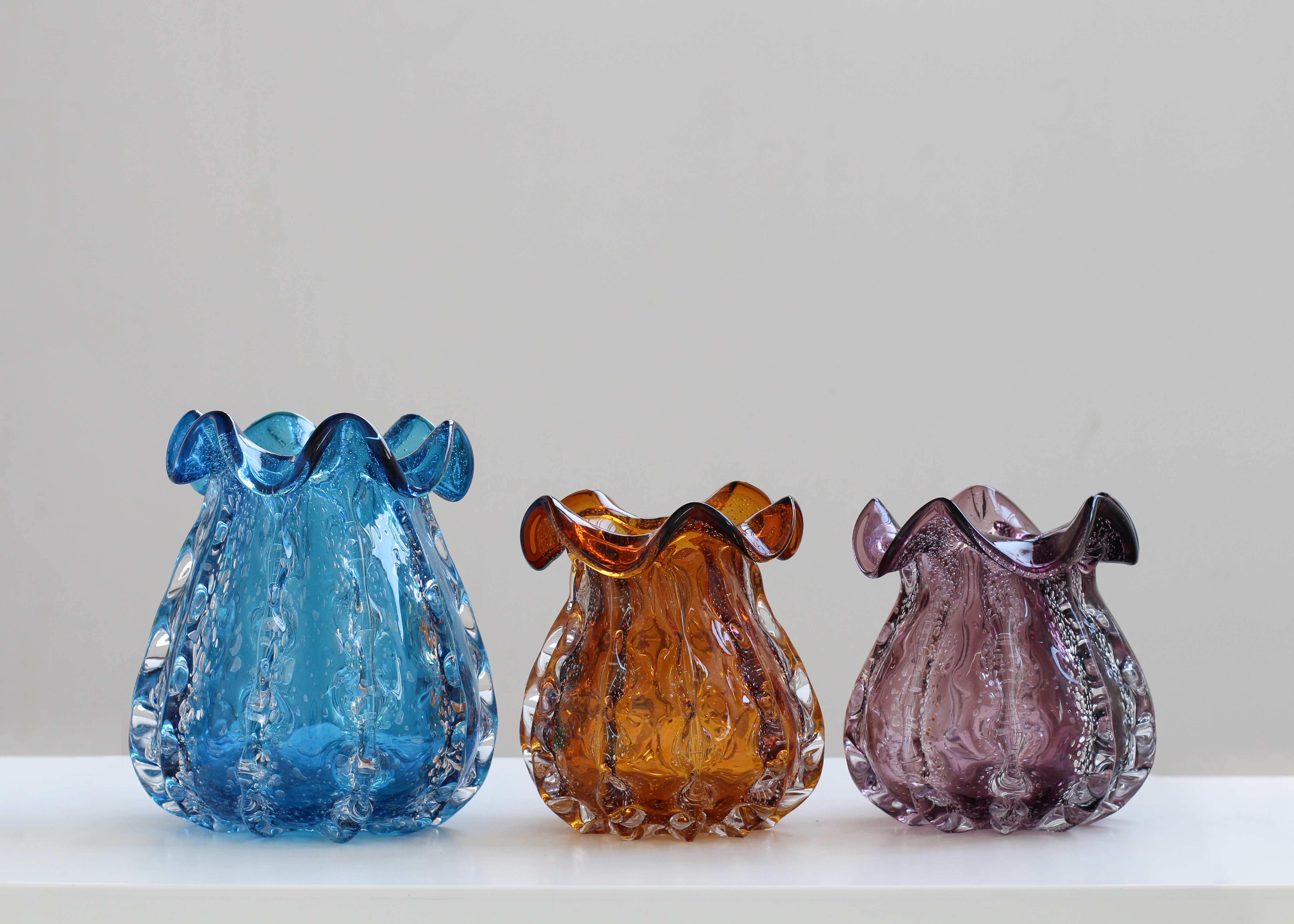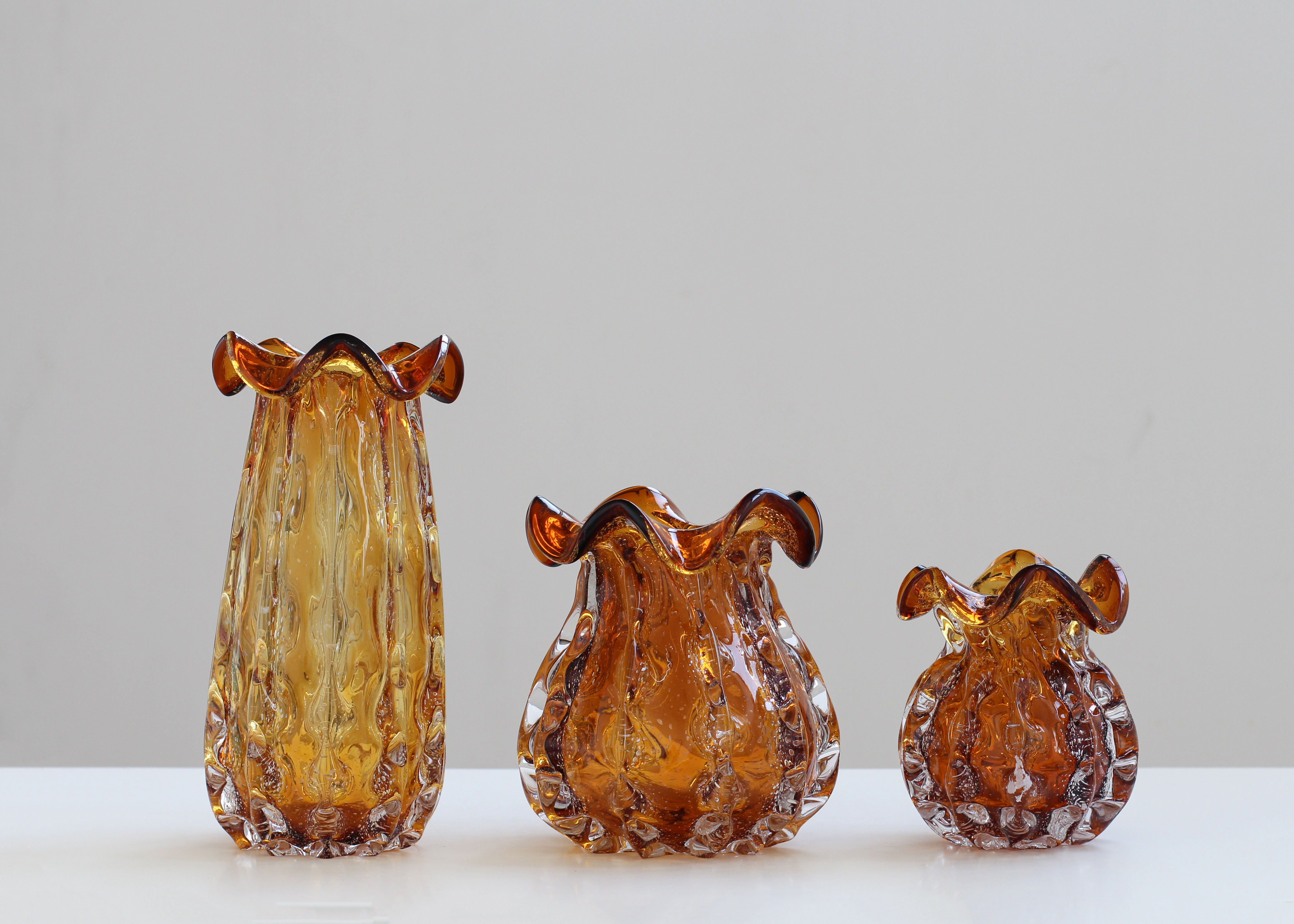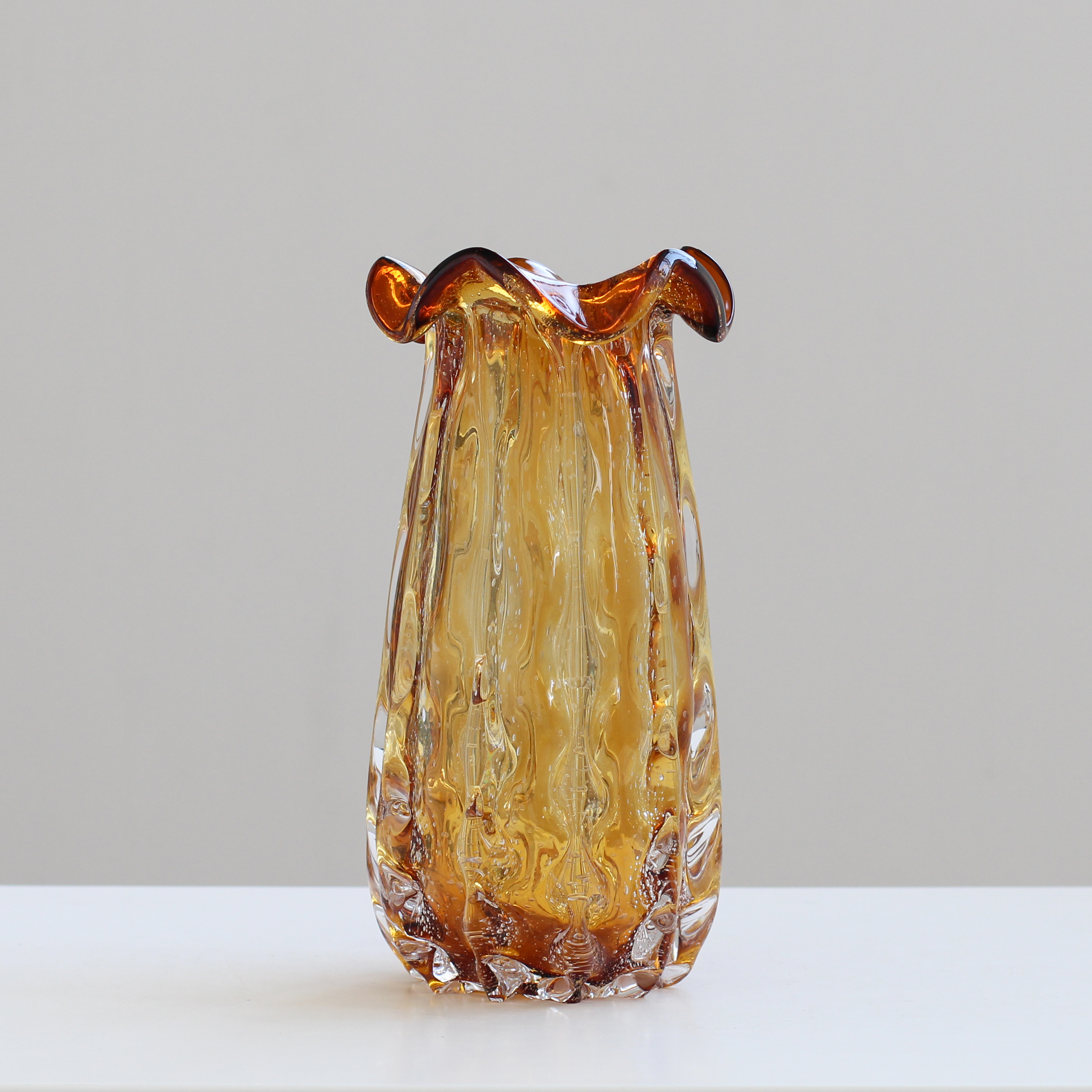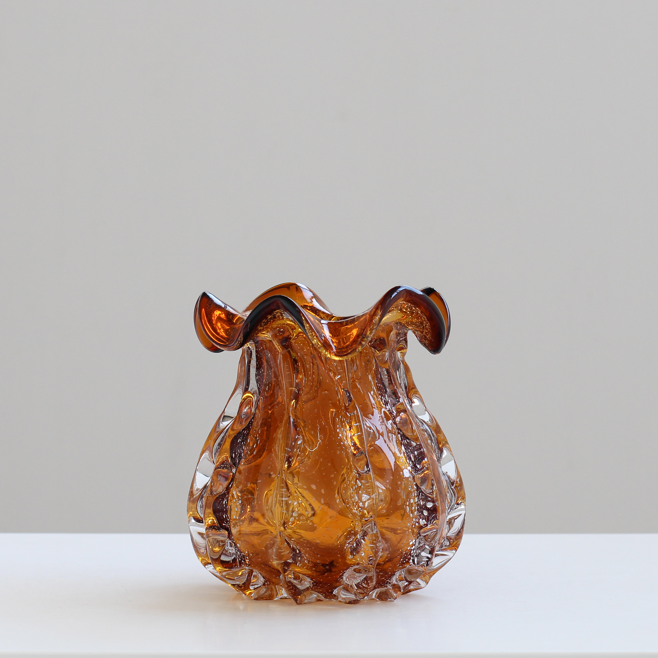现代重工琥珀色气泡琉璃钱袋子花瓶摆件家居客厅水培样板间软装瓶