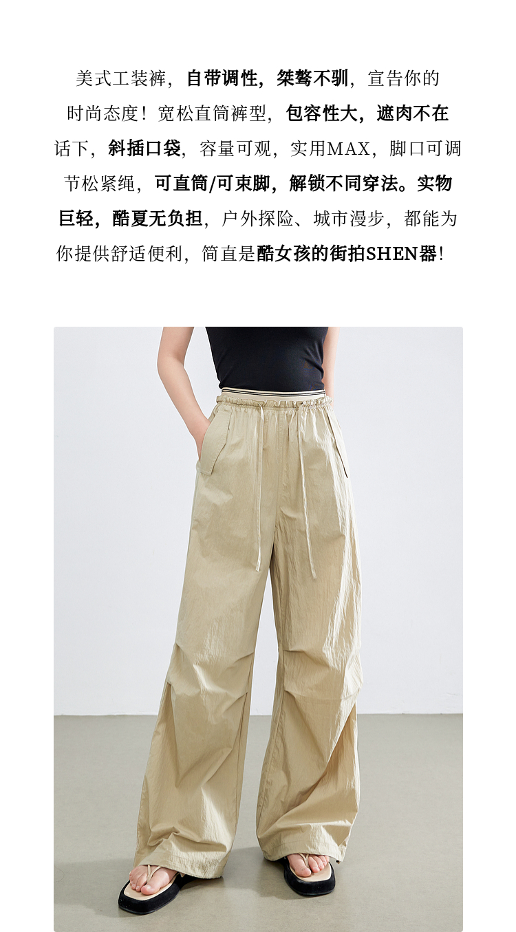 【专属特价】熙世界户外穿搭运动阔腿裤薄款女夏季宽松工装风休闲裤2025年新款