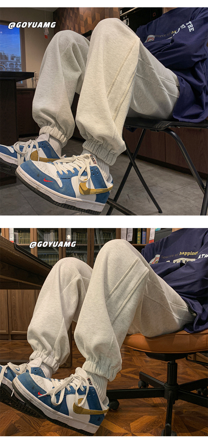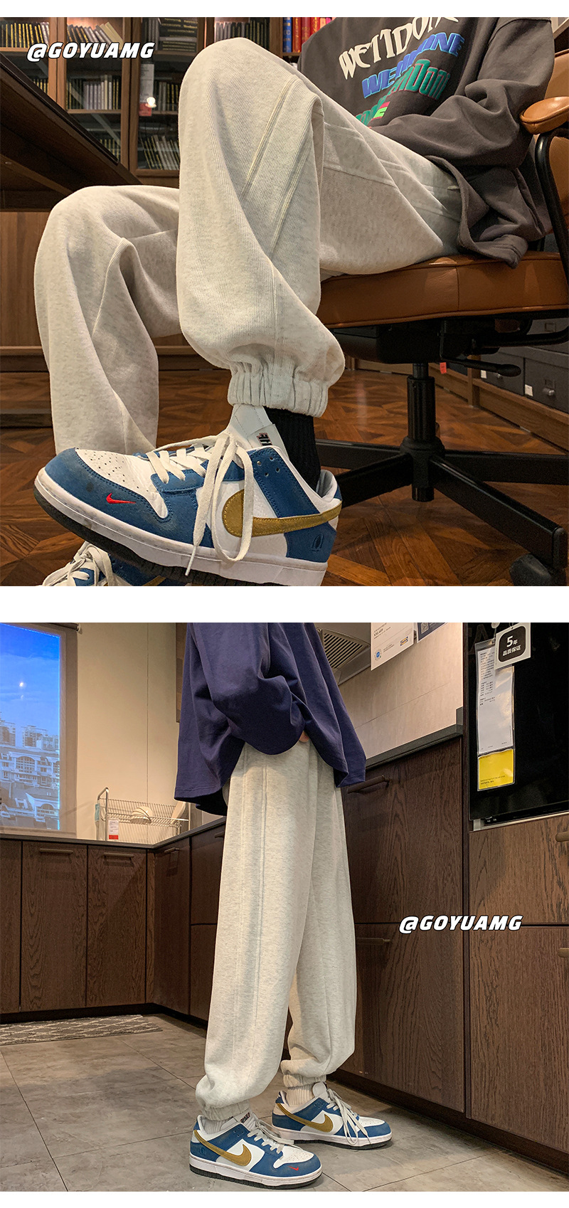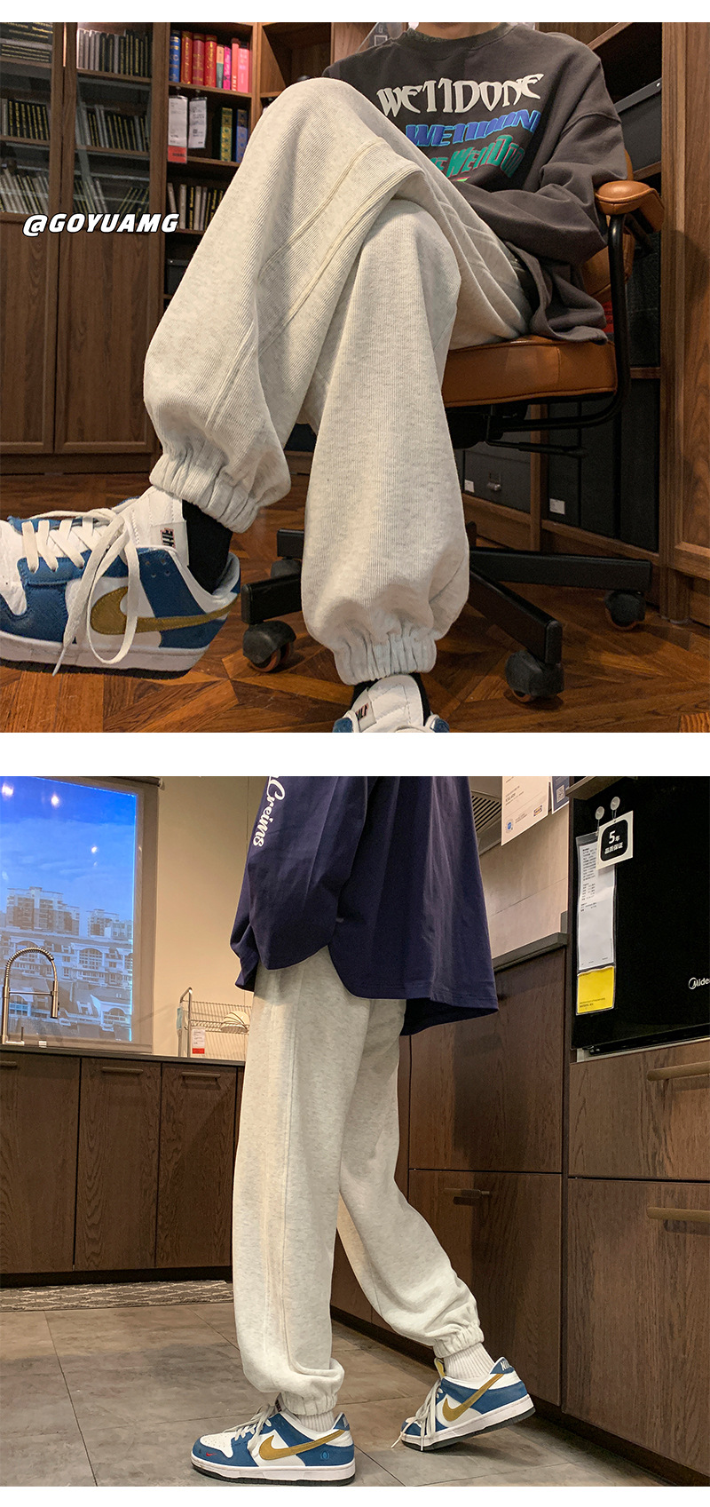 「四色可选!重磅卫裤」NASA重磅灰色卫裤 男春秋潮牌宽松运动裤子男款休闲大码收口束脚裤下装 商品图2