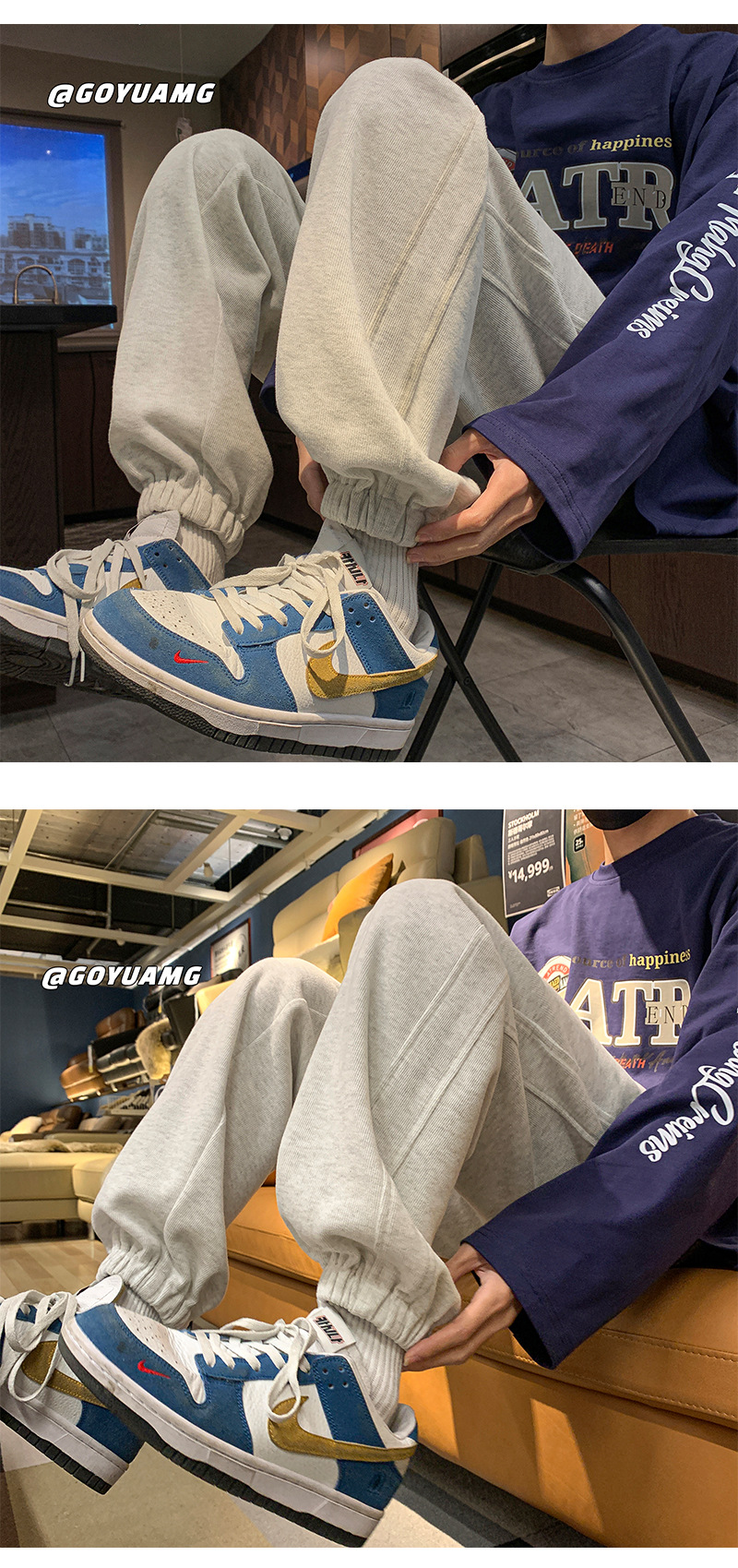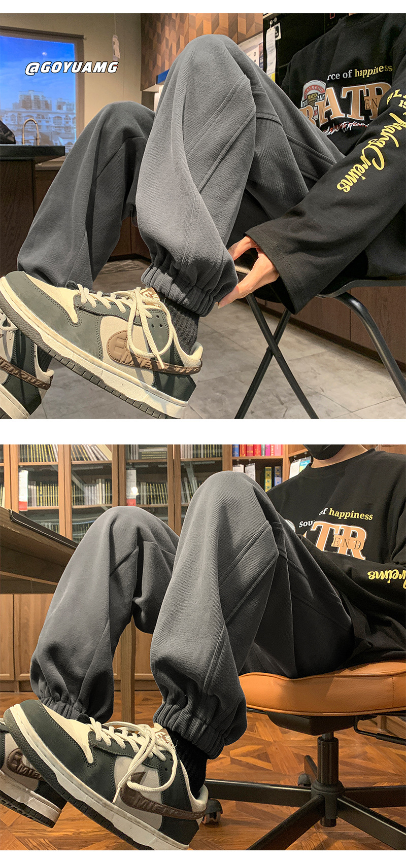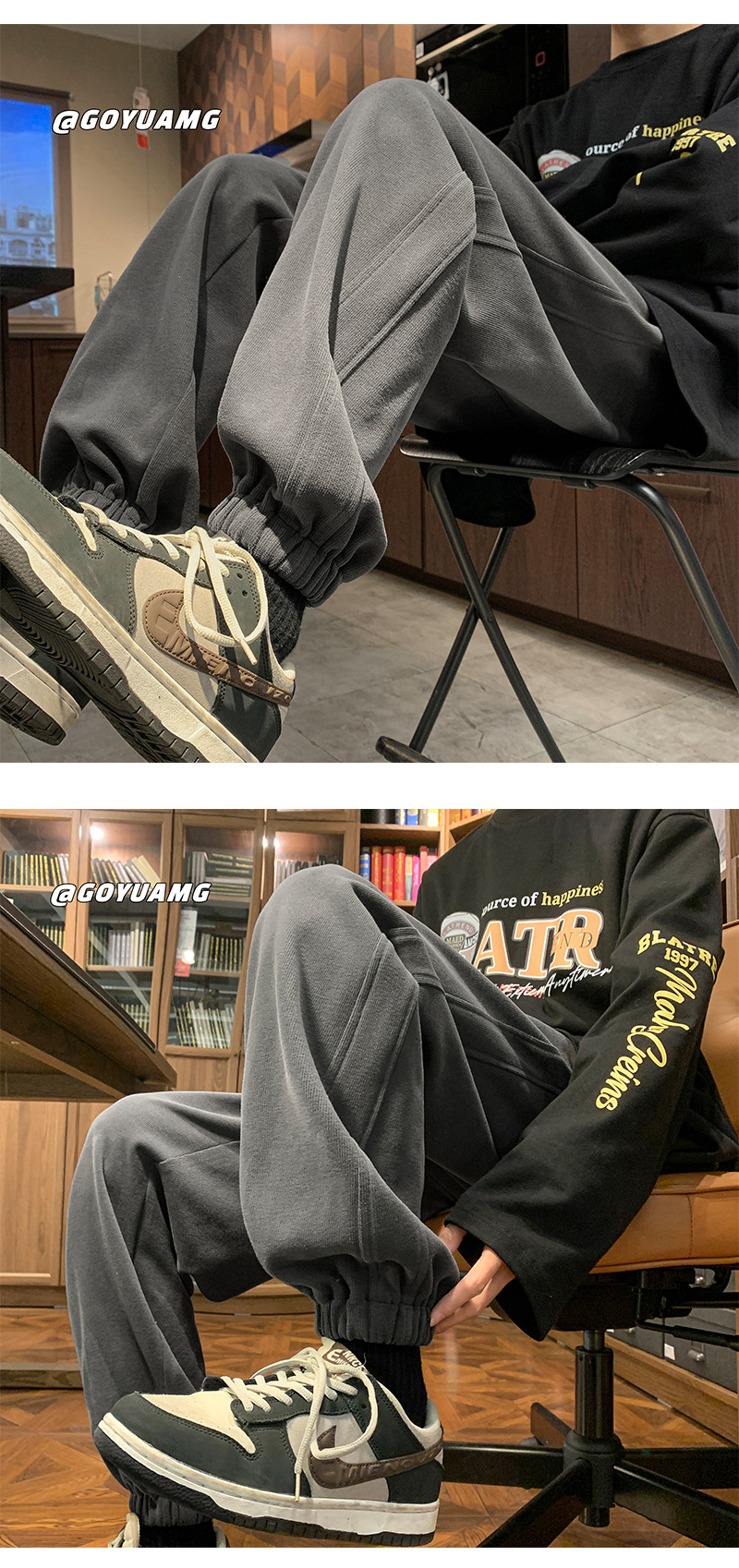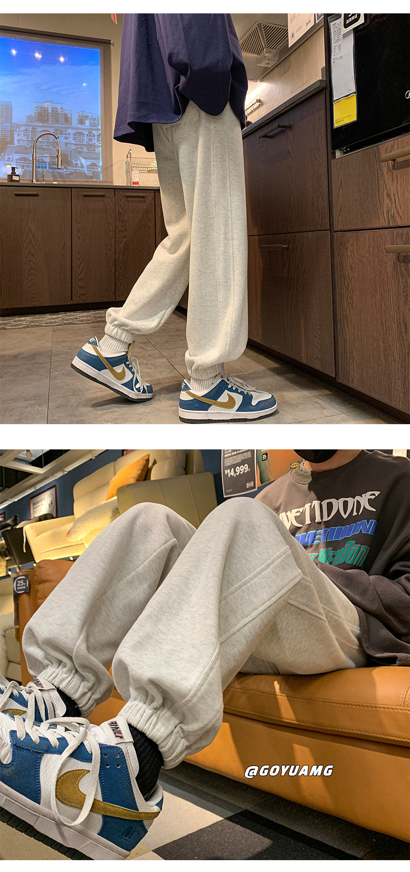 「四色可选!重磅卫裤」NASA重磅灰色卫裤 男春秋潮牌宽松运动裤子男款休闲大码收口束脚裤下装 商品图2