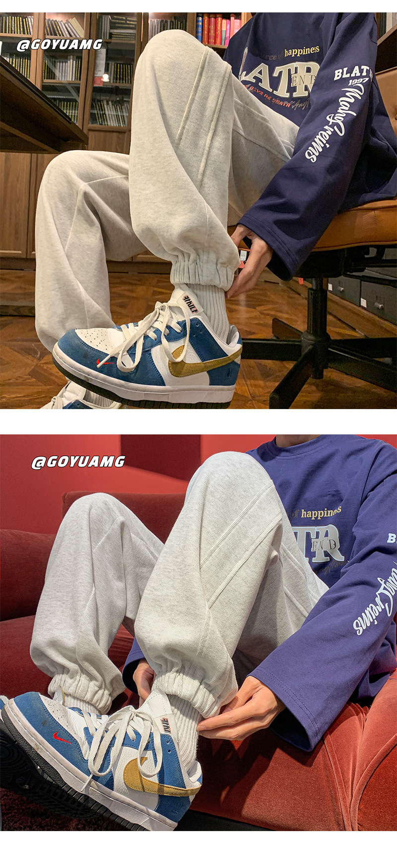 「四色可选!重磅卫裤」NASA重磅灰色卫裤 男春秋潮牌宽松运动裤子男款休闲大码收口束脚裤下装 商品图1