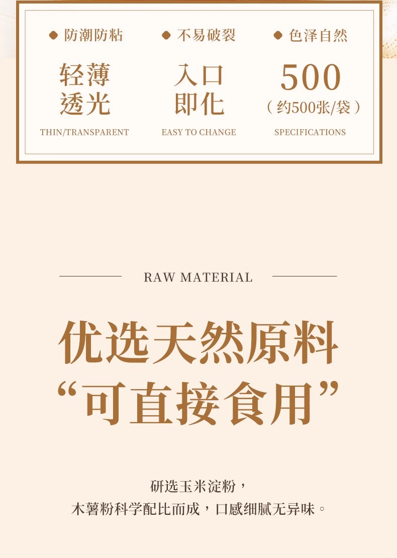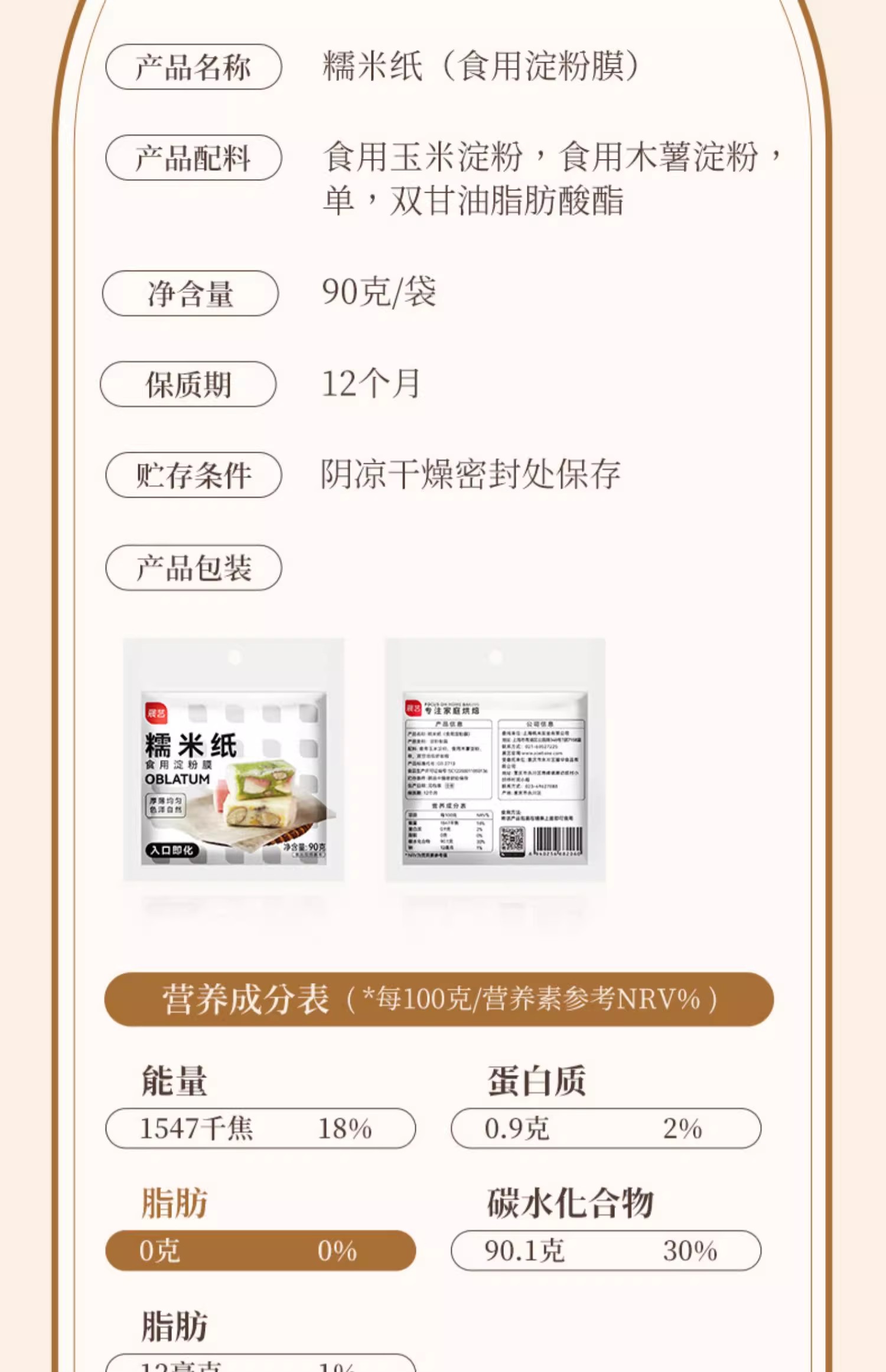 90g 约500张 展艺 糯米纸 牛轧糖雪花酥阿胶糕包裹食用糯米纸 【8*6.5cm】