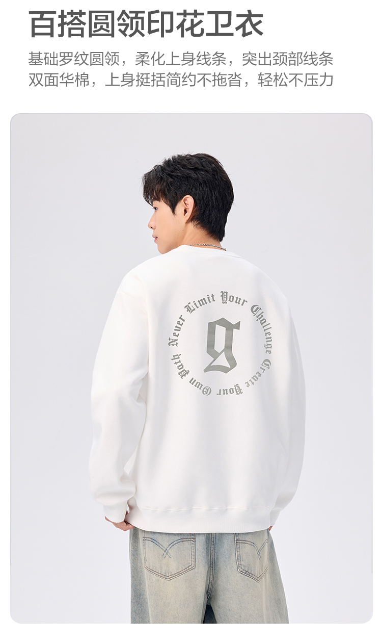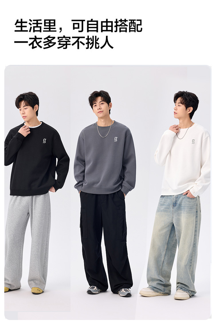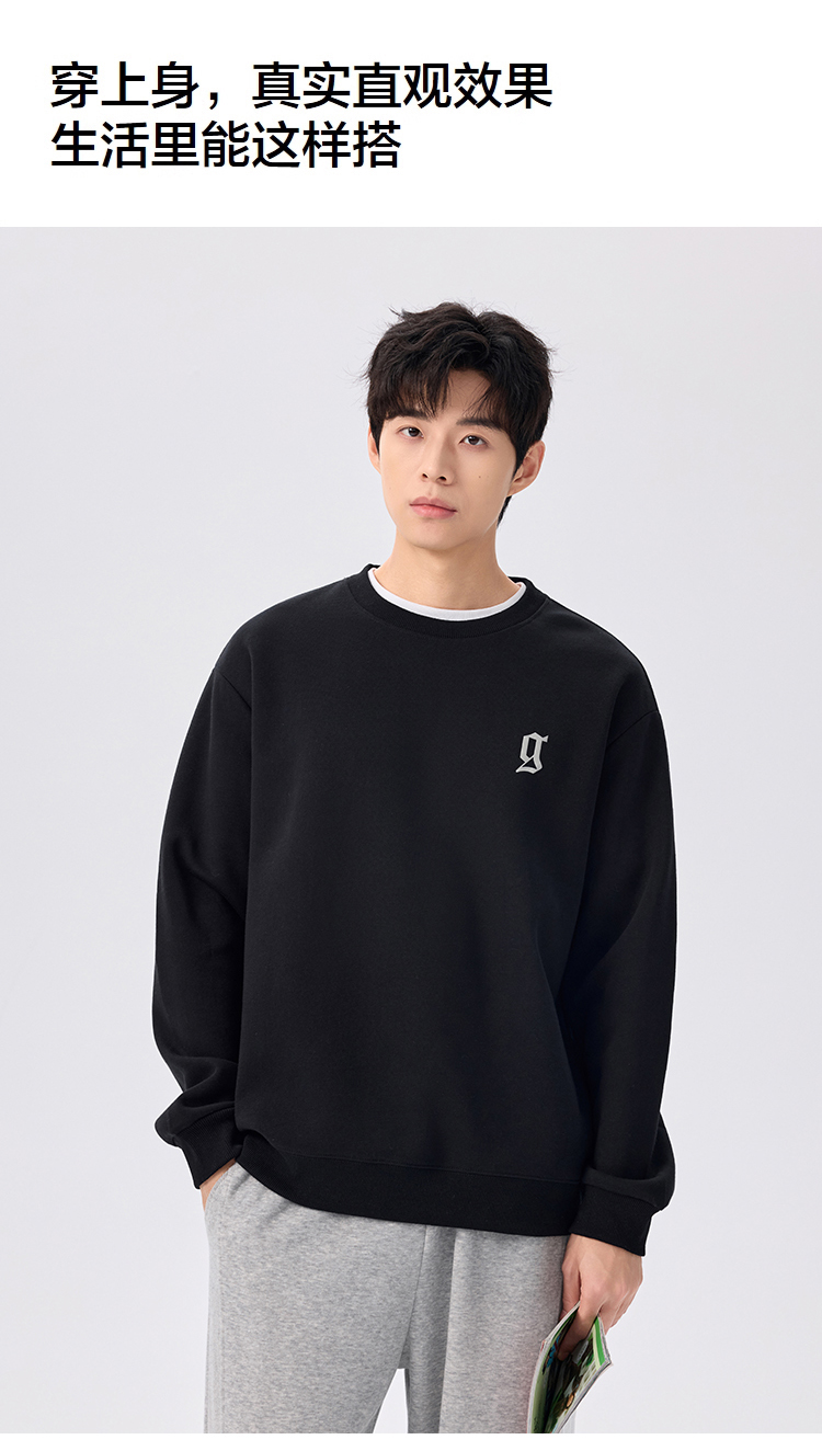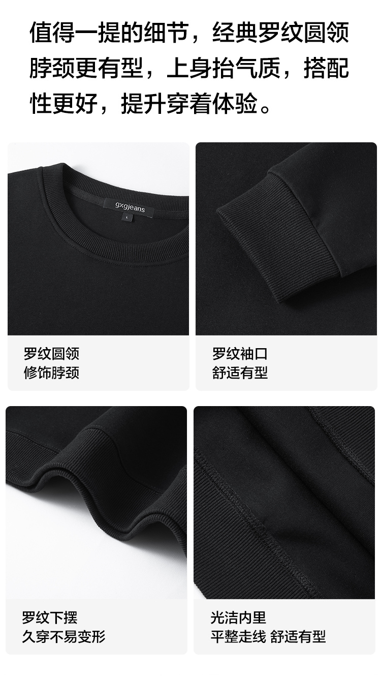gxgjeans男装圆领卫衣26春款透气亲肤简约百搭校园青少年男士套头卫衣K&C
