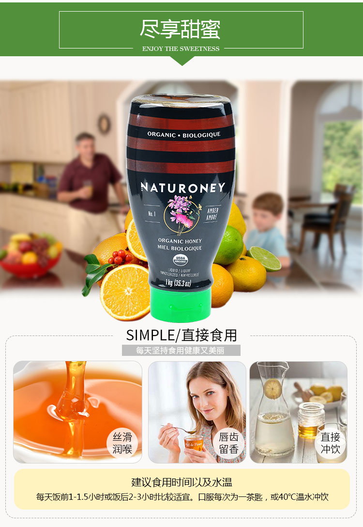 Naturoney 有机野花天然蜂蜜1公斤美国农业部有机认证 #天津仓