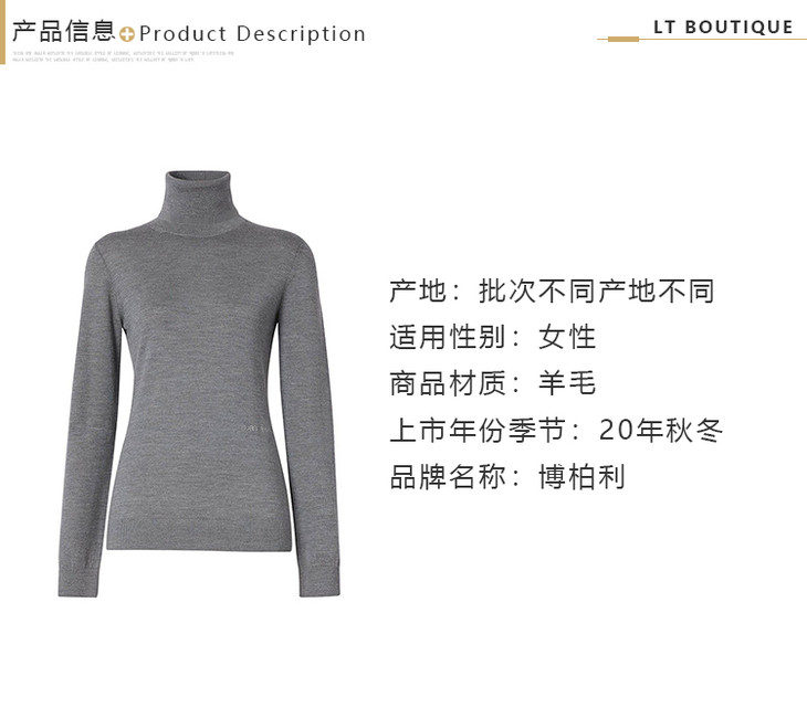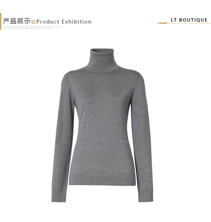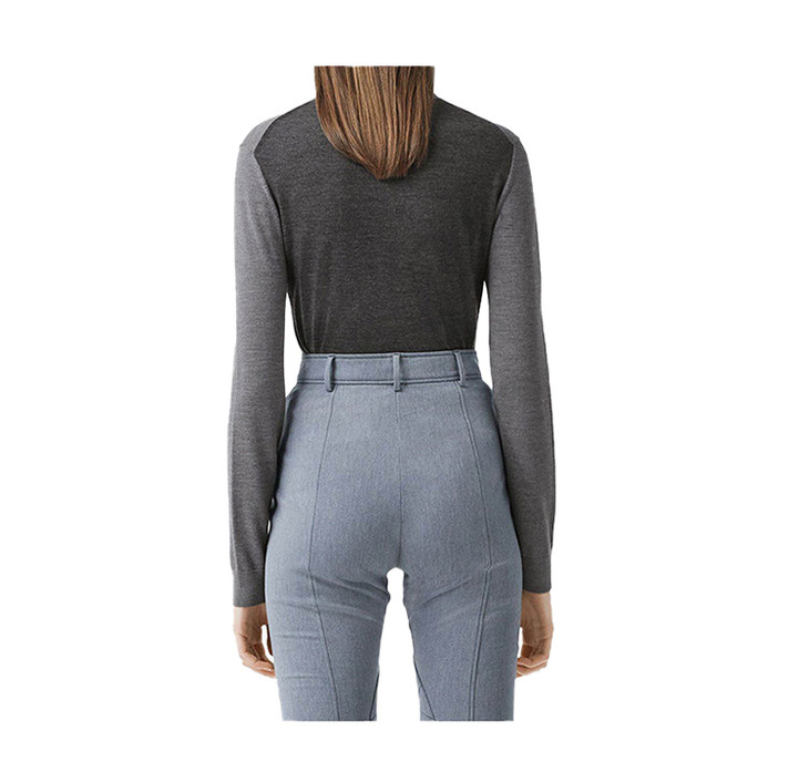 【二】BURBERRY 巴宝莉 女士灰色混色双色美利奴羊毛真丝高领毛衣 灰色 8030037 A1216