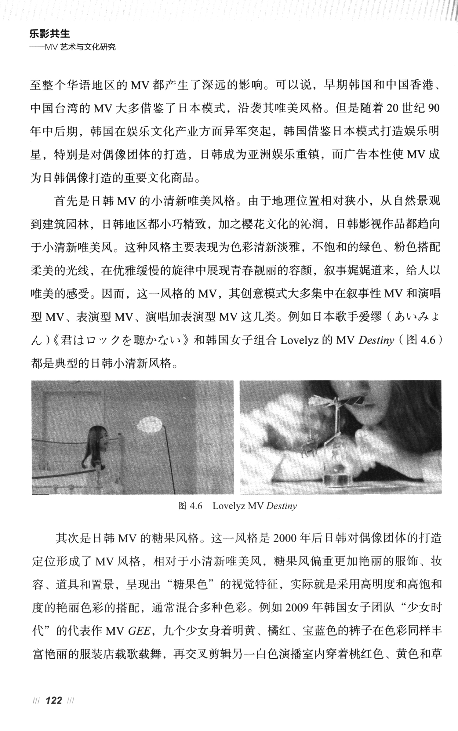 我忽然想起来此前曾经经历过某一个独特的晚上,忽然发现形成众人关注期待的现象,就是周杰伦即将发布他的新MV《说好不哭》,当时引起了社会相当强烈的呼应和反响。于是,作为一个研究者当然要关注新的媒介现象和传播路径。于是我也等待并且第一时间欣赏研究,随后紧跟网络媒介播放的《说好不哭》这个作品,并且当时就做了一个自己的评价。当时网络形成各种不一的议论分析,人们对于周杰伦的《说好不哭》有各式各样的褒贬评价。音乐、影像、人物关系、叙事呈现意味等都成为评价的要素。《说好不哭》讲一个女孩儿之所以喜爱摄影男孩儿,是因为得到他无意中的安慰鼓励,于是痴迷但默默无语的为成全专业需要而为他而购置了一个独特的摄影器材,并且知道他要出国就想尽办法为他填好了出国的资料等。短小的视听对象、悠然吟唱的旋律与人物表现的情感呈现,在相当精致化的影像中给人留下视听光影和音乐的感染力。延续多日的网络轰动谈论证明,一个MV作品超越自身观看之中,人们既有对周杰伦明星的反响,也有对这个作品整体趣味的评价,还有关于细致的音乐感知的分歧意见,以及男女主人公关系的不同认知等。我当时是以艺术感知的角度来分析一个微视频MV作品,觉得即便年龄不同,趣味也有差别,但是还真是很喜欢其整体回环往复的音乐魅力,和摄影给予的视觉动人性,以及两个人物无言却前后换位的动作意味。尤其是MV扑面而来的感官诱惑力的分析,和镜头语言给人艺术享受的味道等分析让我有了时代MV的基本感知。事实上我们一般只是就事论事的对一个单独作品的赏读,往往没有意识去做整个MV艺术形态和发展迁变的联系。但读到胡老师这本专著,让我一下就想起了MV既往在时代延展中的明显变化,和在不同时代社会境况中的形态转换。作为一个MV的作品,在很早以前我们知道叫做MTV,但是MV的出现是富有微妙的意味,因为已经不依存于电视,就是所谓的TV而生长,而成为一个有独立形态并且不断地随着时间变化而产生创作影响力的艺术表现对象。我在想,胡奕颢老师居然把这样一个看起来短小的音乐视频的作品,和作为一种特定群落喜好偏向小众其实是年轻人的特殊创作形态作品,加以研究聚焦放大,并且做了如此深入的历史梳理、现实状况分析,还有其艺术表现方法以及在演变过程因素等的分析,实在是令人惊讶而佩服。