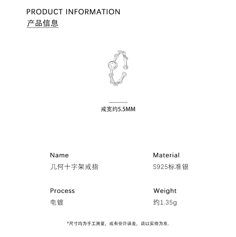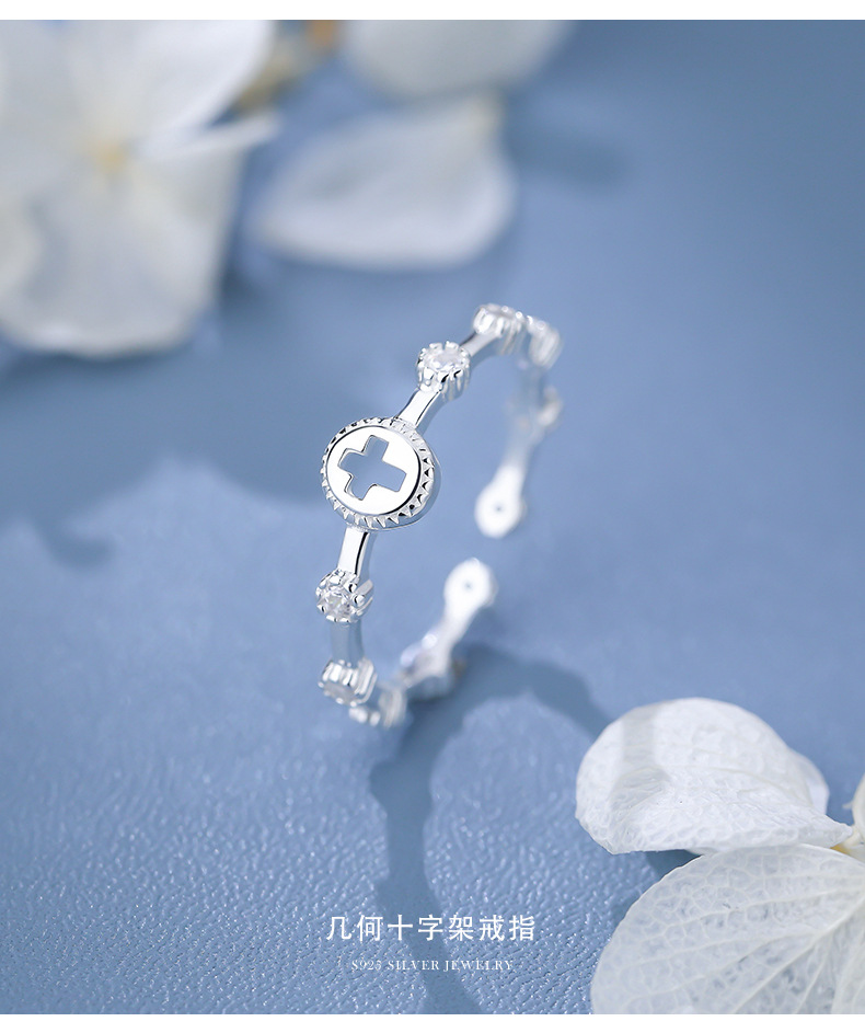【十字之牵】S925银镂空十字架戒指【YXS-K2093】