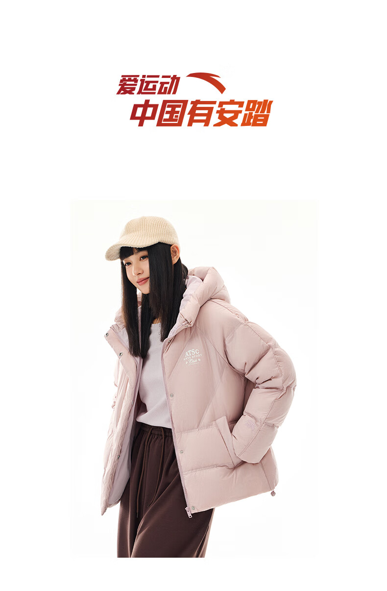 安踏【关晓彤同款】多彩羽绒服丨防泼水保暖外套女面包棉服162548903N 【关晓彤同款】矿质粉-5