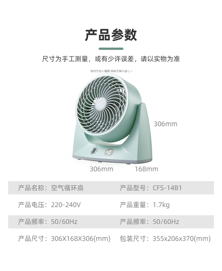 家奈 空气循环扇(基础款) 绿 CFS-14B1