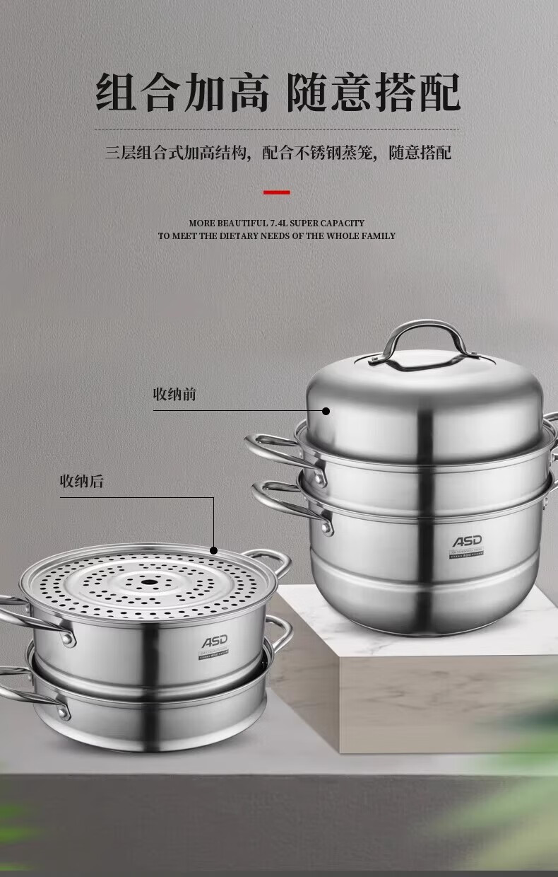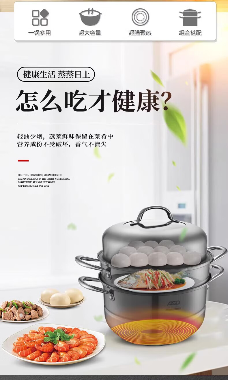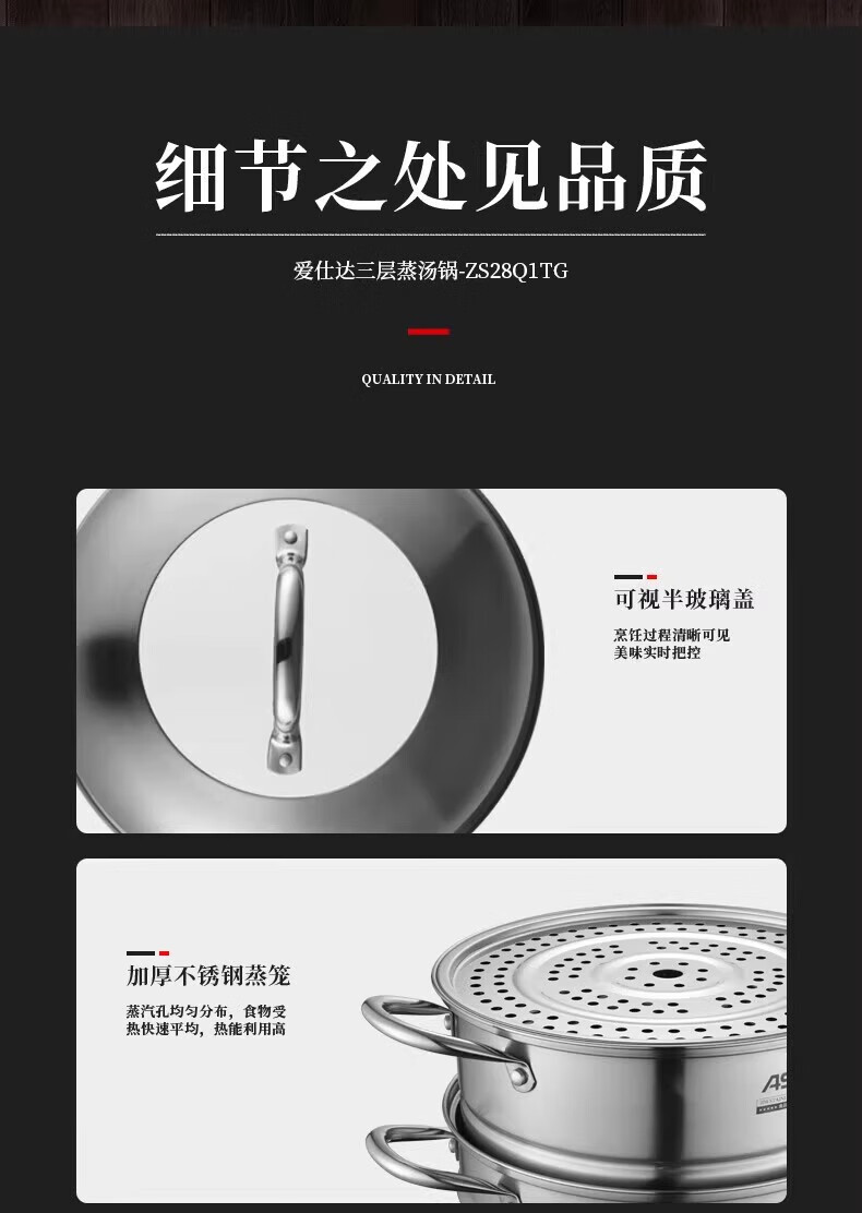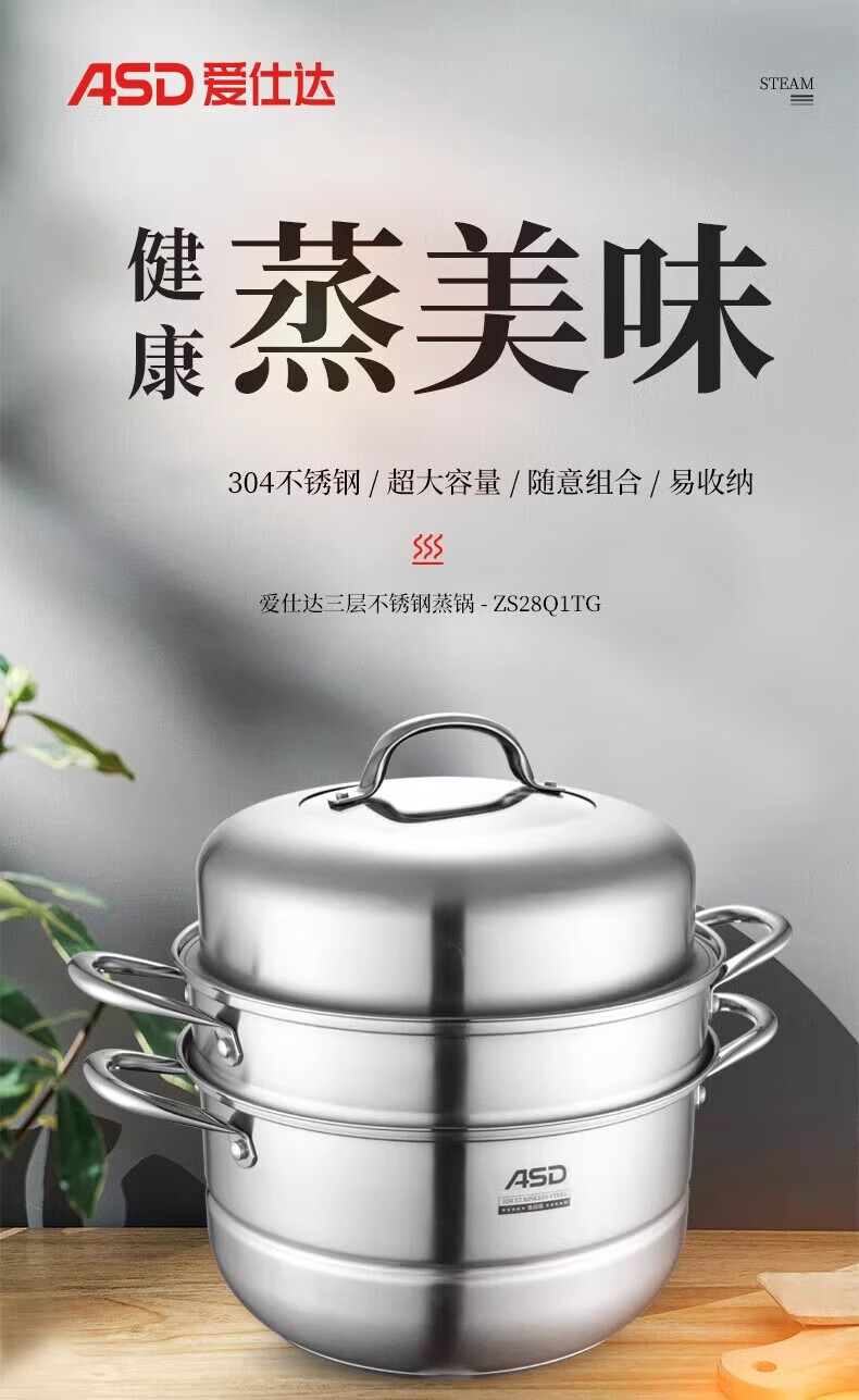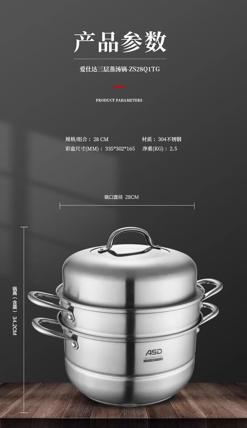 【分仓直发包邮】爱仕达俊雅不锈钢三层复底蒸锅ZS28Q1TG