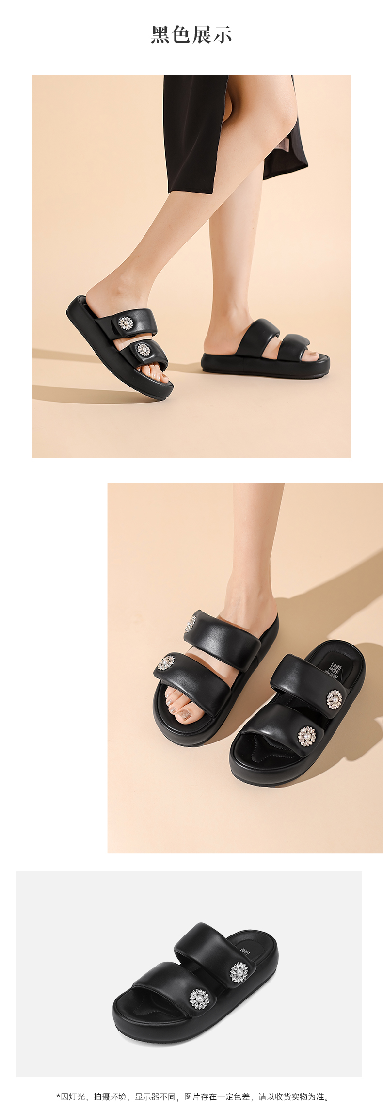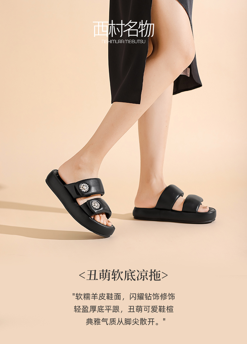 西村名物2023夏季新款外穿厚底凉拖真皮休闲运动沙滩凉鞋女23241