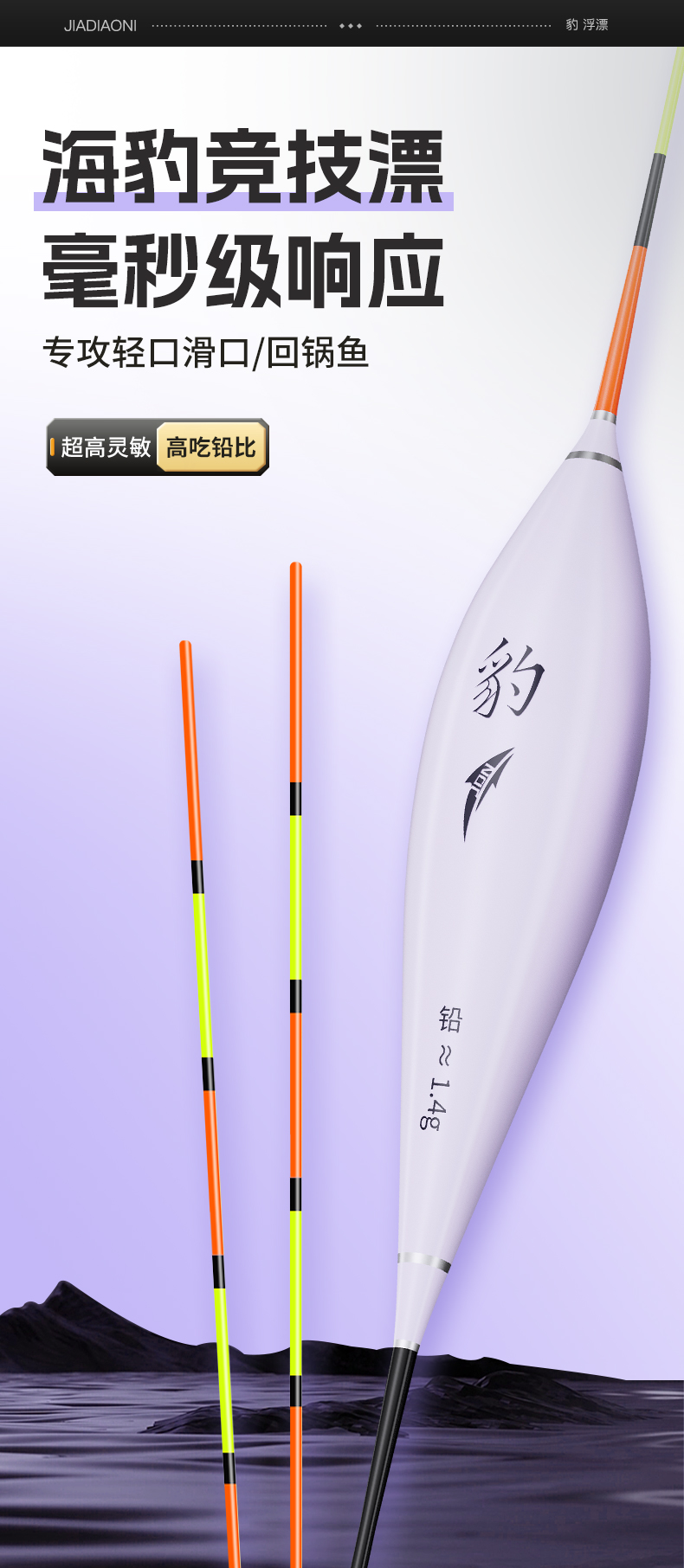 佳钓尼海豹竞技浮漂专攻轻口滑口回锅鱼超高灵敏度竞技坐钓兼备