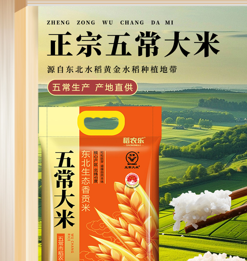 2025年秋收新粮 稻农乐五常大米20斤东北生态香贡米 清香软糯 健康安心 煮粥煮饭 炒饭优选