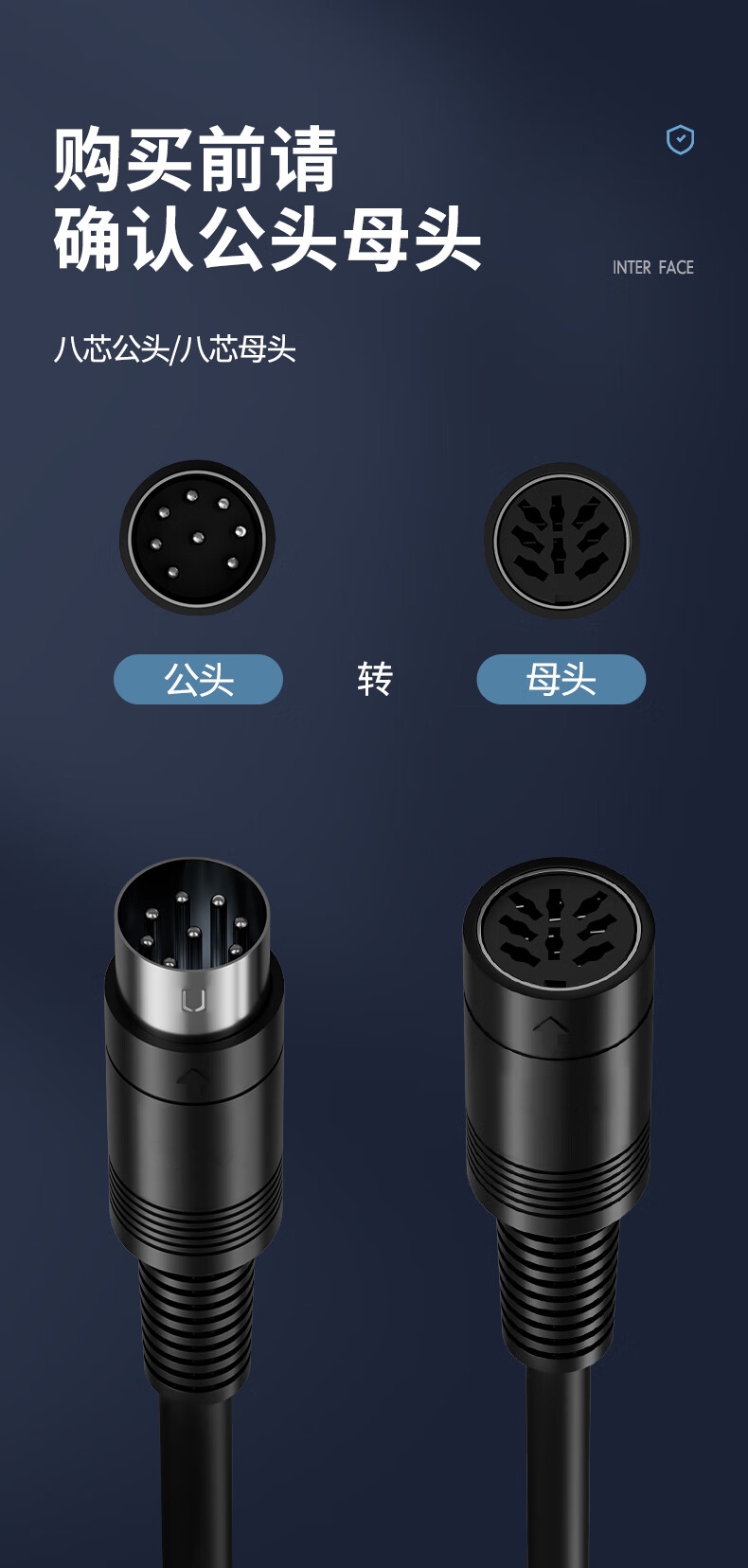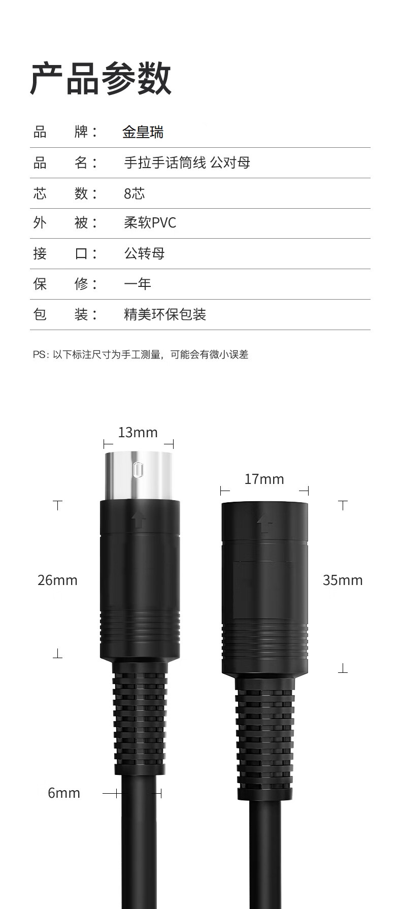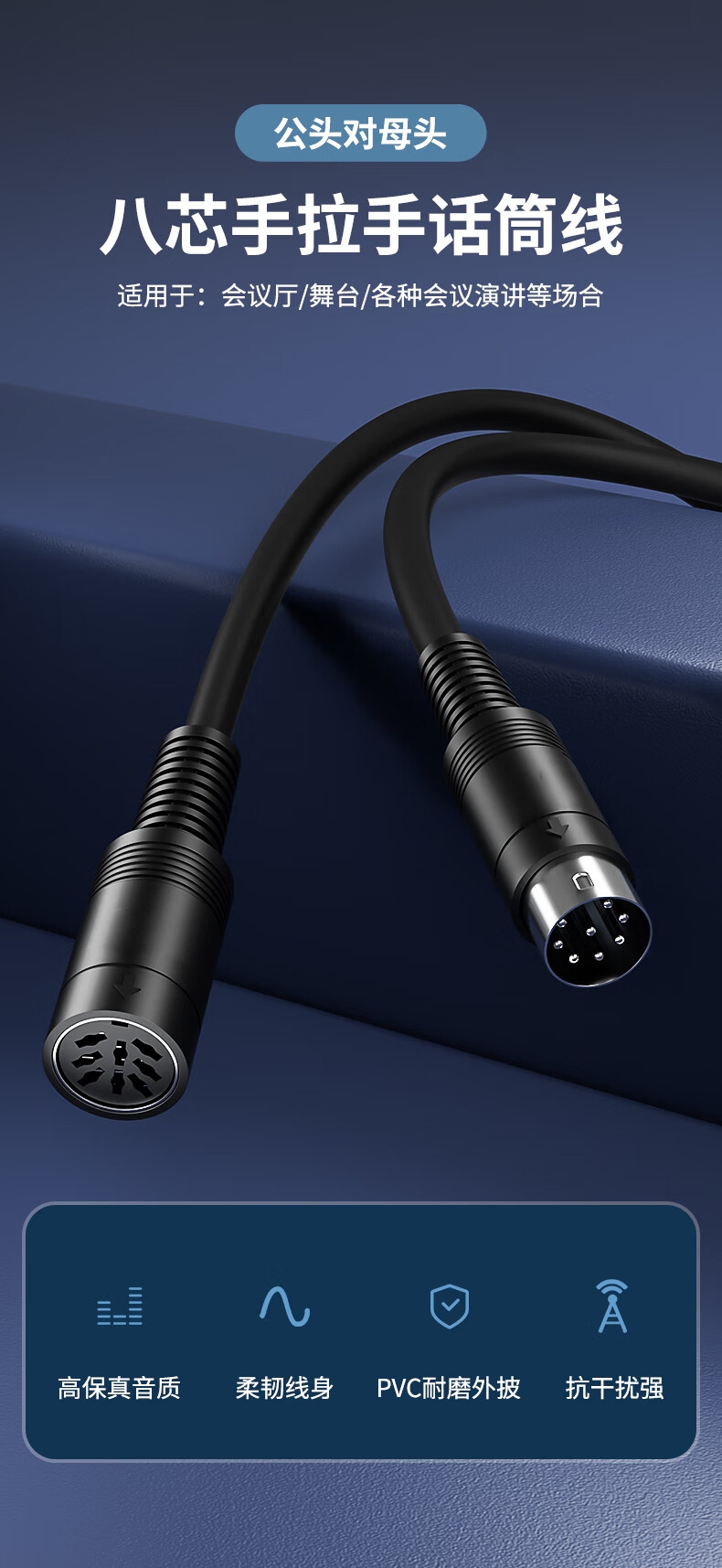 商品名称:手拉手话筒线 1.5米 8针8芯会议八针麦克风话筒延长线 公对母音视频连接线
