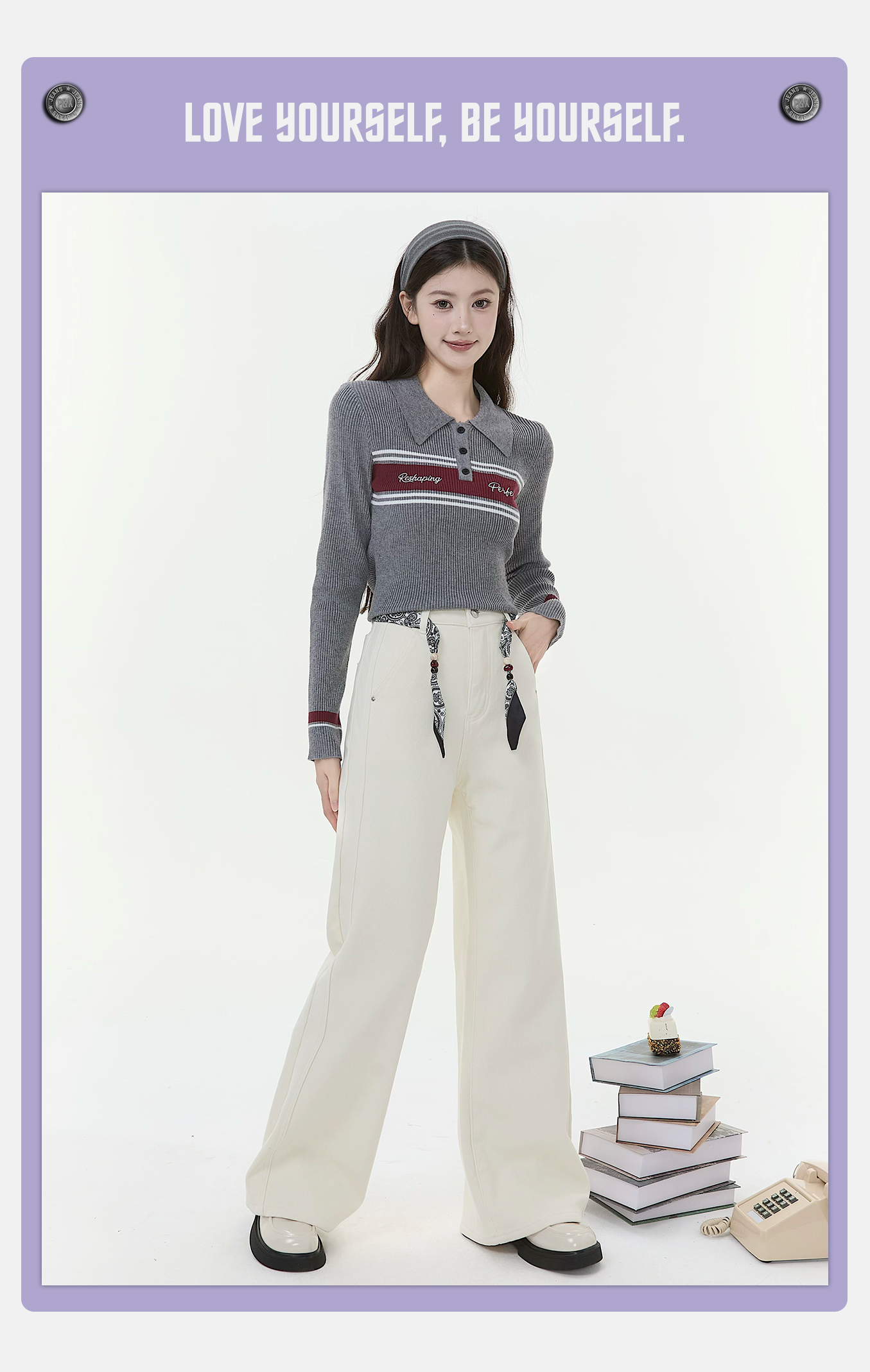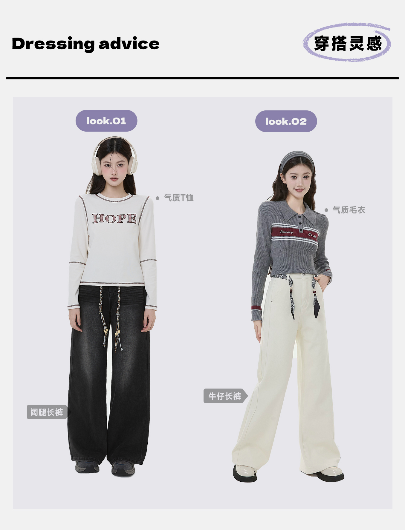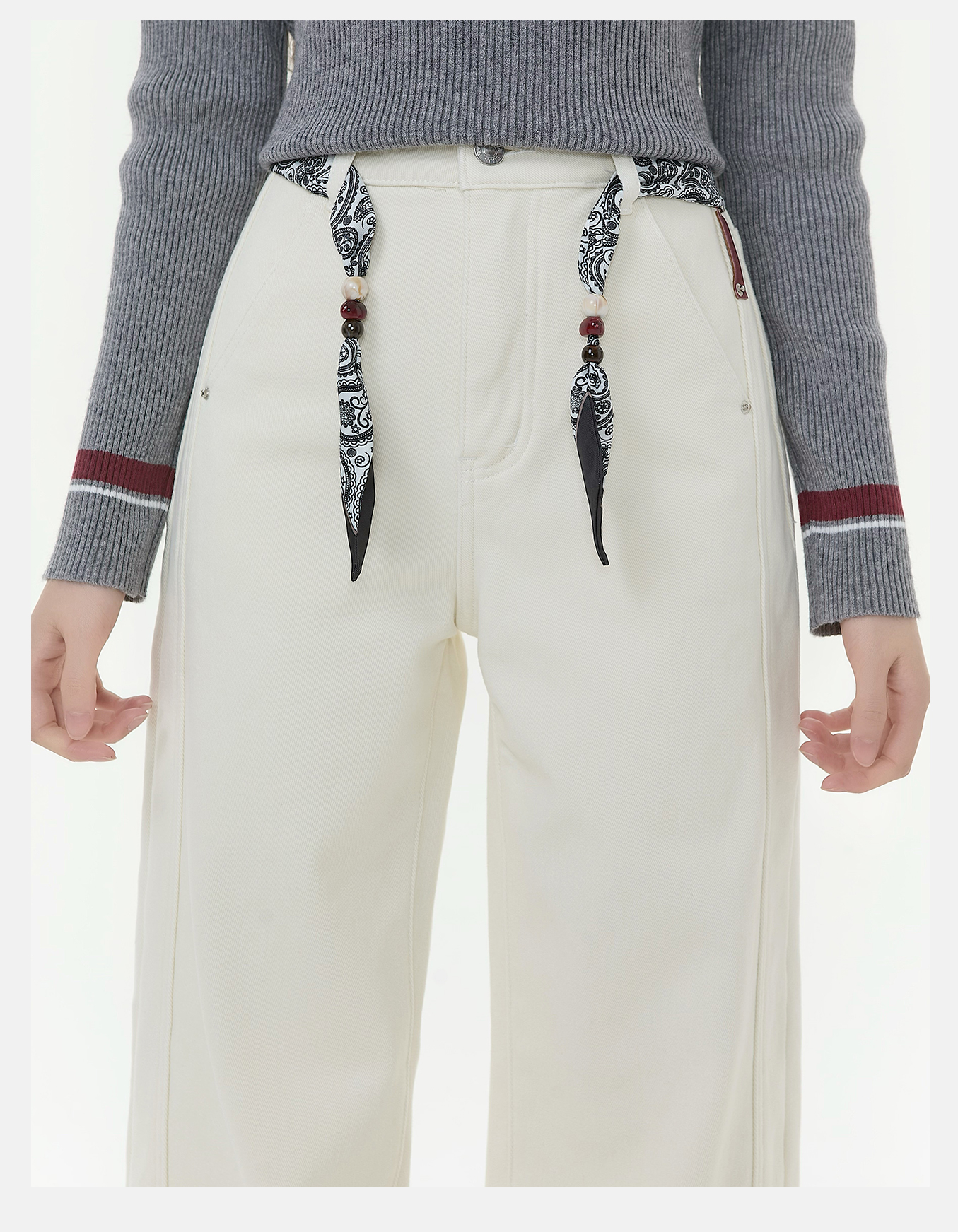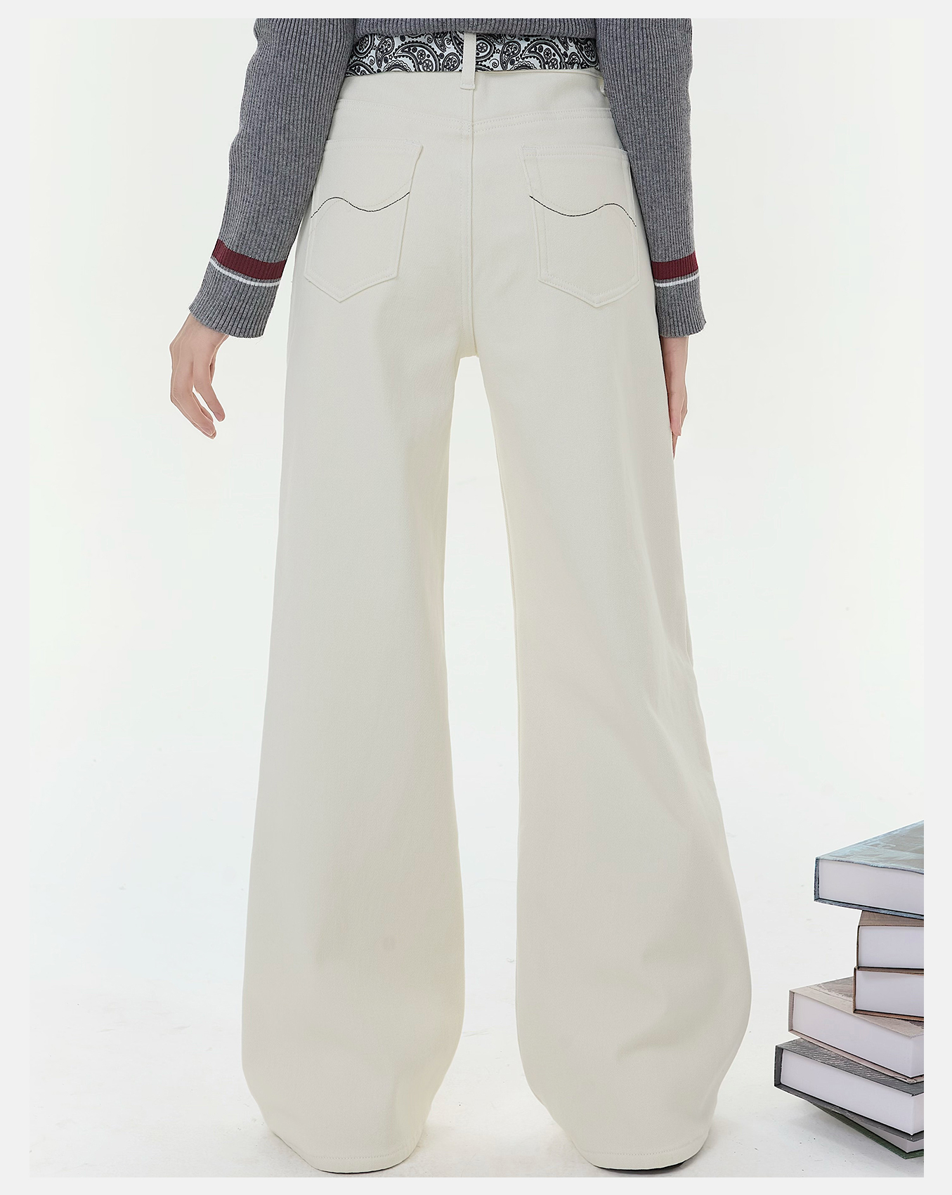 P&X设计师女装2025冬季直筒垂感拖地加绒牛仔长裤825410175 杏色