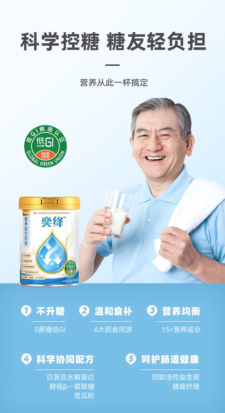 四季南山奕绛中老年三高奶粉 低GI认证 无蔗糖 全脂高钙 糖友佳选