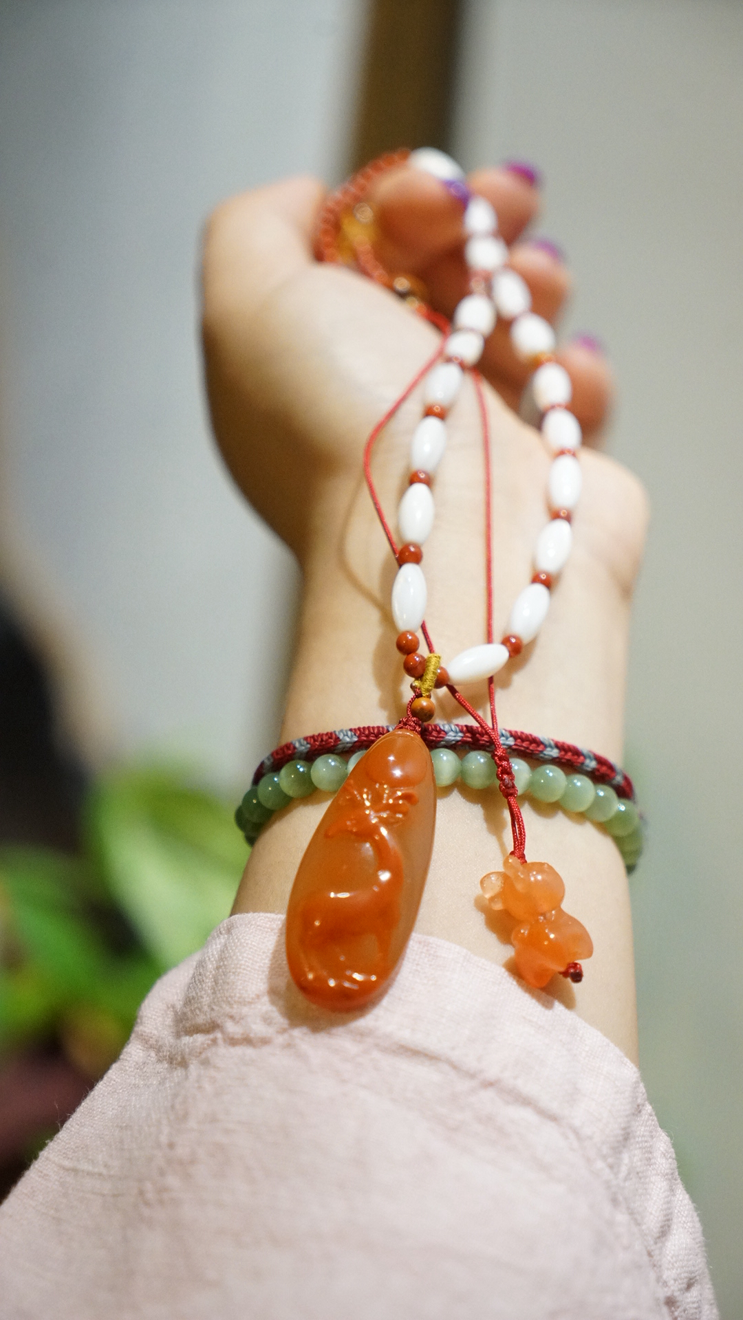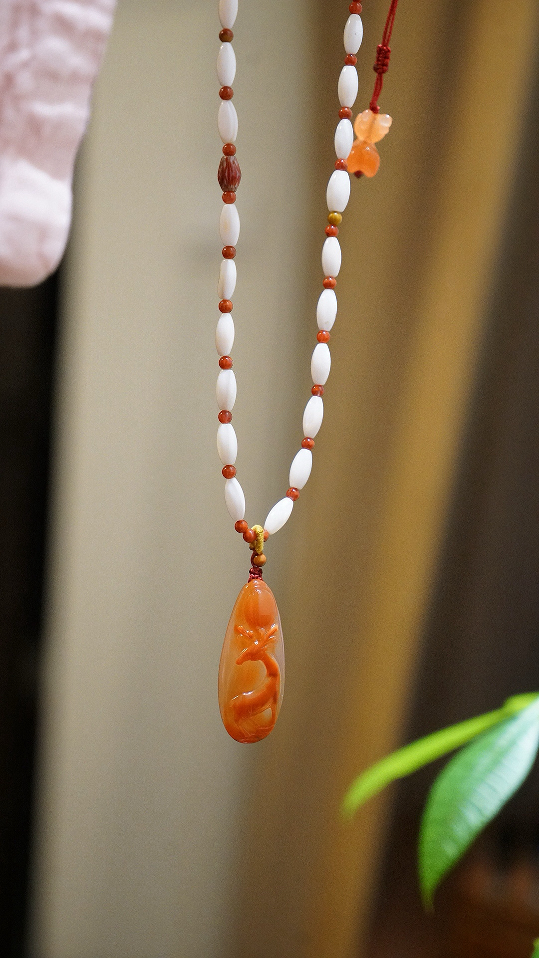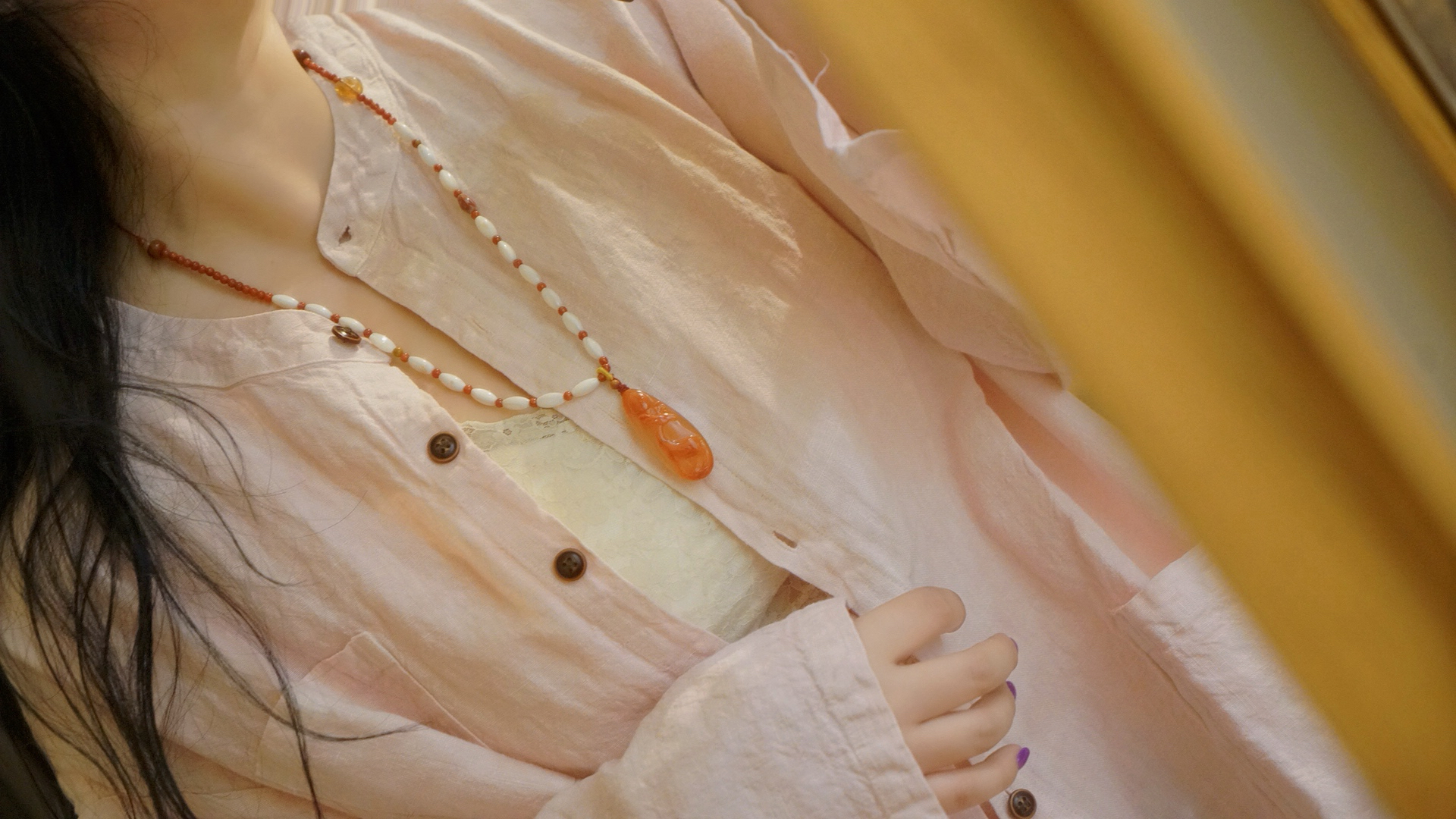 链子采用了贝壳和南红的设计,增添了大自然的味道,更有大自然灵动的野趣之感,森林,海洋,火焰之色,就是给生命最好的礼物。