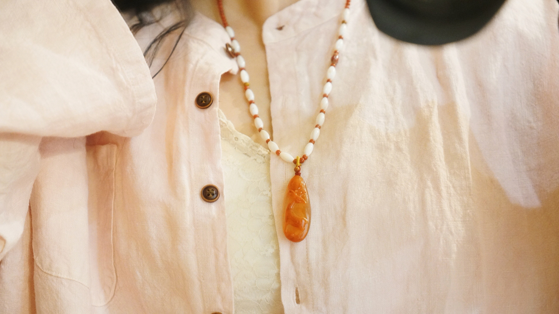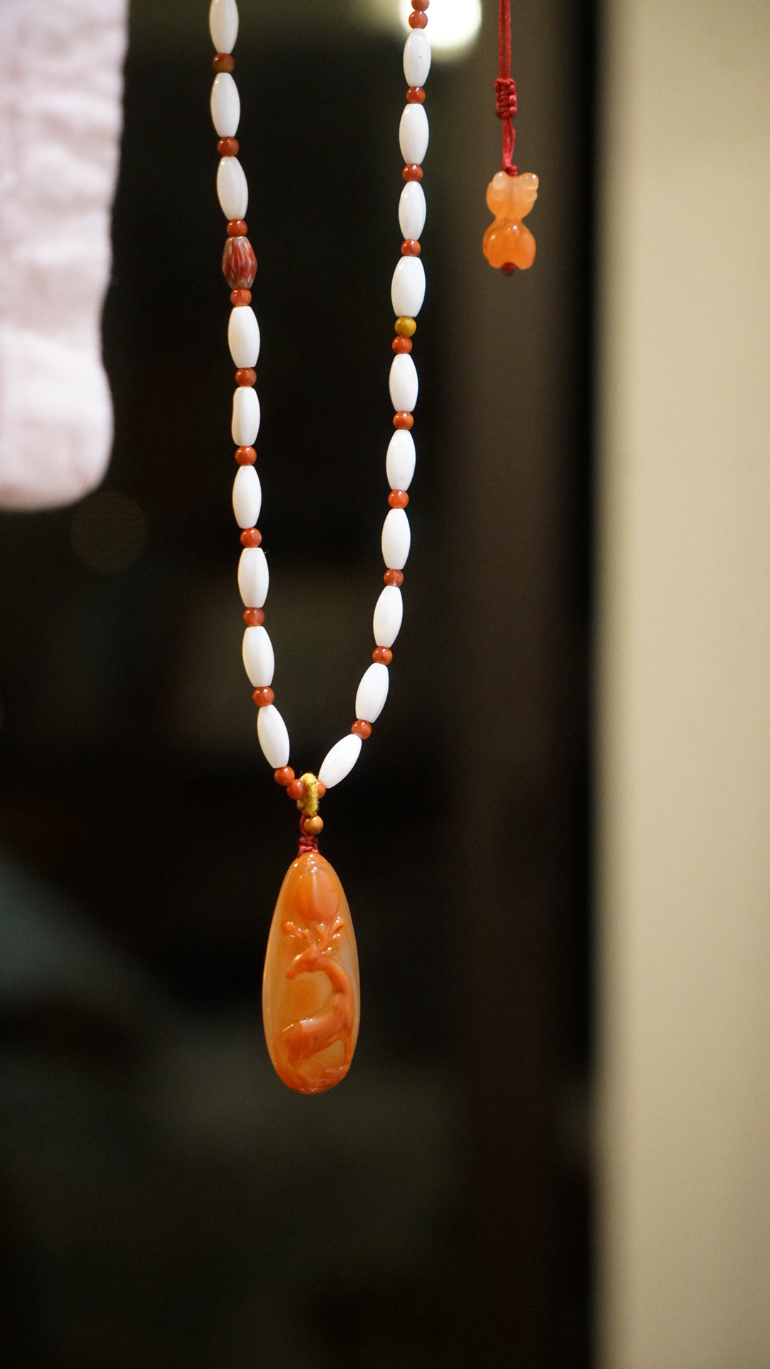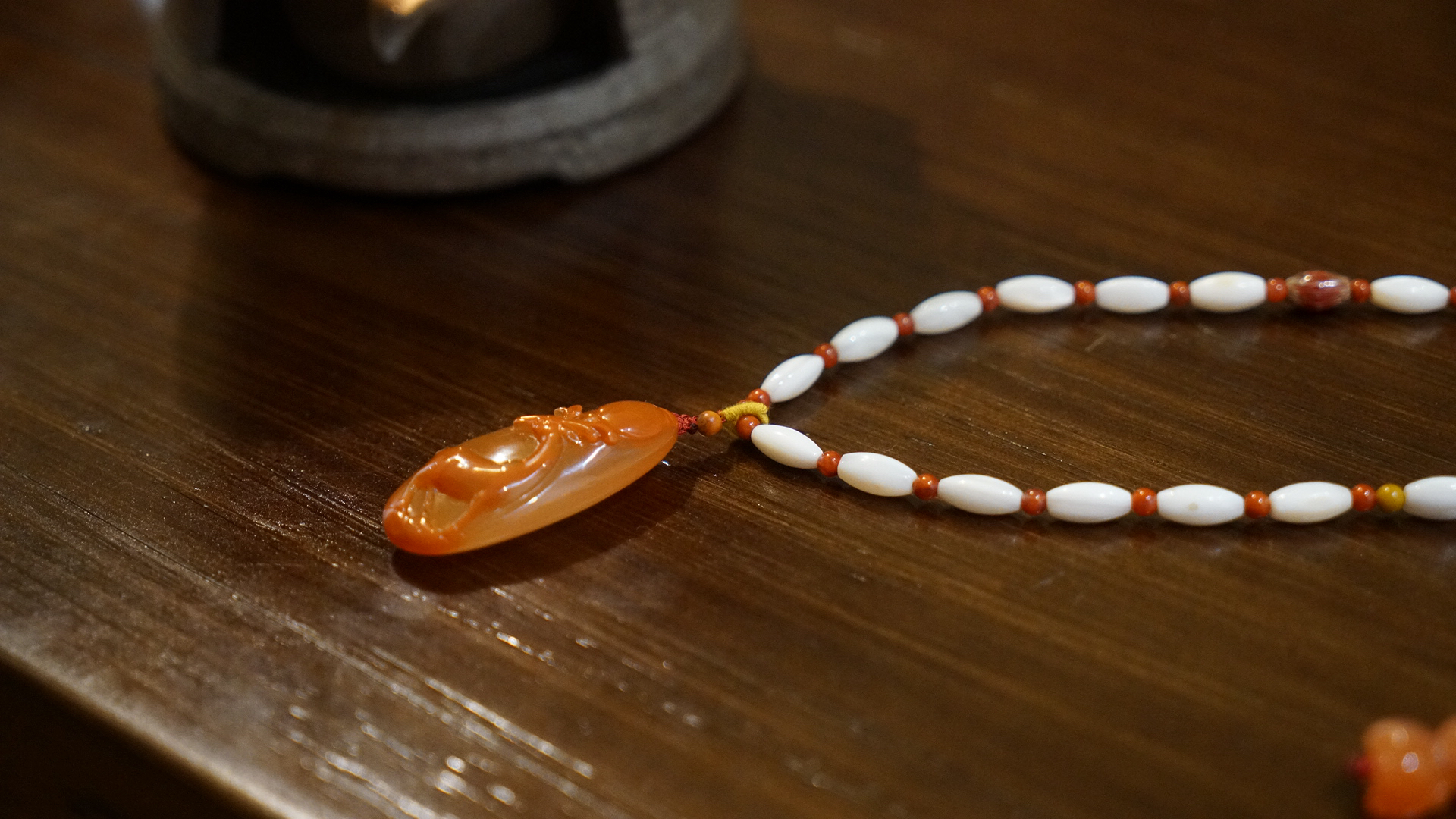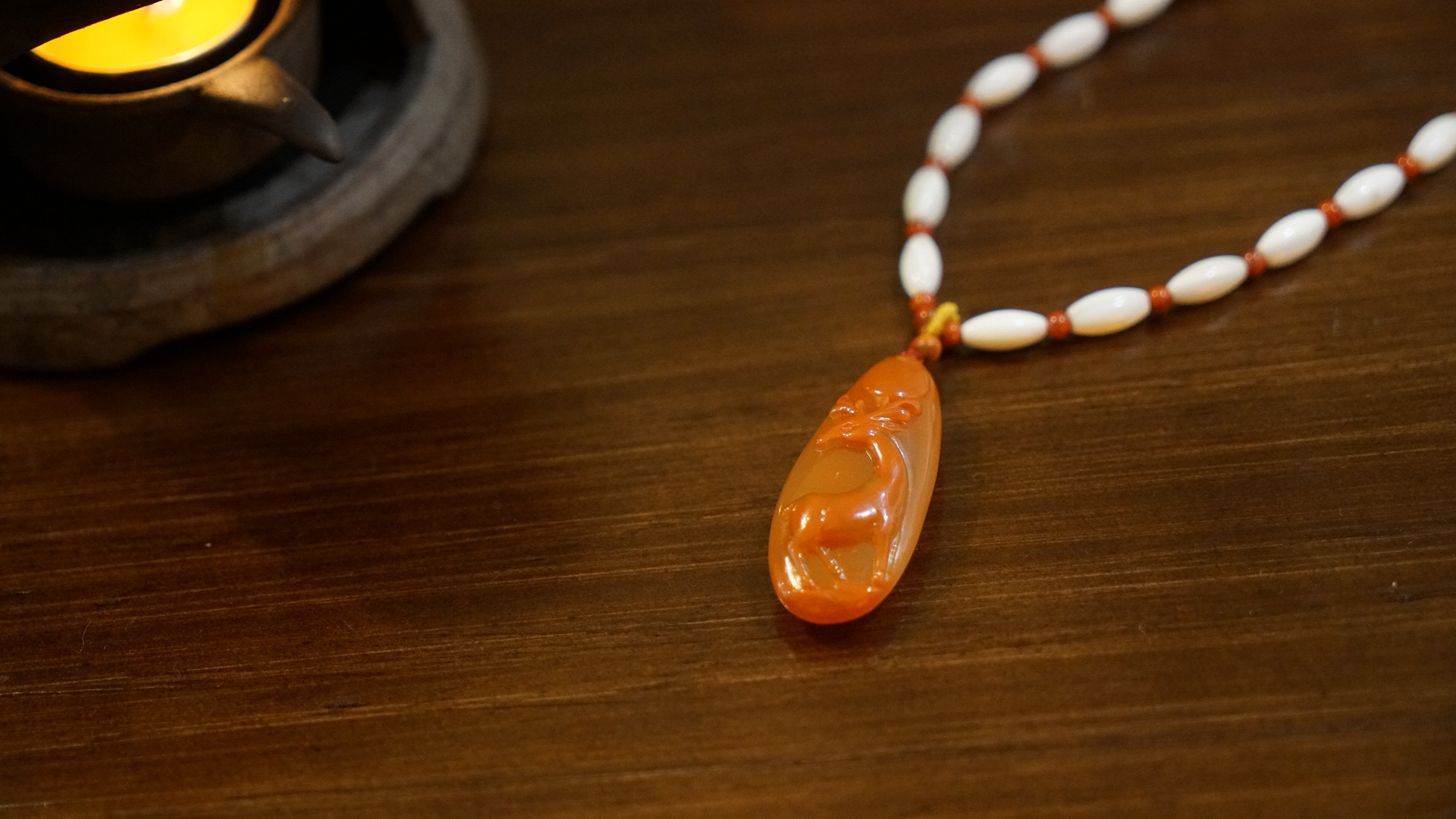 链子采用了贝壳和南红的设计,增添了大自然的味道,更有大自然灵动的野趣之感,森林,海洋,火焰之色,就是给生命最好的礼物。
