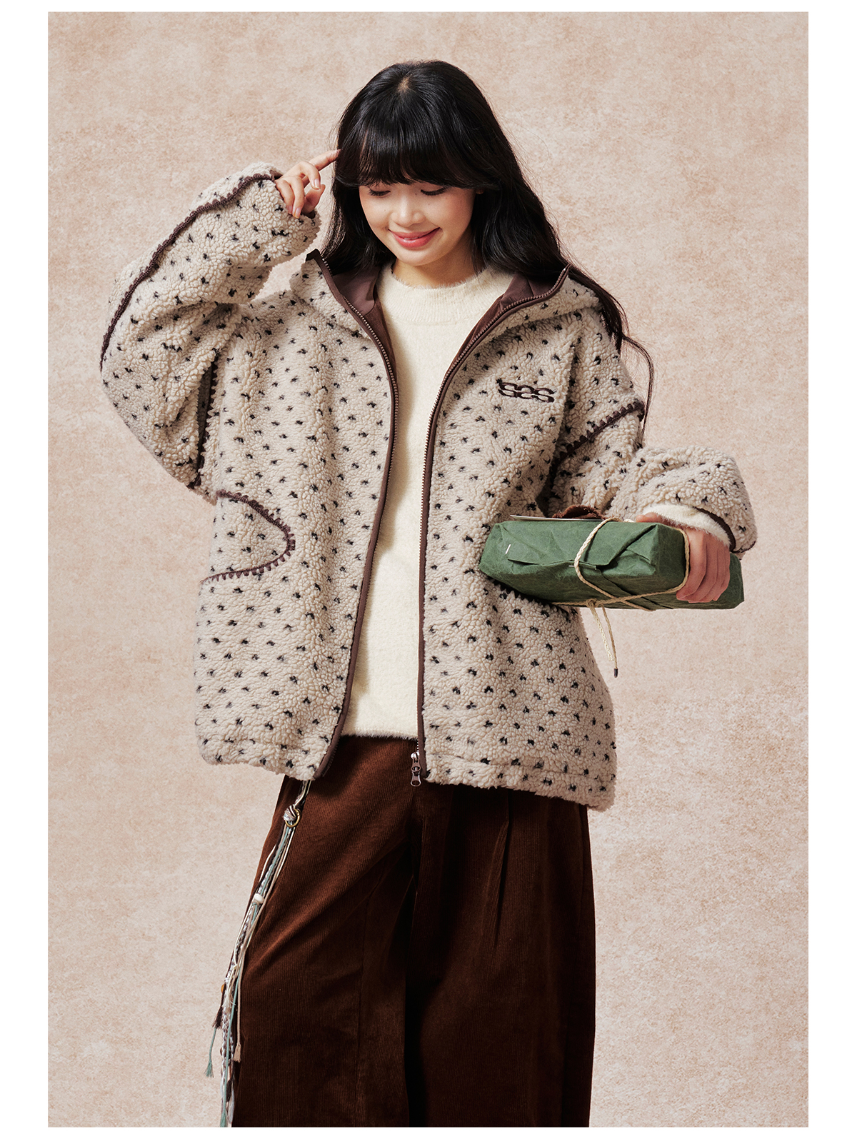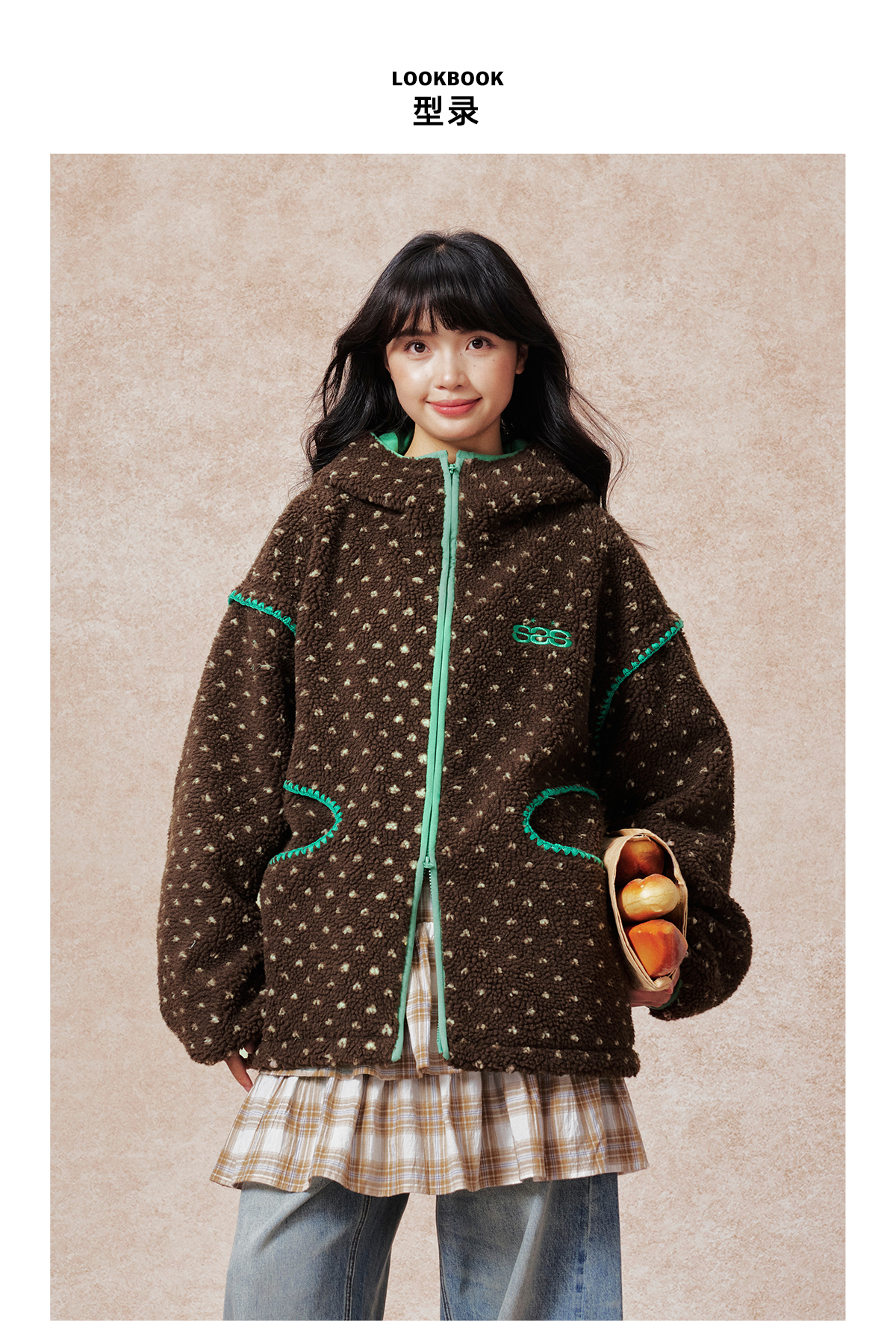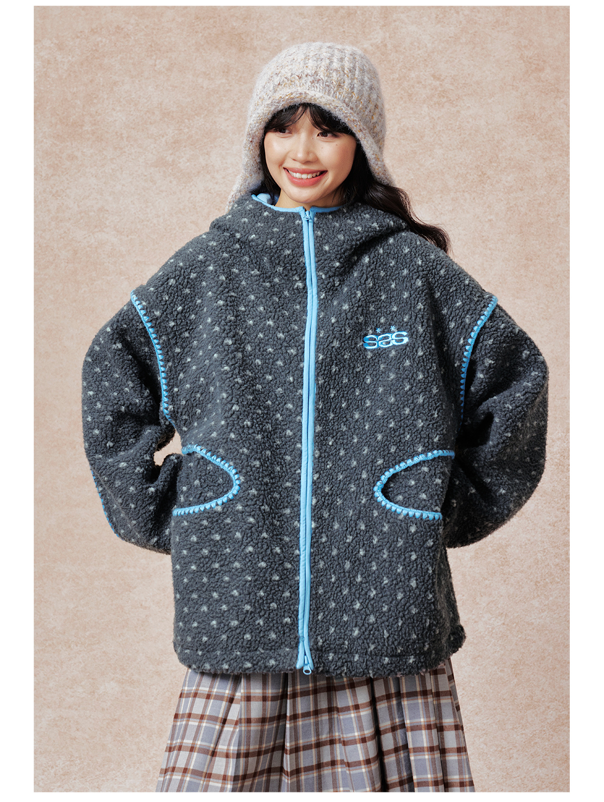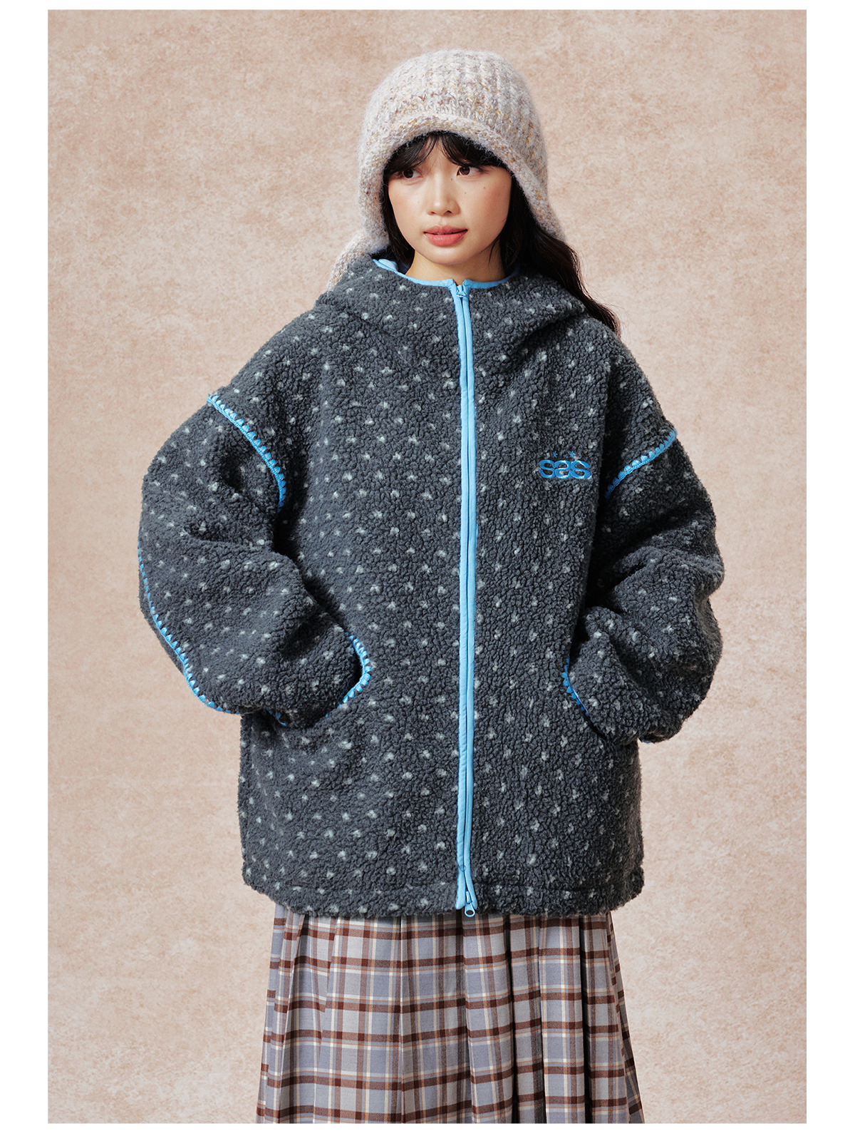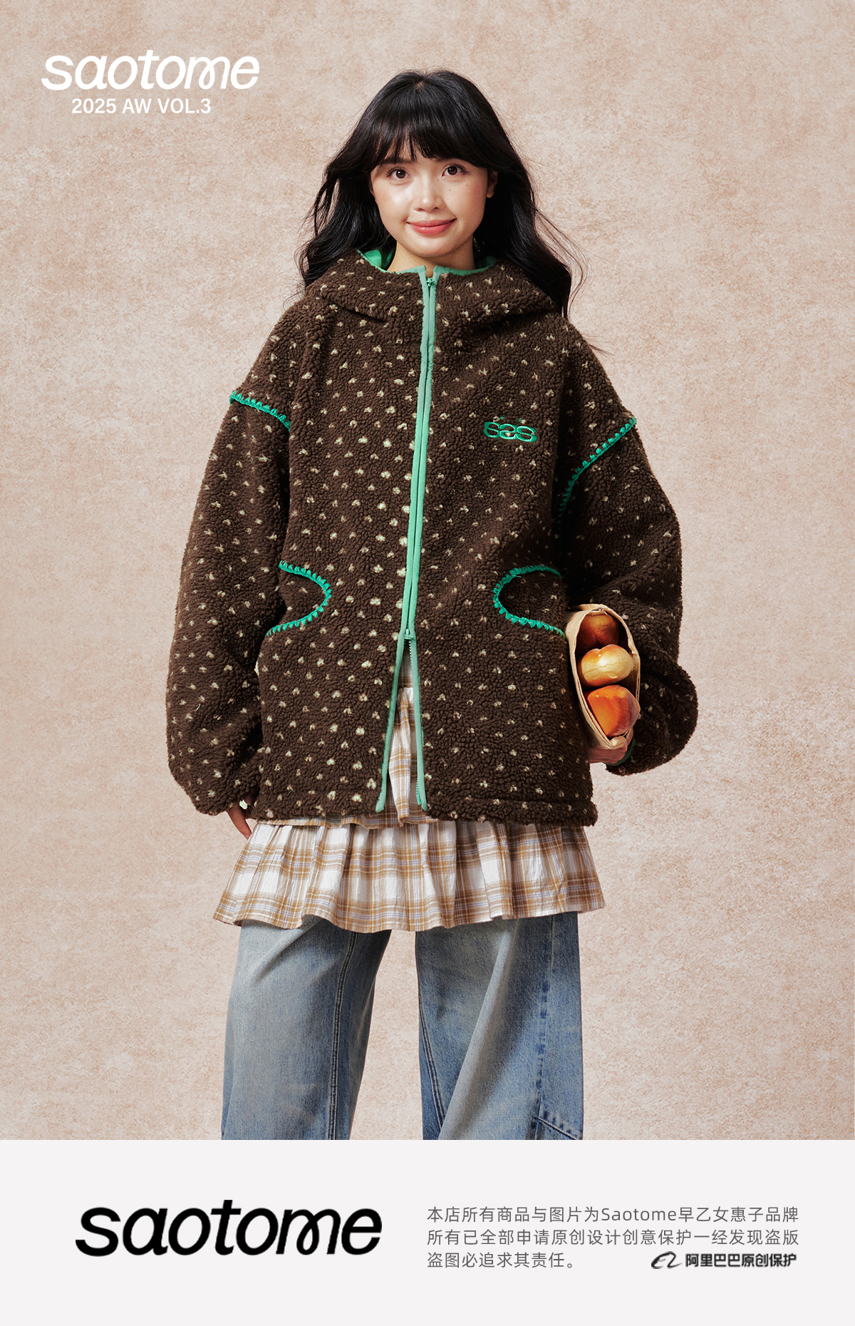 早乙女惠子saotome/STMWT13641/贝壳秀波点连帽羊羔毛外套