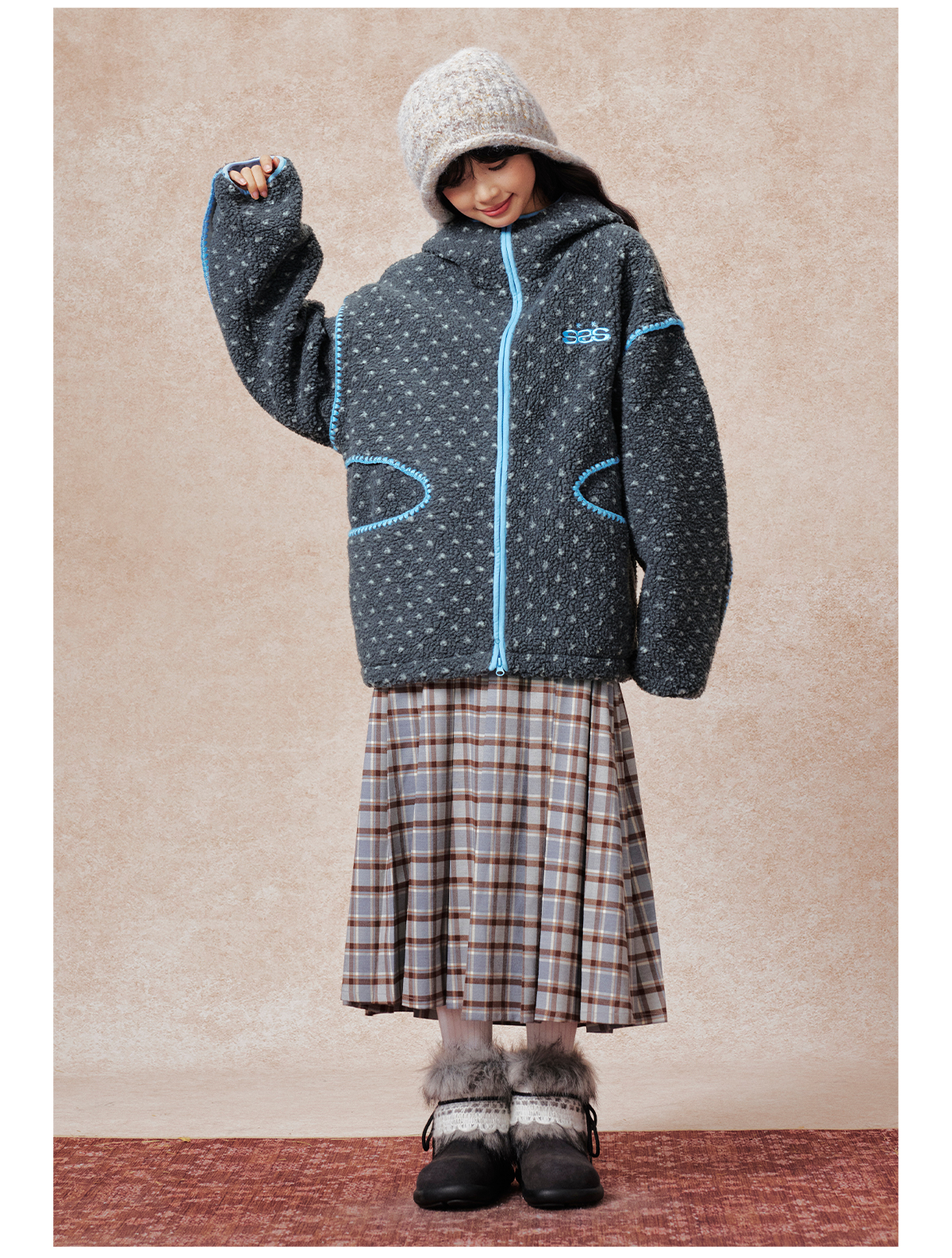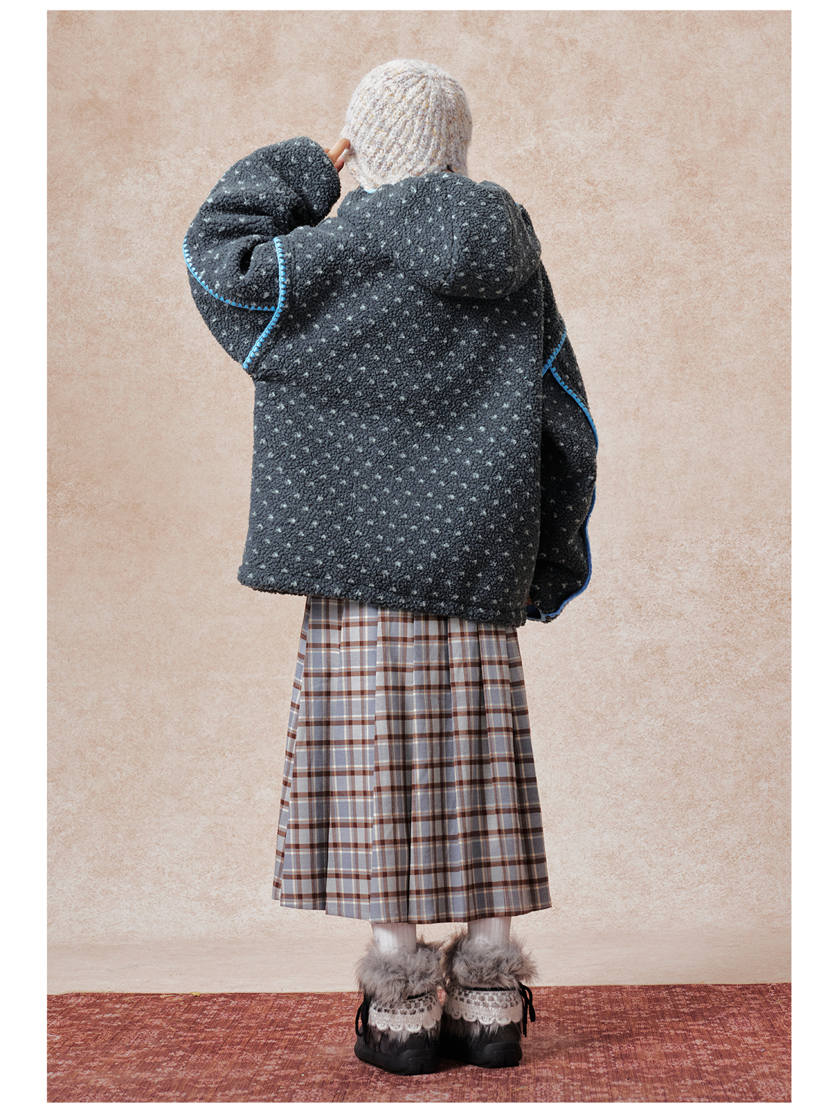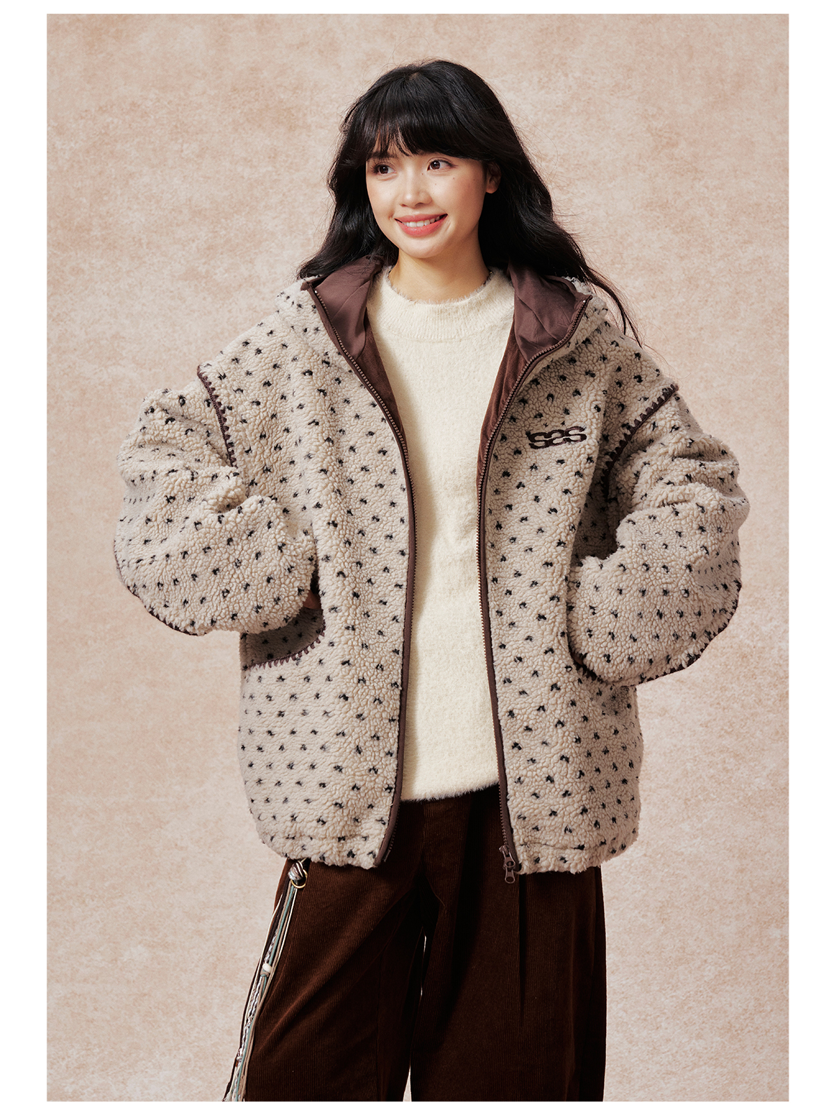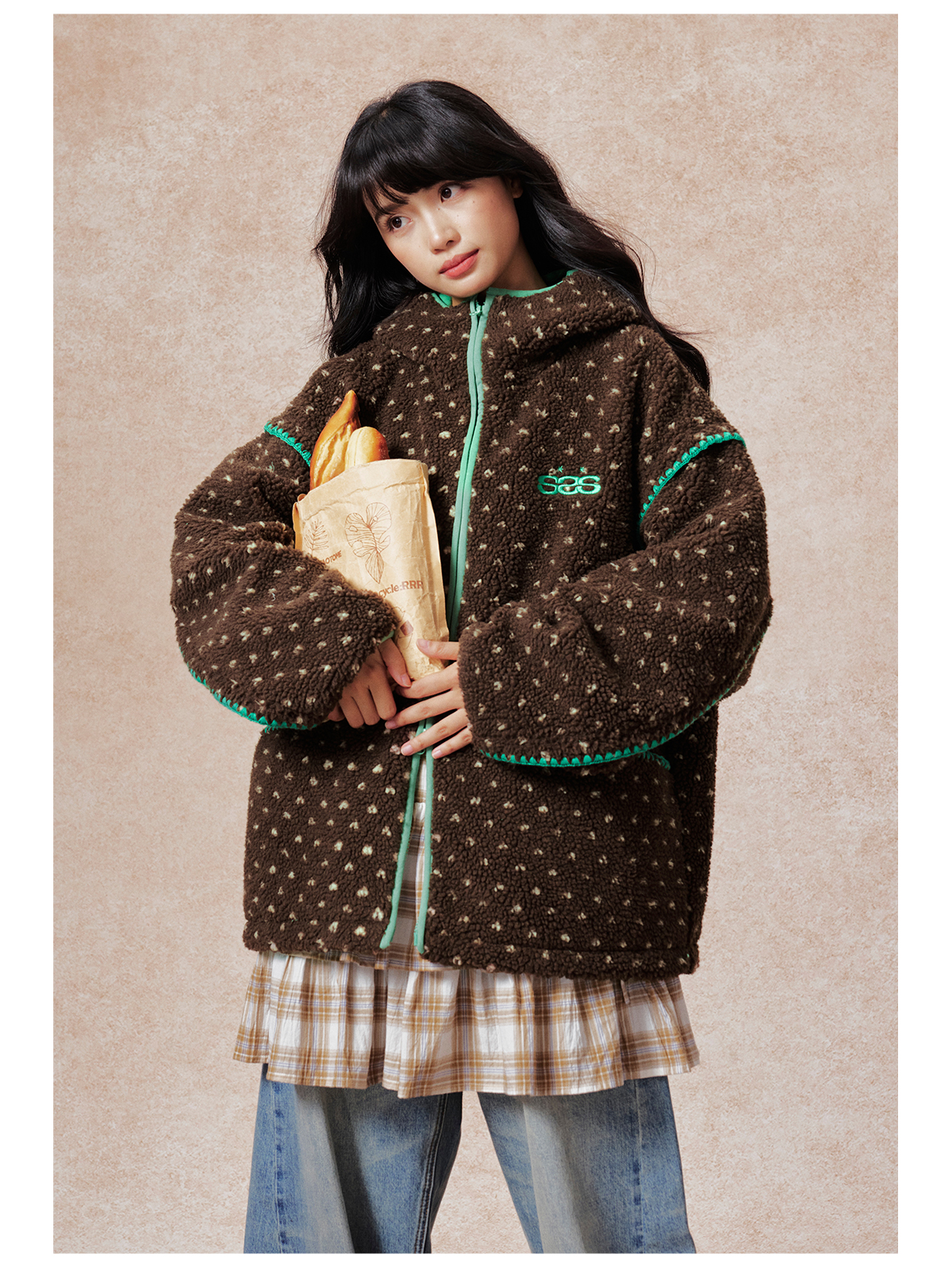 早乙女惠子saotome/STMWT13641/贝壳秀波点连帽羊羔毛外套