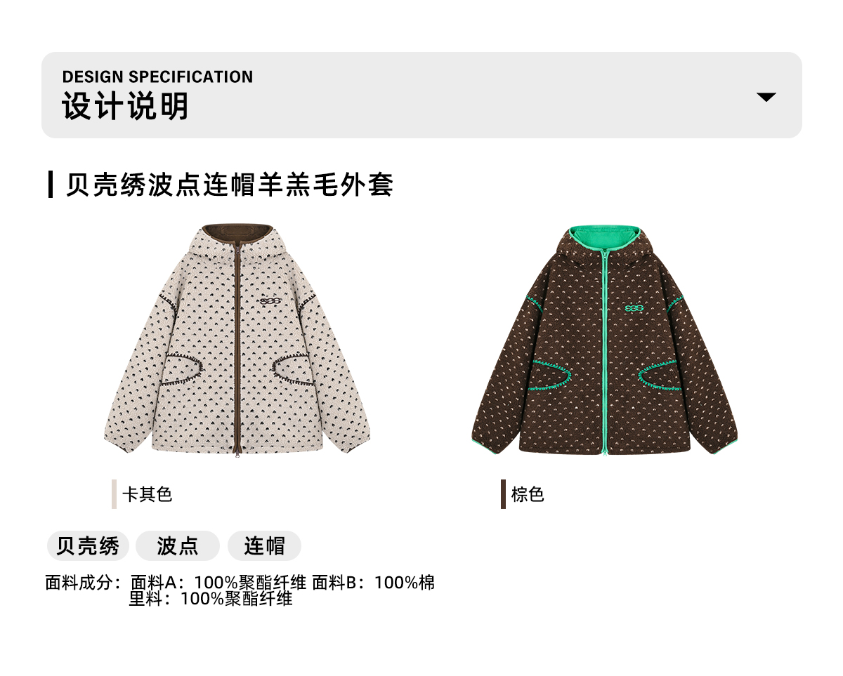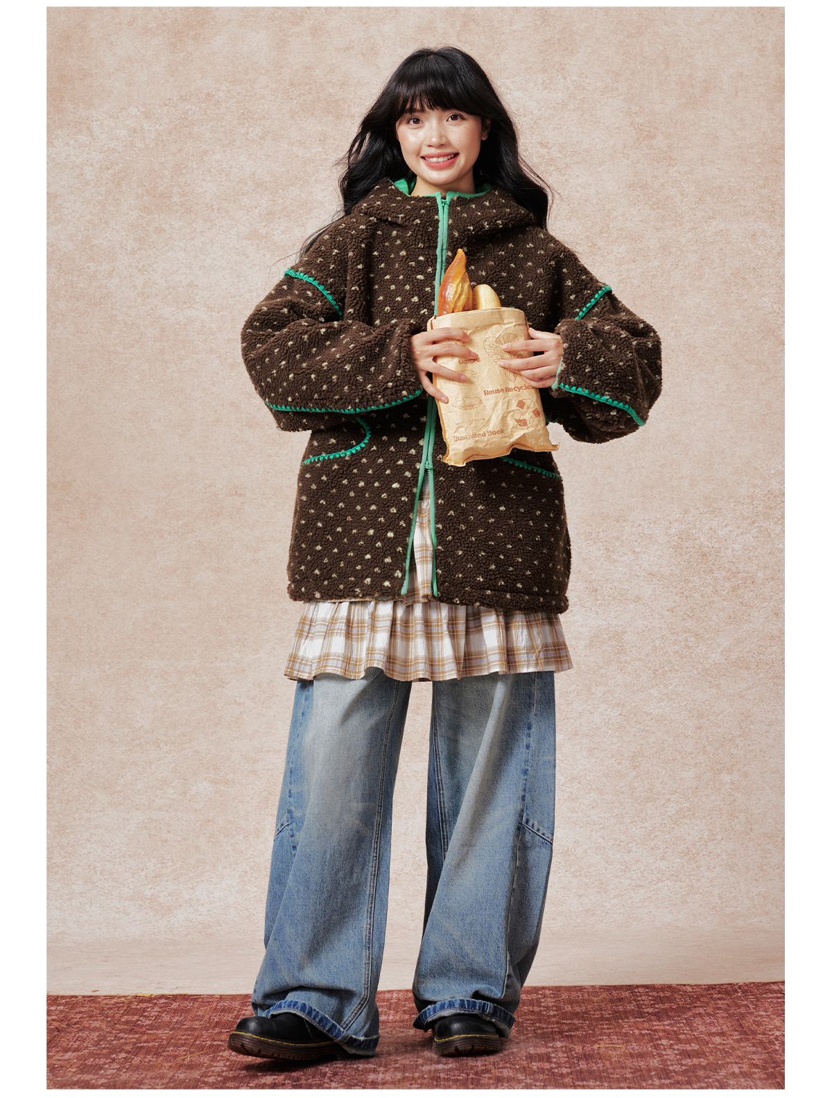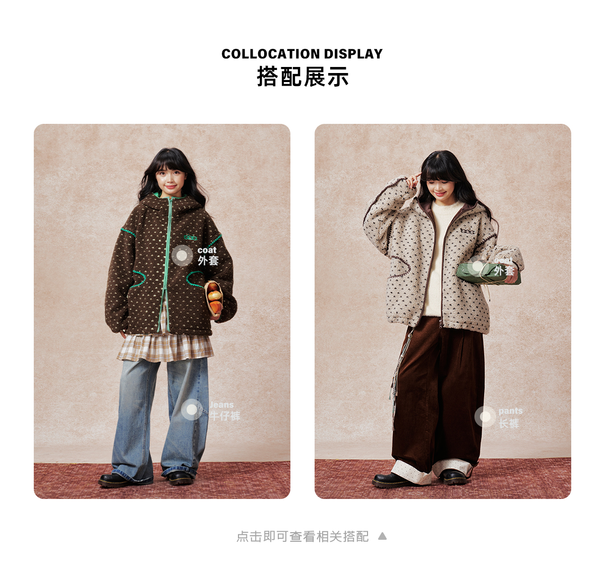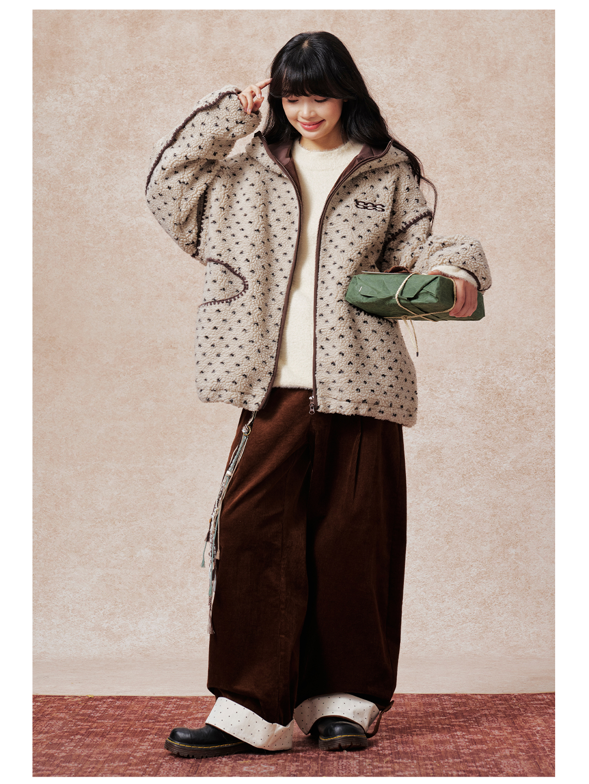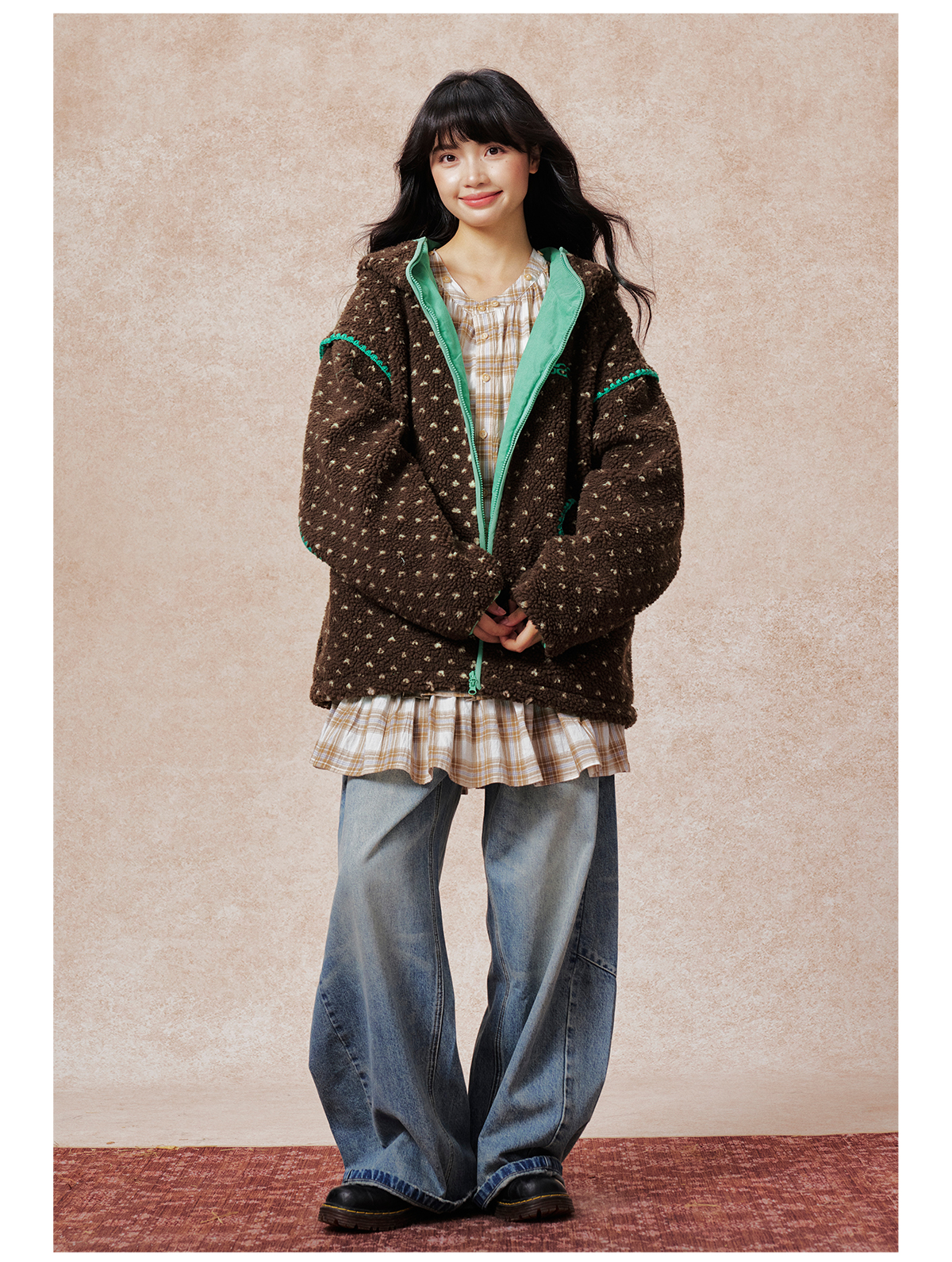 早乙女惠子saotome/STMWT13641/贝壳秀波点连帽羊羔毛外套