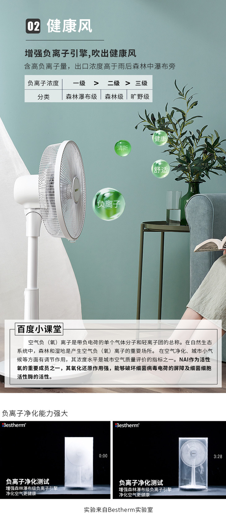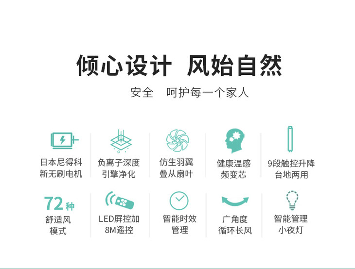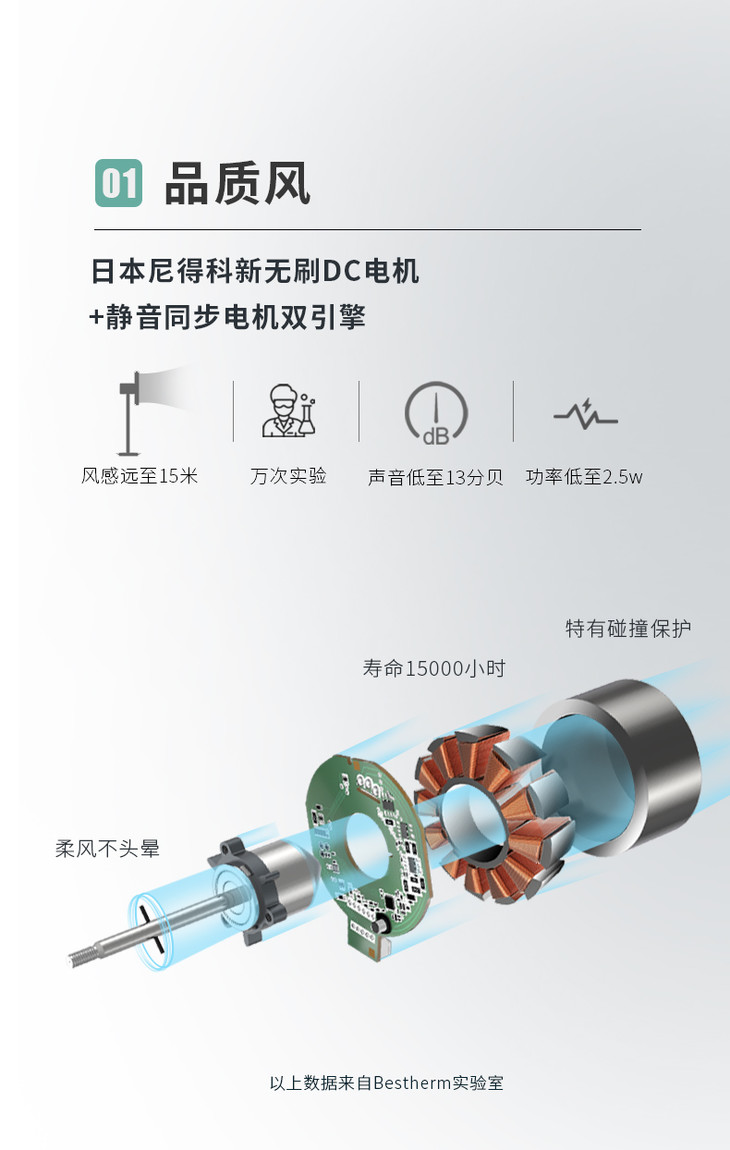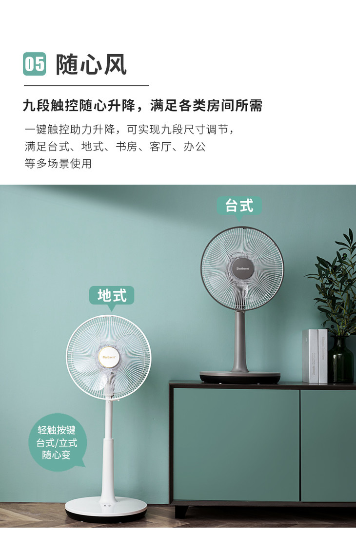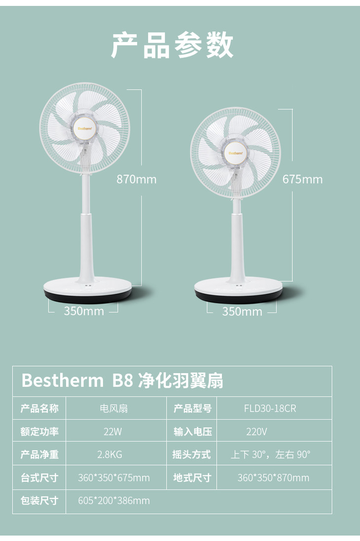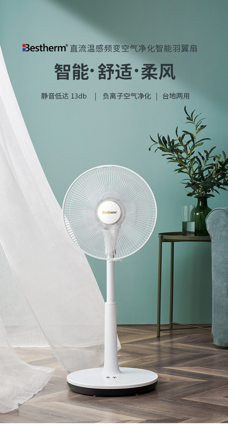 Bestherm百斯腾空气净化智能羽翼扇B8直流温感频变台式循环风落地电风扇