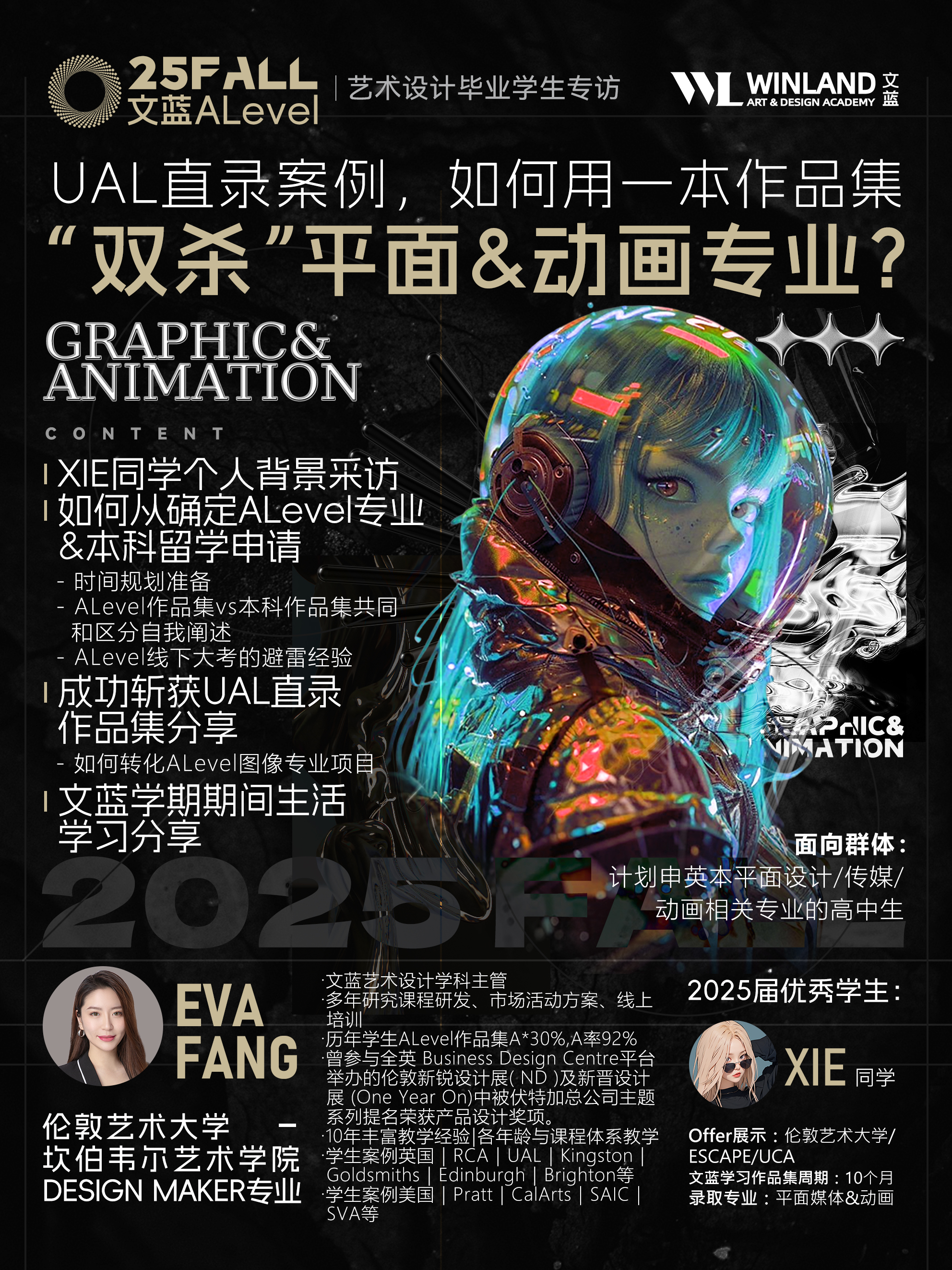 【6.26】25Fall文蓝Alevel艺术设计毕业学生专访 | UAL直录案例,如何用一本作品集 “双杀” 平面&动画专业?