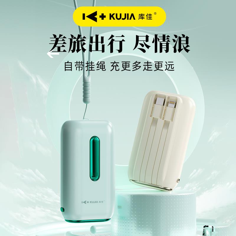 【3C认证 出行可带上飞机】库佳迷你拇指充电宝,1W毫安一台装,自带双线,大厂同芯片,层层防护,不伤手机!
