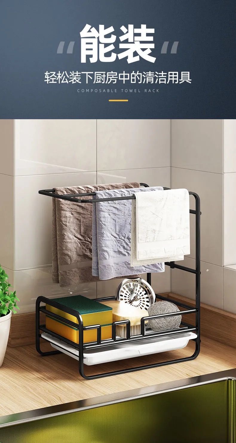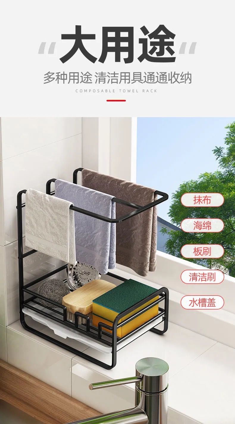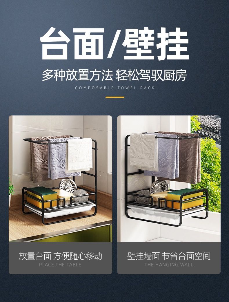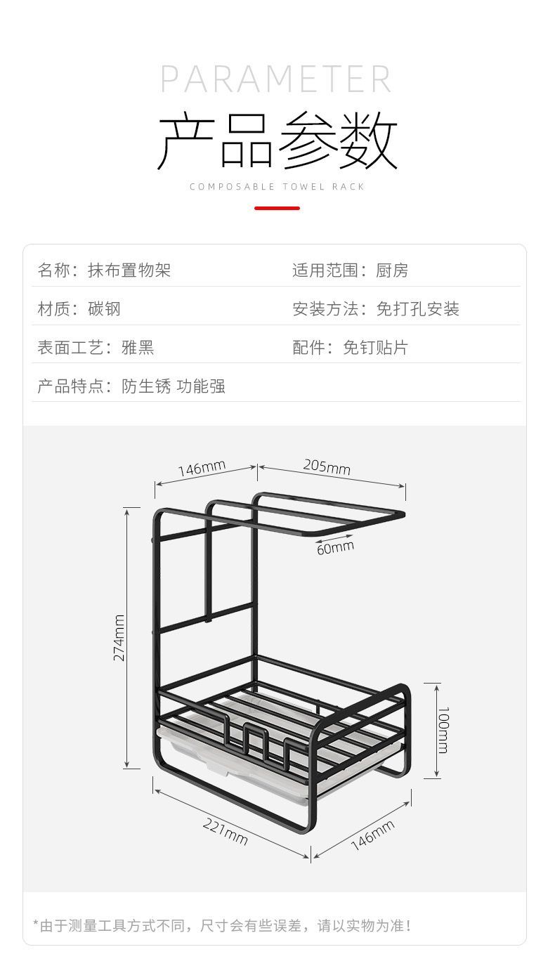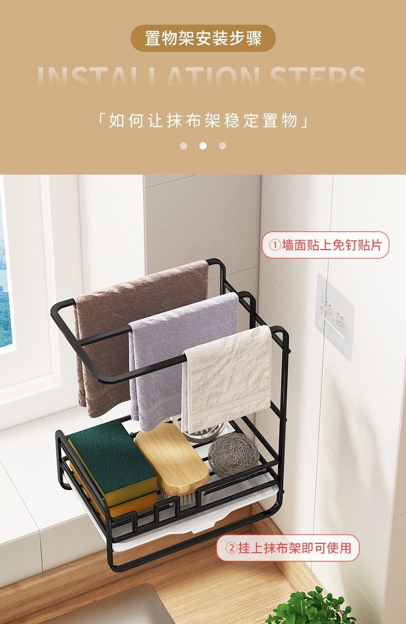 厨房抹布置物架 百洁布收纳架 台面洗碗布沥水架台面壁挂家居用品hsn19
