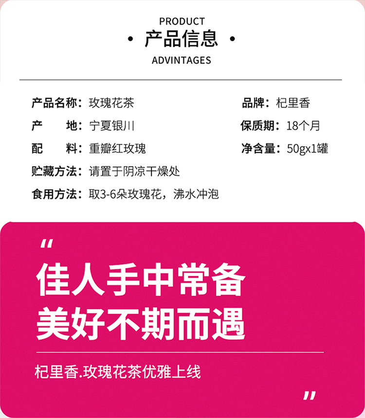 【冬季滋补】杞里香玫瑰花茶50g/罐 重瓣干玫瑰花 可搭配桑葚干、黑枸杞、柠檬片、桂圆、红枣等泡水喝