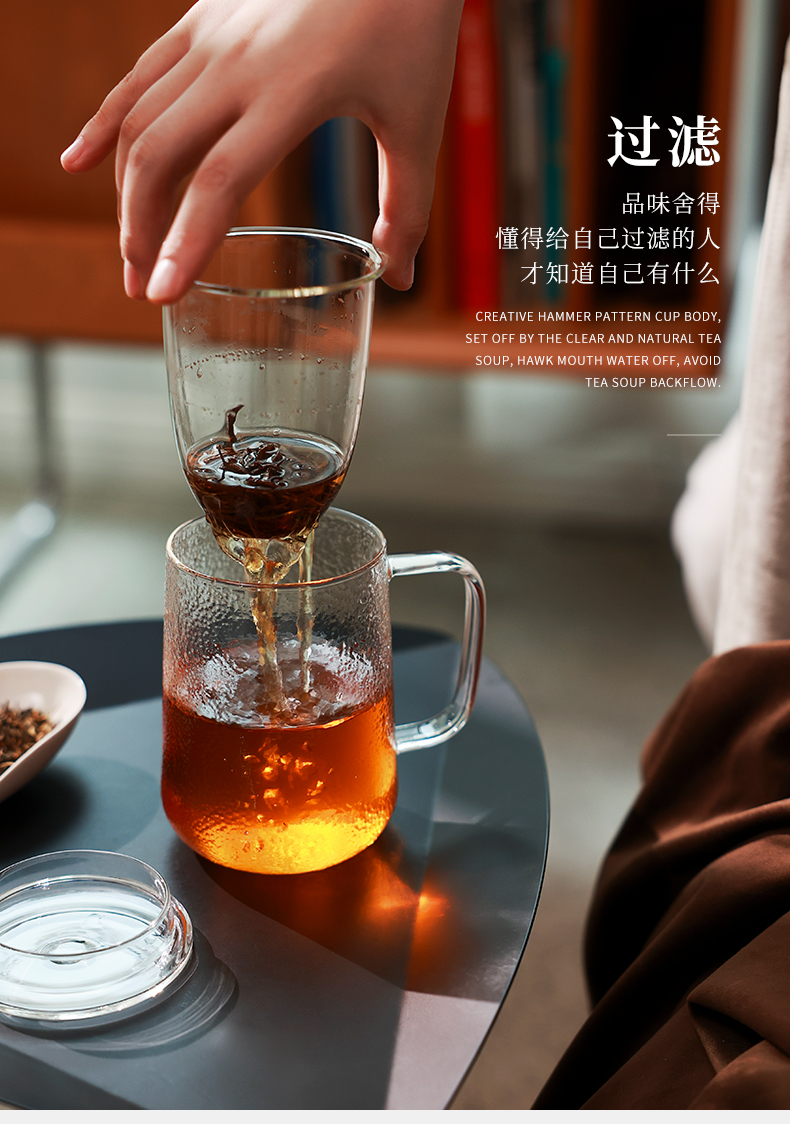 雅集玻璃杯茶屿悠觉杯500ml(锤纹款-礼盒装)