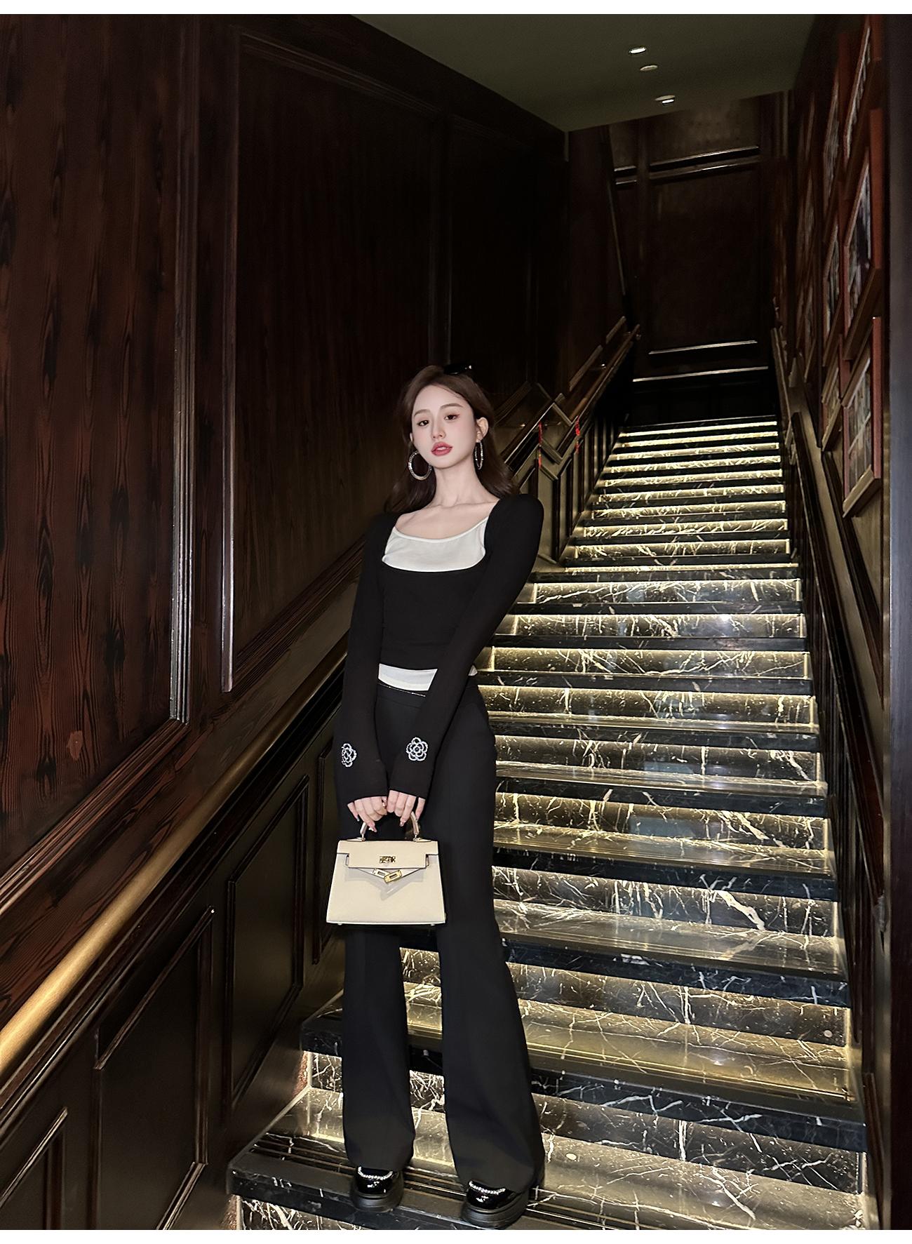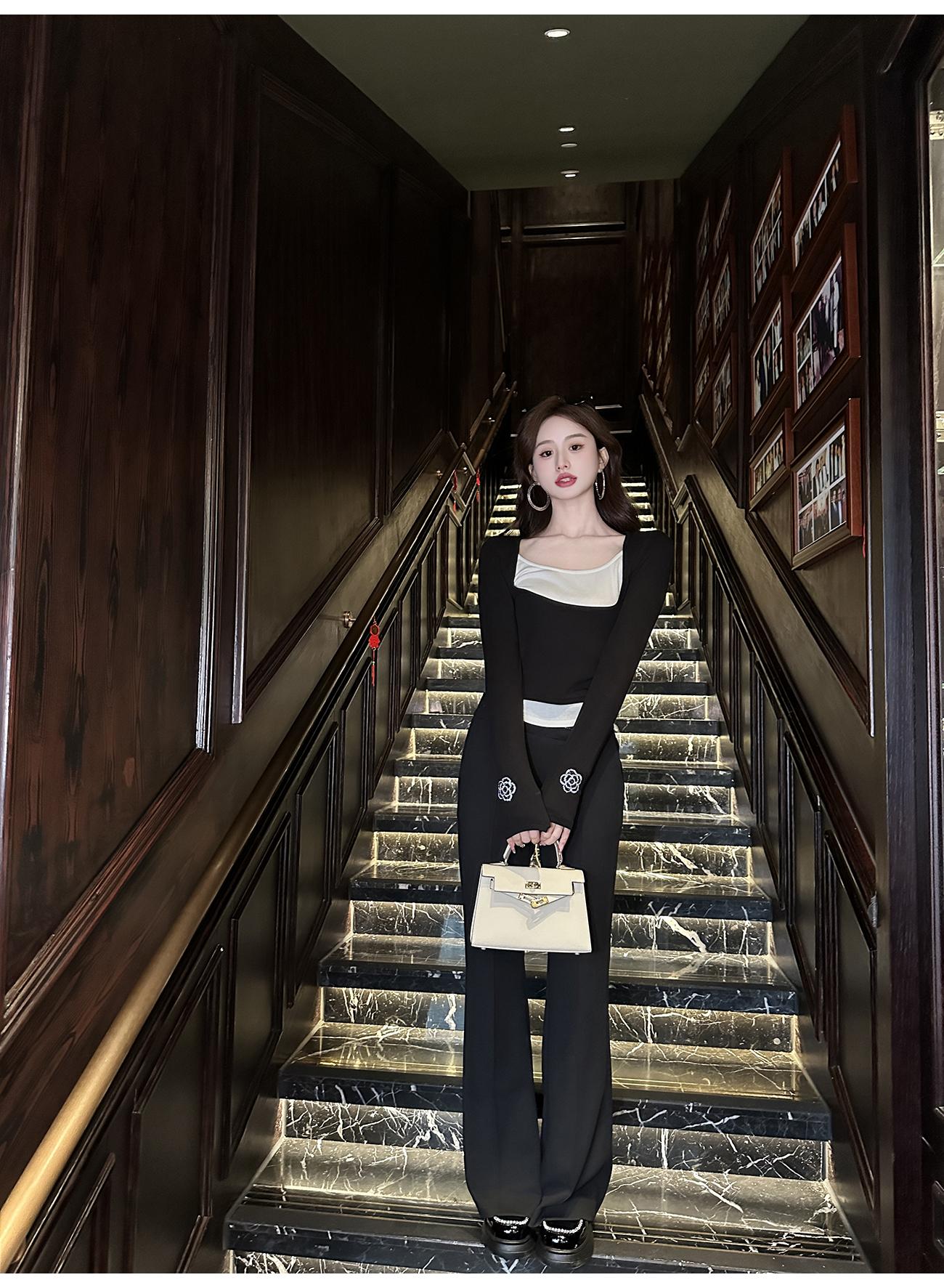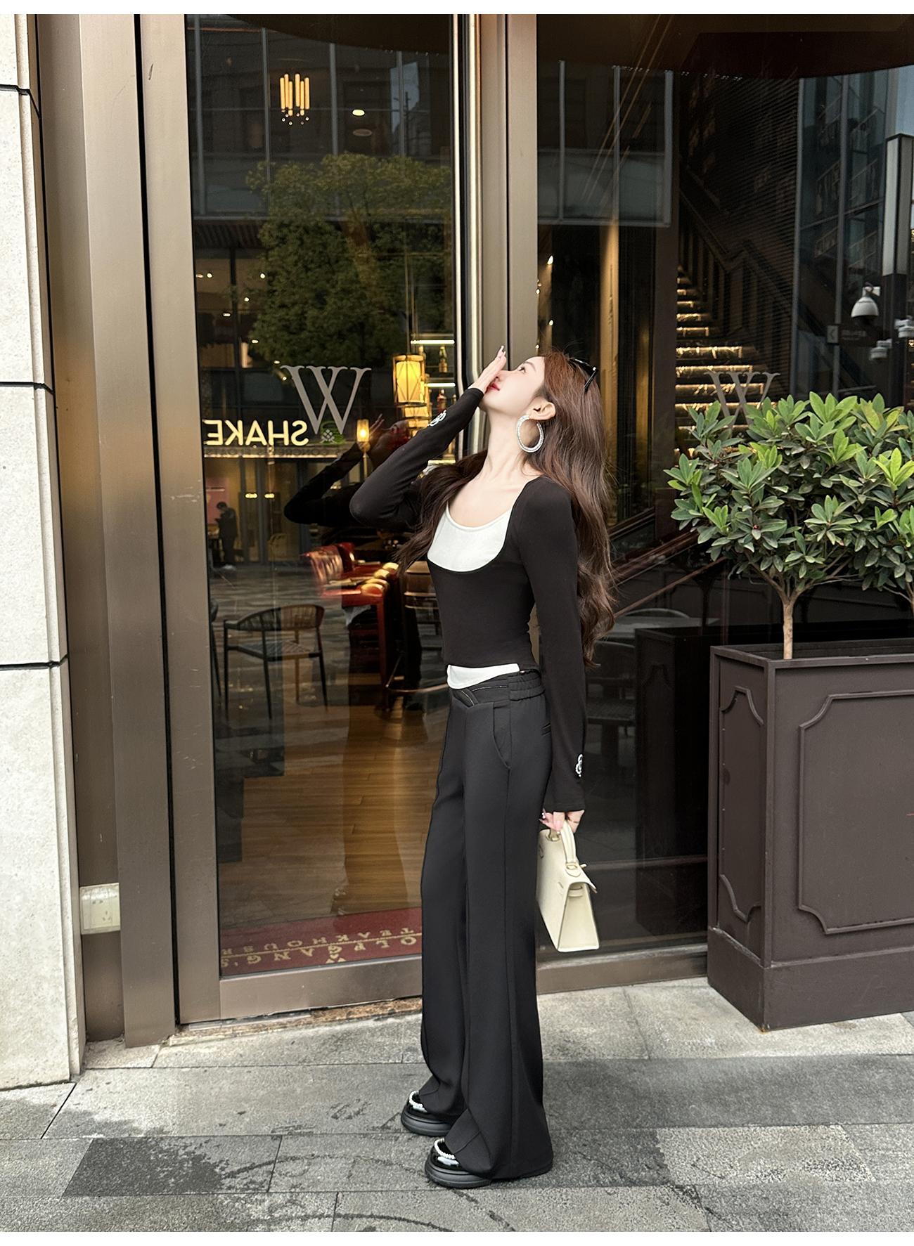 余潇潇【娇欲芭比】精致烫钻时尚百搭撞色拼接收腰假两件上衣